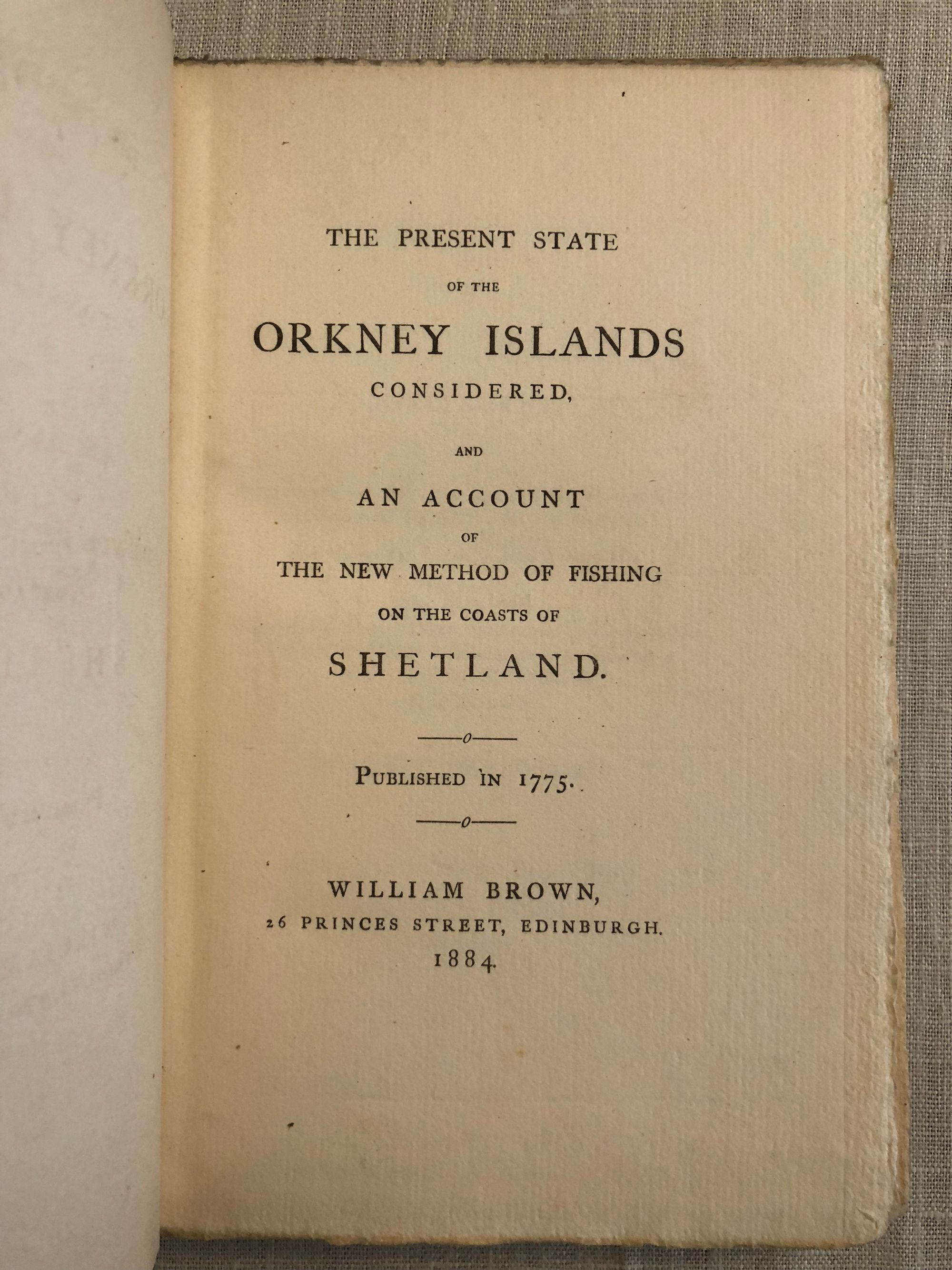 Hardcover. Octavo. pp (2) vi 160. Number 16 of a limited edition of 162. Scarce edition combining two works by James Fea, the second of which is hard to find in the original 1775 edition. Condition: Front hinge cracked. Lower half of spine label missing. Covers dust-soiled. Else near Very Good. ** The author, James Fea, was from a family with deep root in the Orkney Islands. He describes the geography of the islands, its customs and its people. In particular, he shows great empathy with the struggles of the inhabitants to earn a living when much of the commerce was seasonal.