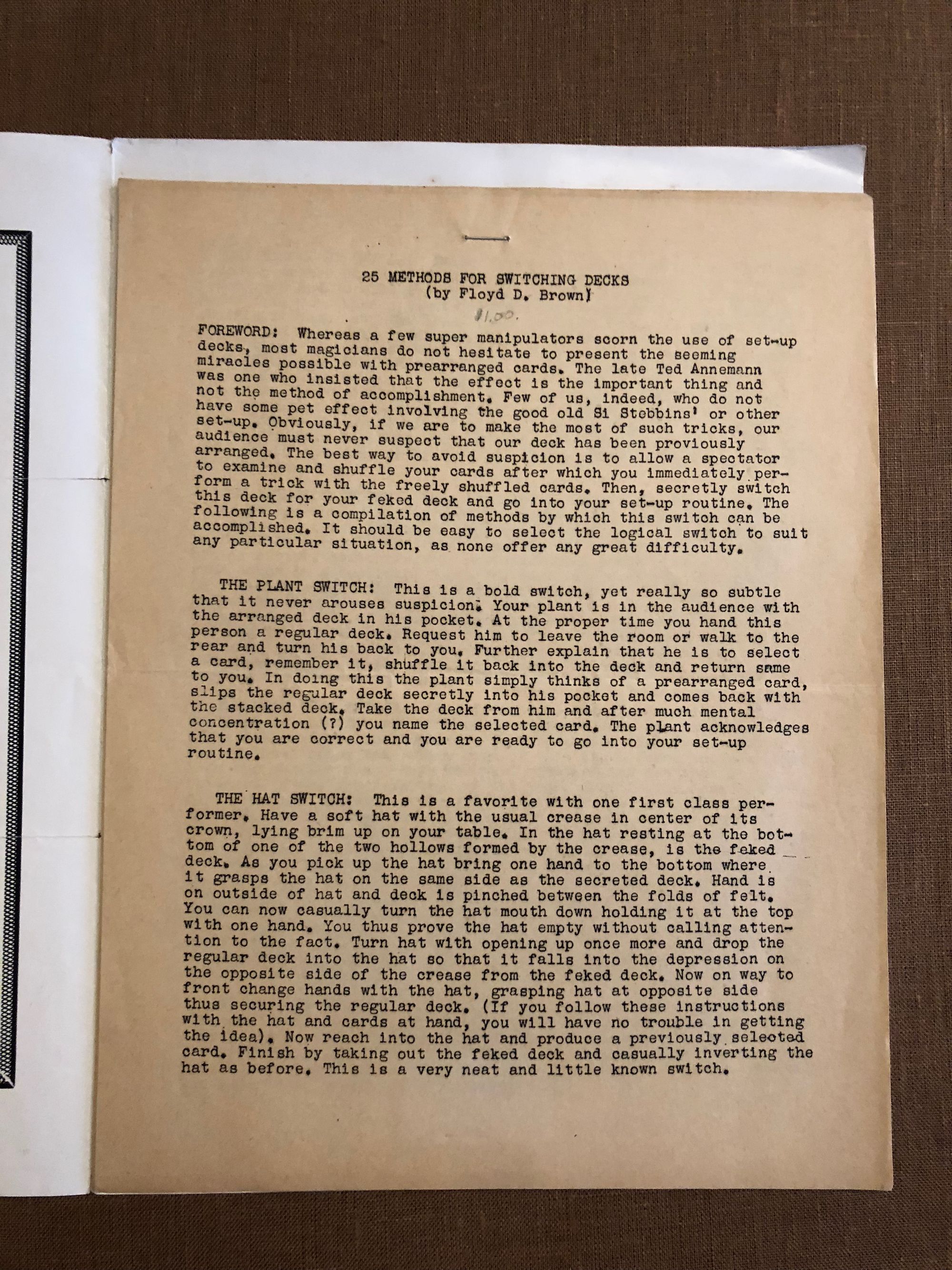 Brown, FloydThe New Conjuror's Magazine. Vol 1. No. 1. (Flyer). 25 Methods for Switching DecksPublished by unknown, unknown, 1945.