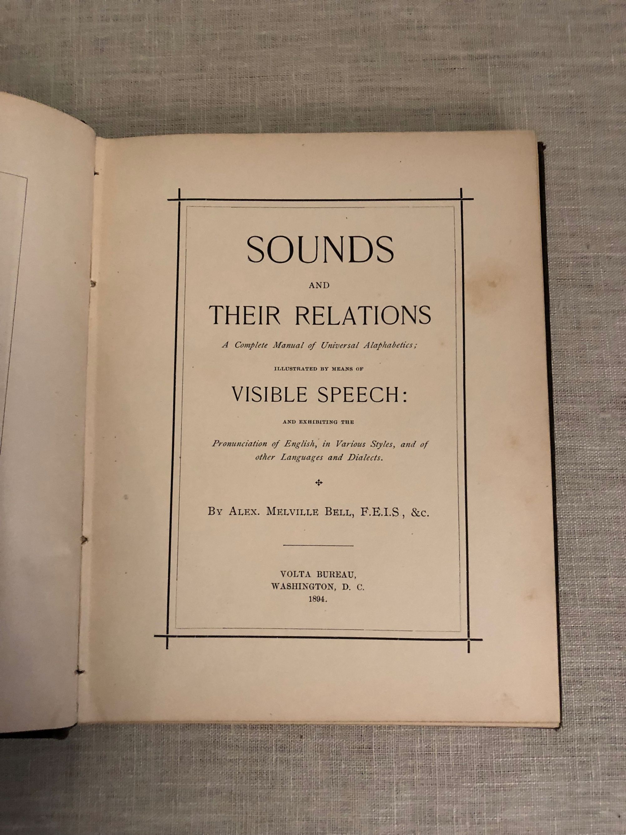 Hard cover, 8vo., 102pp. In publisher's black cloth binding. Condition: Very Good Minus. Binding cracked but firm. Some marks and chips to spine. Some marks/foxing to pages. ** Edinburgh's Alexander Melville Bell (1819 - 1905) was the creator of "Visible Speech" which was used to help the deaf learn to talk, and was the father of Alexander Graham Bell, the inventor of the telephone. OCLC 63635033.