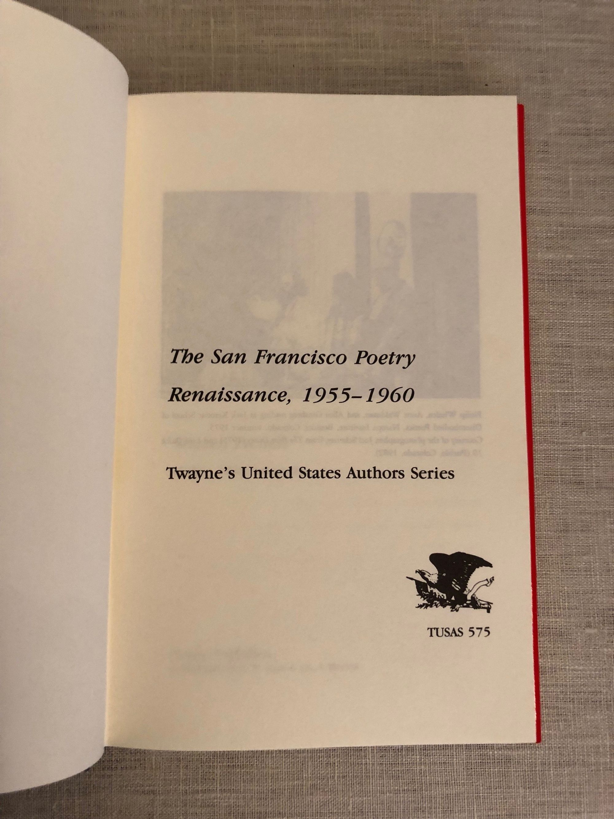 French, WarrenThe San Francisco Poetry Renaissance 1955-1960Published by Twayne Publishers, Boston, 1991.Signed by authorFirst Edition