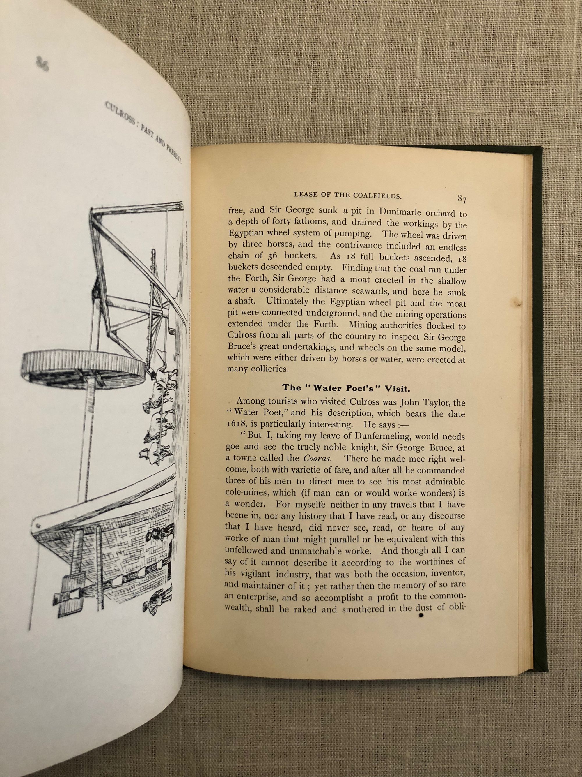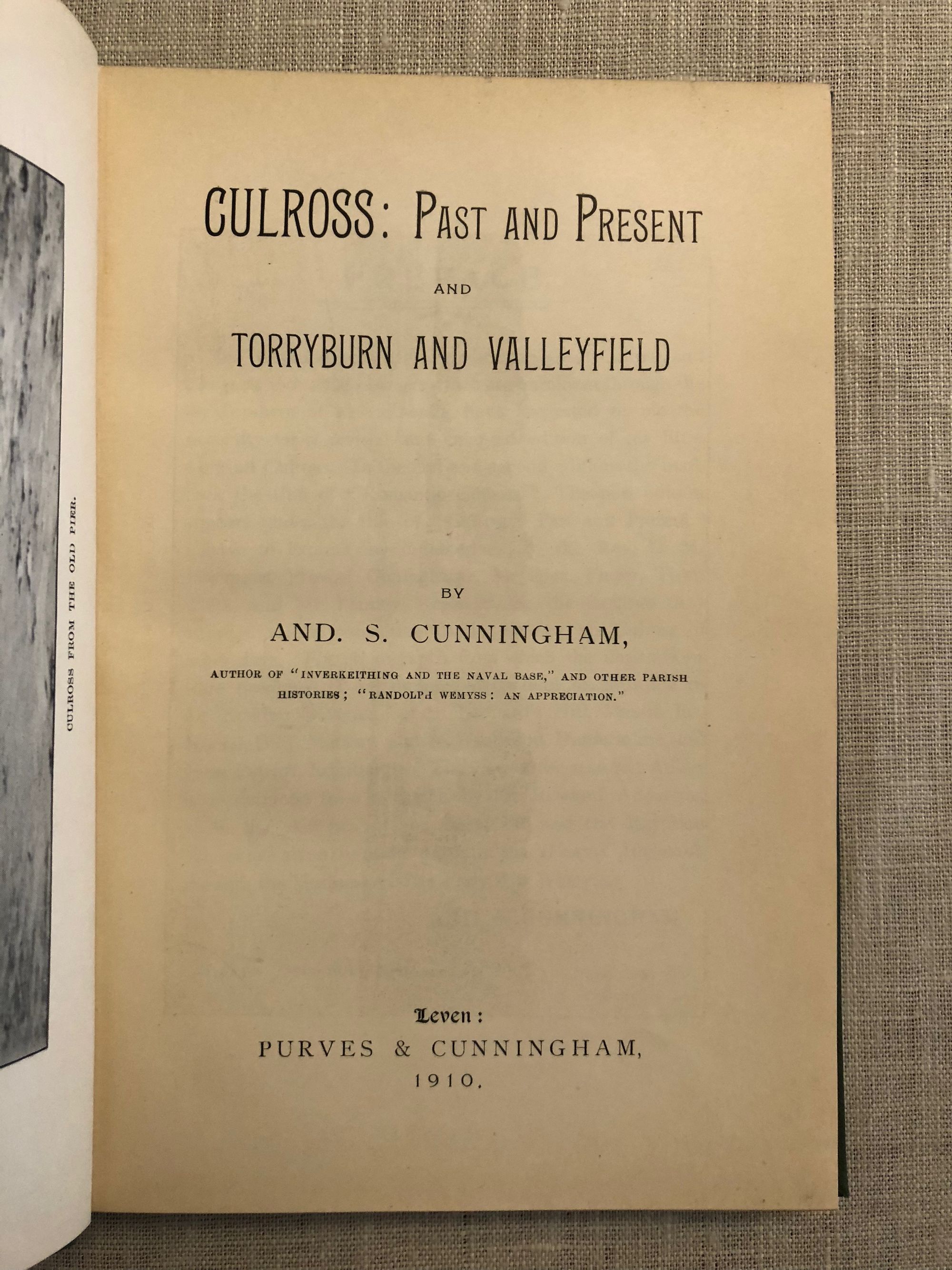 Hard cover in green cloth with gilt titles to top board and spine, 143pp. Anecdotes about the historic Scottish villages and Royal Borough, their industries (salt, coal mining, girdles) and churches. Now recognizable as being a set for the drama, "Outlander," the sixteenth-century buildings of Culross and Torryburn once housed plenty of real-life drama. This included witches, a hang-man's hill, a Cistercian Abby scriptorium, coal mines extending beneath the Firth of Forth which terrified King James VI of Scotland upon a visit from his home in Stirling Castle, plague-stricken villagers, and so much more. (Once home to these booksellers and history buffs.) Condition: Very Good. Dog-ear crease to one page. Inscribed to front endpaper. Illustrated.