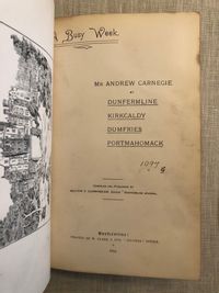 134pp. Ex-library. Description of Andrew Carnegie's visit to Scotland in 1898. Condition: Three-quarters leather bound, but with spine section disintegrated leaving the front cover nearly detached. Nonetheless, a very scarce book in any condition.