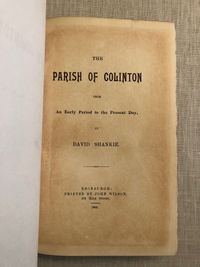 Shankie, DavidThe Parish of ColintonPublished by Privately Published, Edinburgh, 1902.First Edition