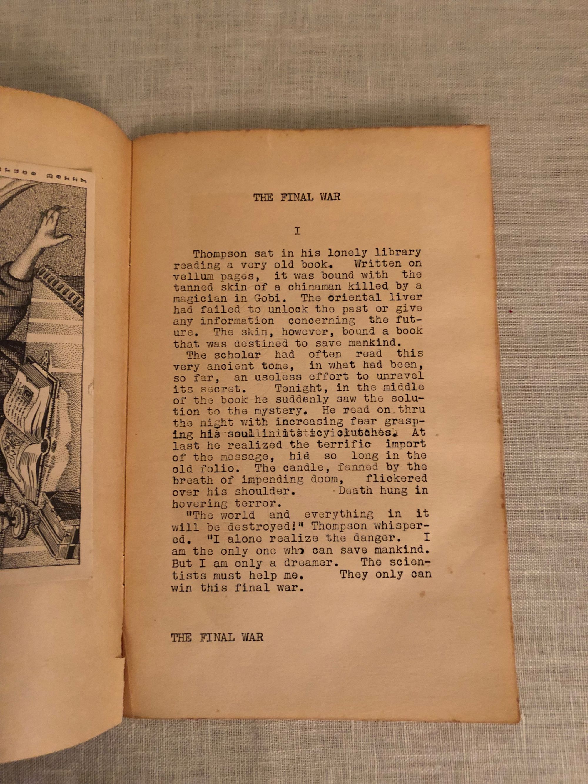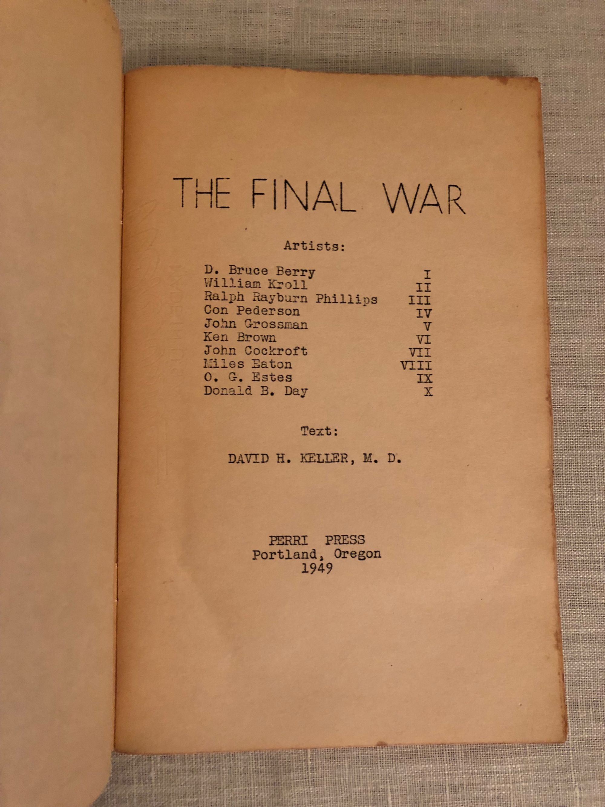 Paper wraps. 42pp unnumbered. Condition: Pages age-toned. Small closed tear to top of front cover and pages. Covers dust-soiled. *** A short story written by noted pulp magazine writer, David H. Keller (1880-1966). It was written around ten illustrations, which were winners of a contest held by the Portland Fantasy Society. A psychiatrist by profession, Keller turned to short-story writing as a hobby, and notably helped out Arkham House when it ran out of funds in 1948.