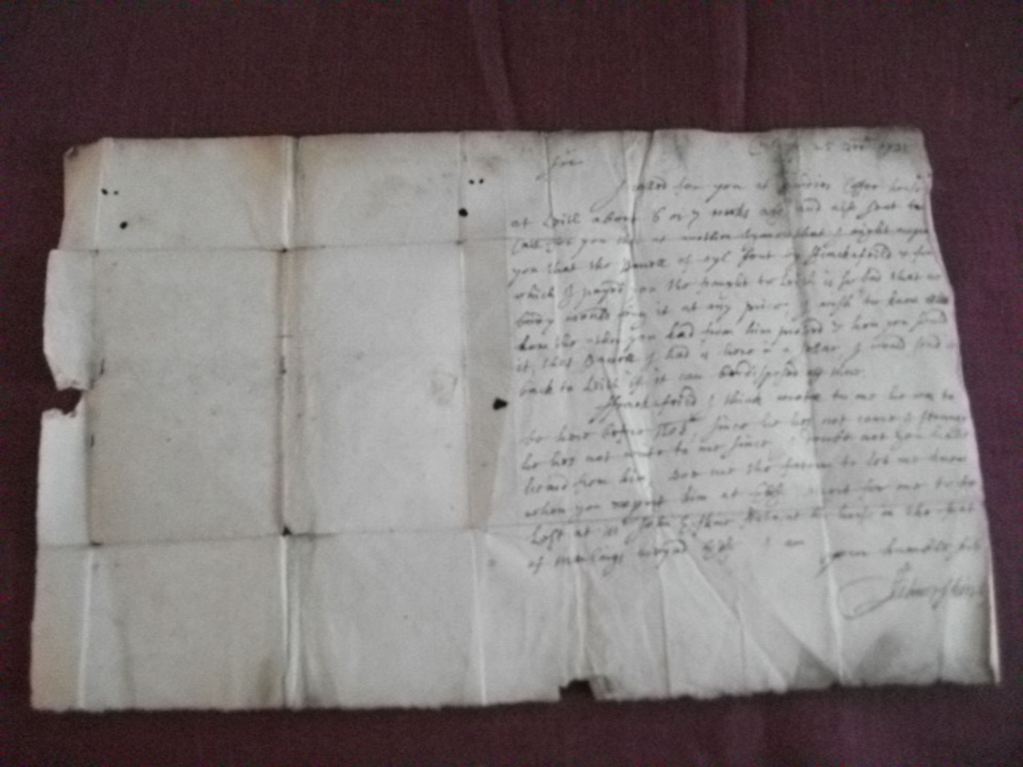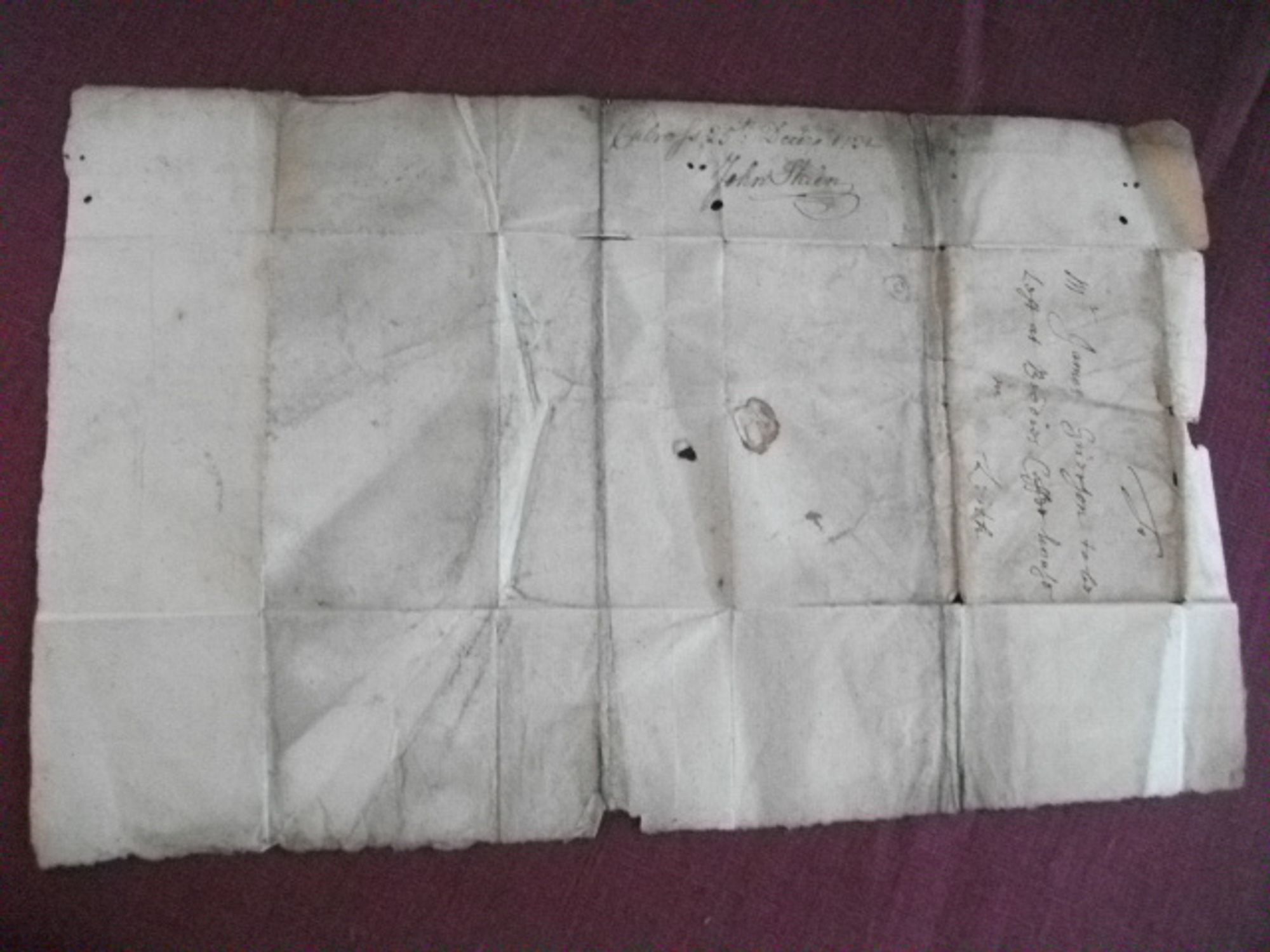 Single page letter from John Erskine (?), Culross to James Grierson (?), Brodie's Coffee House, Leith. He writes about trying to offload a barrel of something... Fair condition - the paper is fragile and has wear at the folds with small holes.