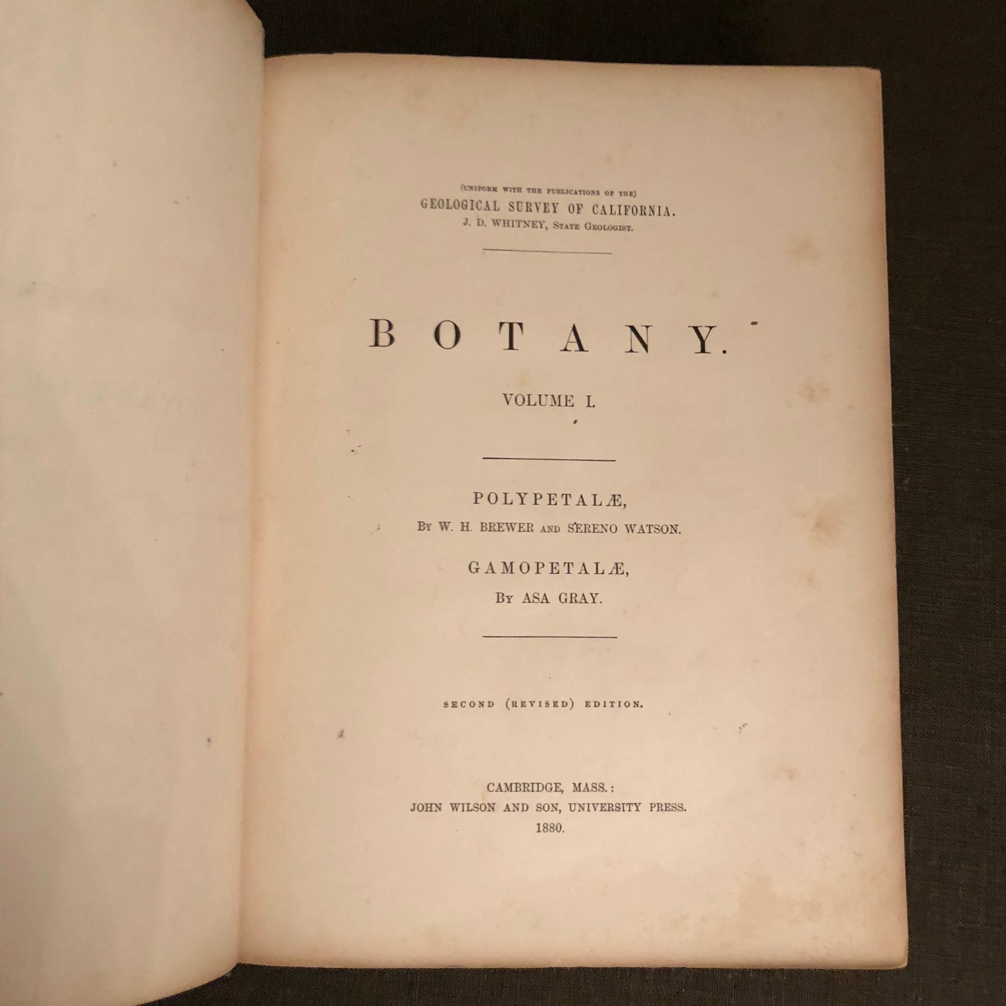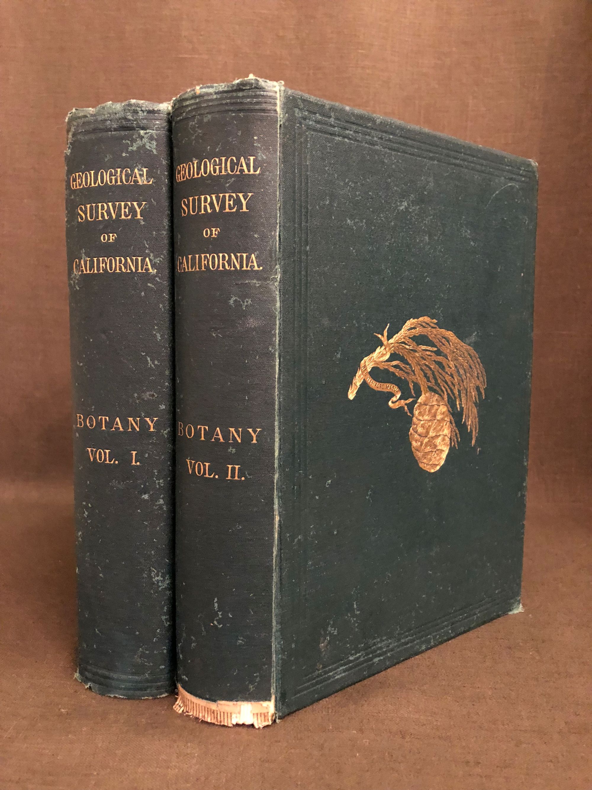 Hard cover, quarto, 628pp; 559pp. Condition: Good. Boards show spotting, and wear at corners, with small band missing from tail of volume two's spine. Hinges are cracked. Endpapers show some wear to the edges. ** Heavy set - expensive to mail outside the US. ** A survey of the botany of California as part of the Geological Survey conducted by Act of the Legislature in 1860. As such, these two volumes contain a "full and scientific description of its botanical productions". OCLC 25569752.