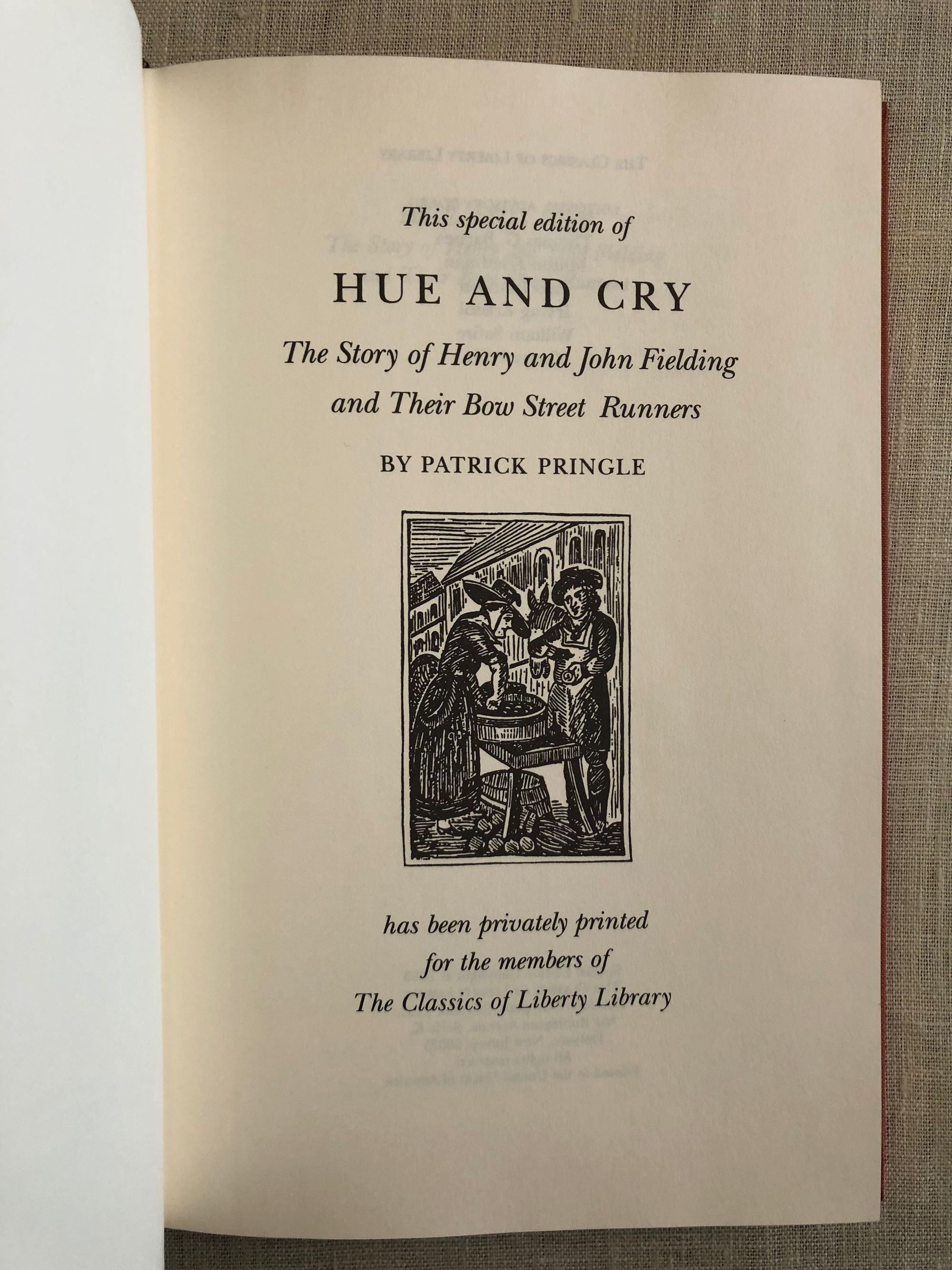 Pringle, PatrickHue and Cry. The Story of Henry and John Fielding and their Bow Street RunnersPublished by The Classics of Liberty Library, New York, 2005.