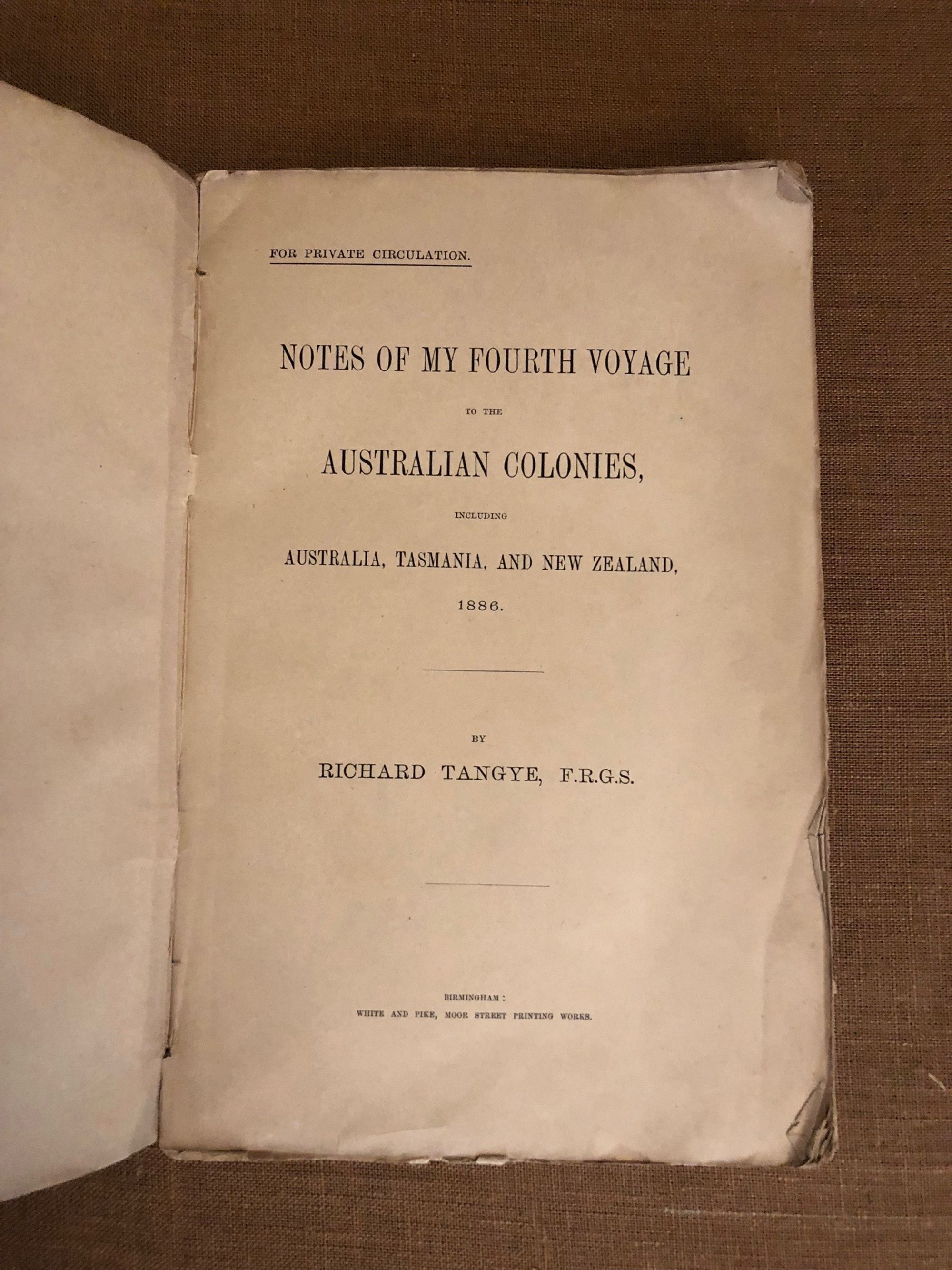 157pp. Richard Tangye (1833-1906) was a successful manufacturer in Birmingham, England, involved with mining equipment and machinery used to create the UK's first funicular railway. Tangye travelled extensively, and this book is a privately published record of one of his trip. Condition: Many pages unopened. Covers worn/torn at edges. Pages have dog-eared corners, and a small stain to the top corners of some.