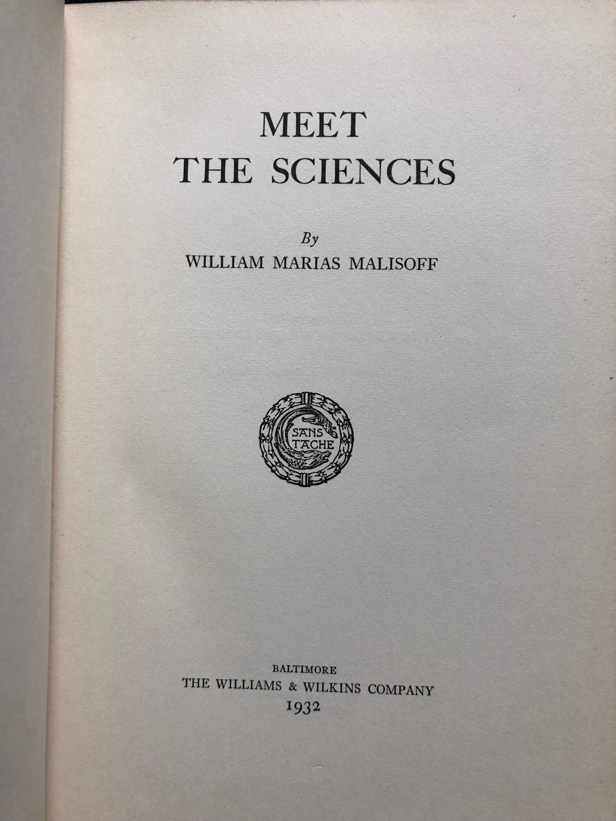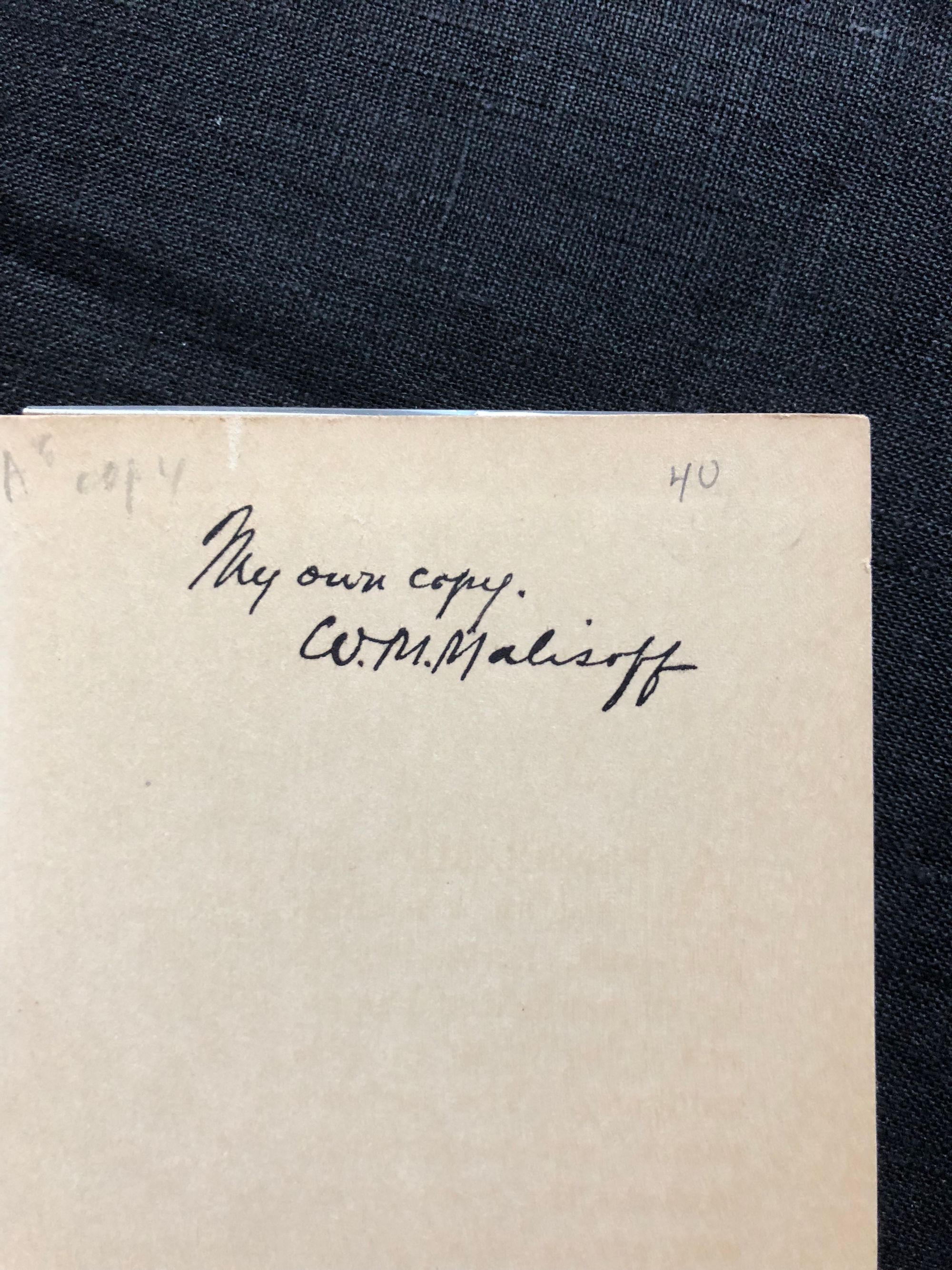 Hard cover, 8vo., 196pp. Inscribed by author to front free endpaper: "My own copy. W.M. Malisoff". Condition: Near Fine. Endpapers age-toned. In Very Good Minus dust jacket worn at edges with some loss. ** William Malisoff (Malisov) was a Russian-born American scientist who worked alongside Niels Bohr, Bertrand Russell and others on the Advisory Committee of the International Encyclopedia of Unified Science. There was a controversy in 1940 about his observed contact with a KGB agent. OCLC 1123273.