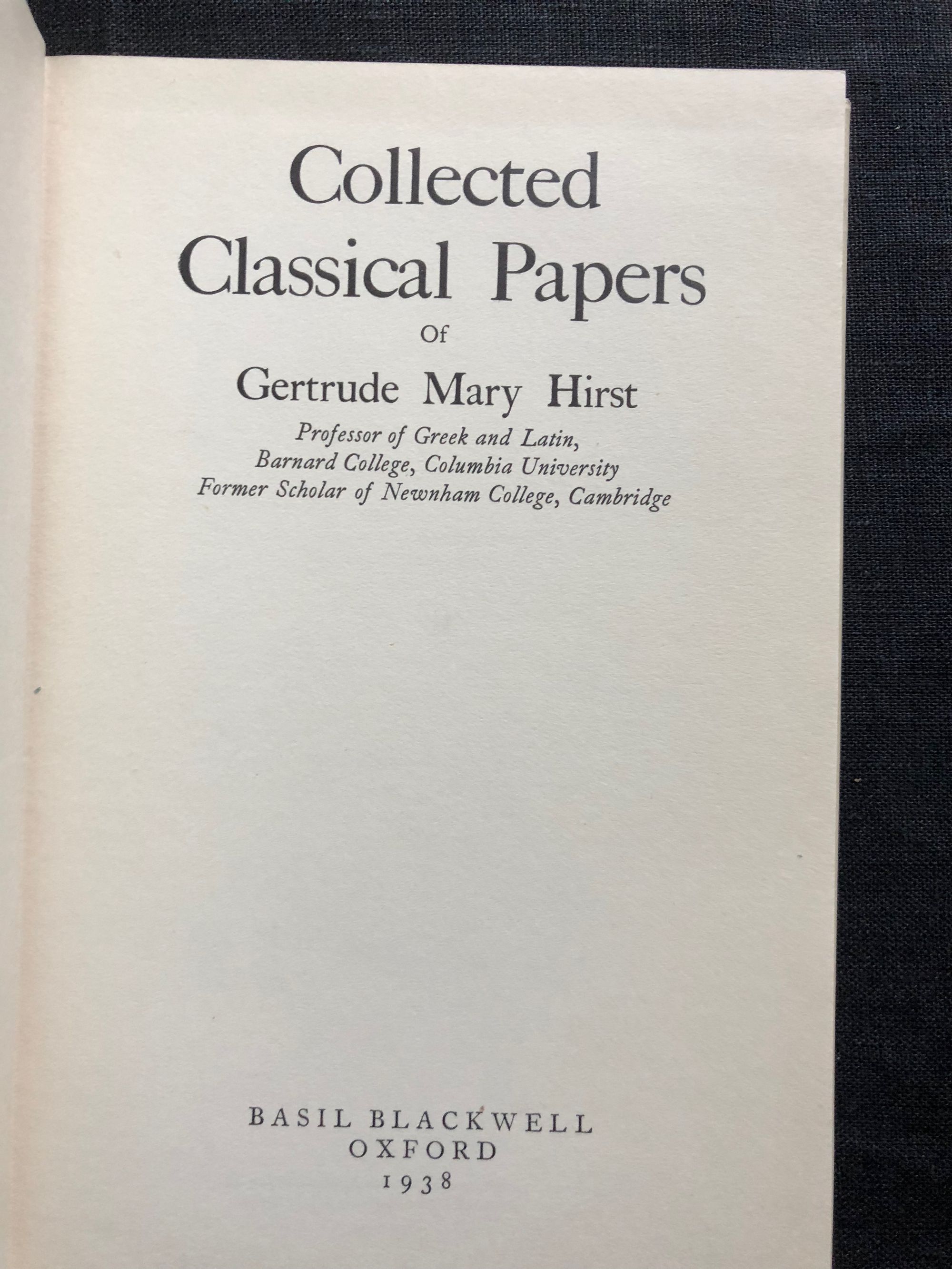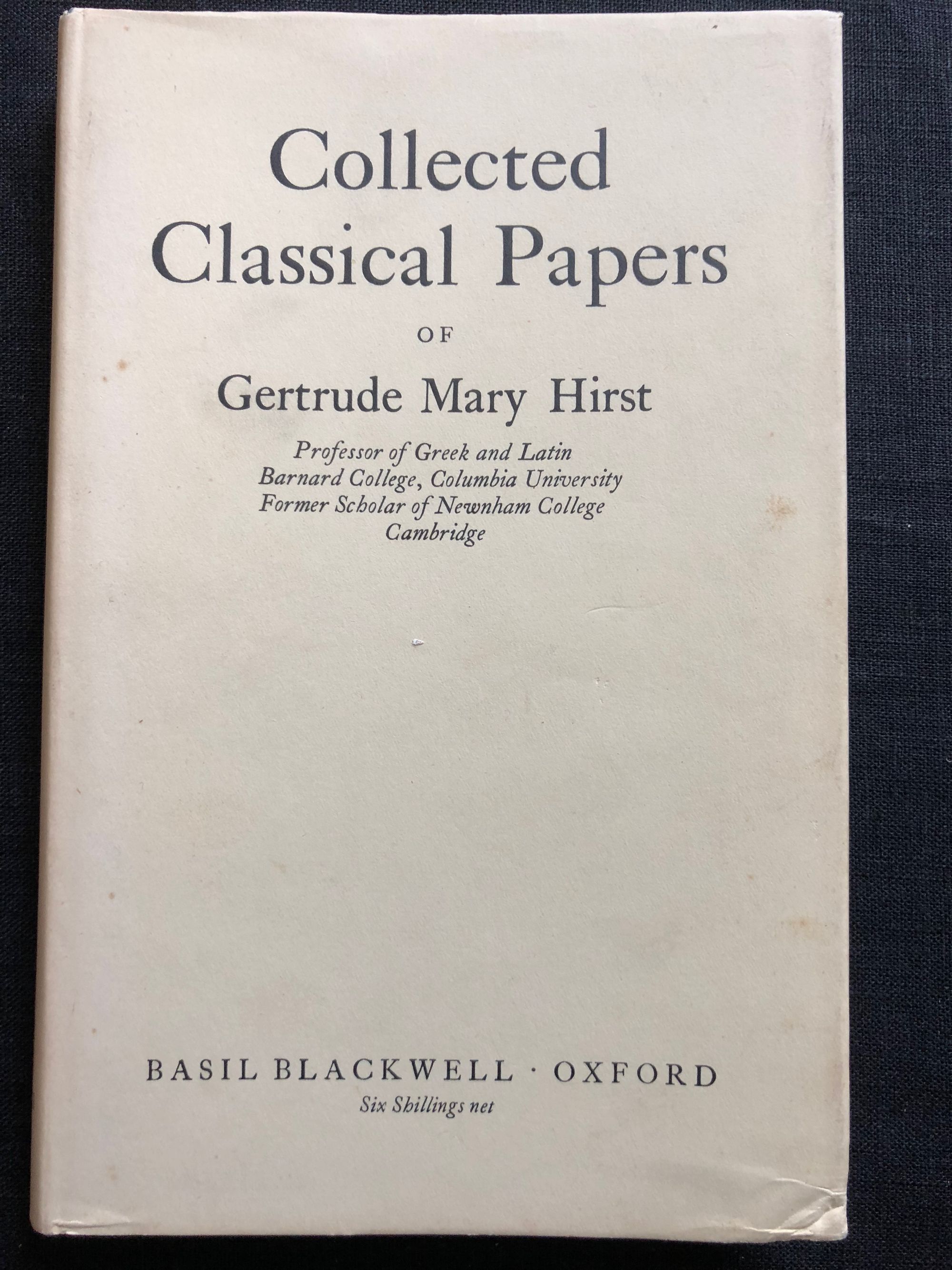 Hardcover. 8vo. 117pp. In publisher's blue cloth boards with dust jacket. Condition: One corner bumped. Pages age-toned. Light marks to dust jacket. ** Gertrude Mary Hirst (1869 - 1962), better known as "G.M.Hirst", was a classics scholar especially known for her work on the Roman authors. This volume includes her papers on Livy, Pliny, Vergil [Virgil], Catullus, Horace, Ovid, Juvenal, Martial, Statius, Tacitus and Herodotus. OCLC 4073158.
