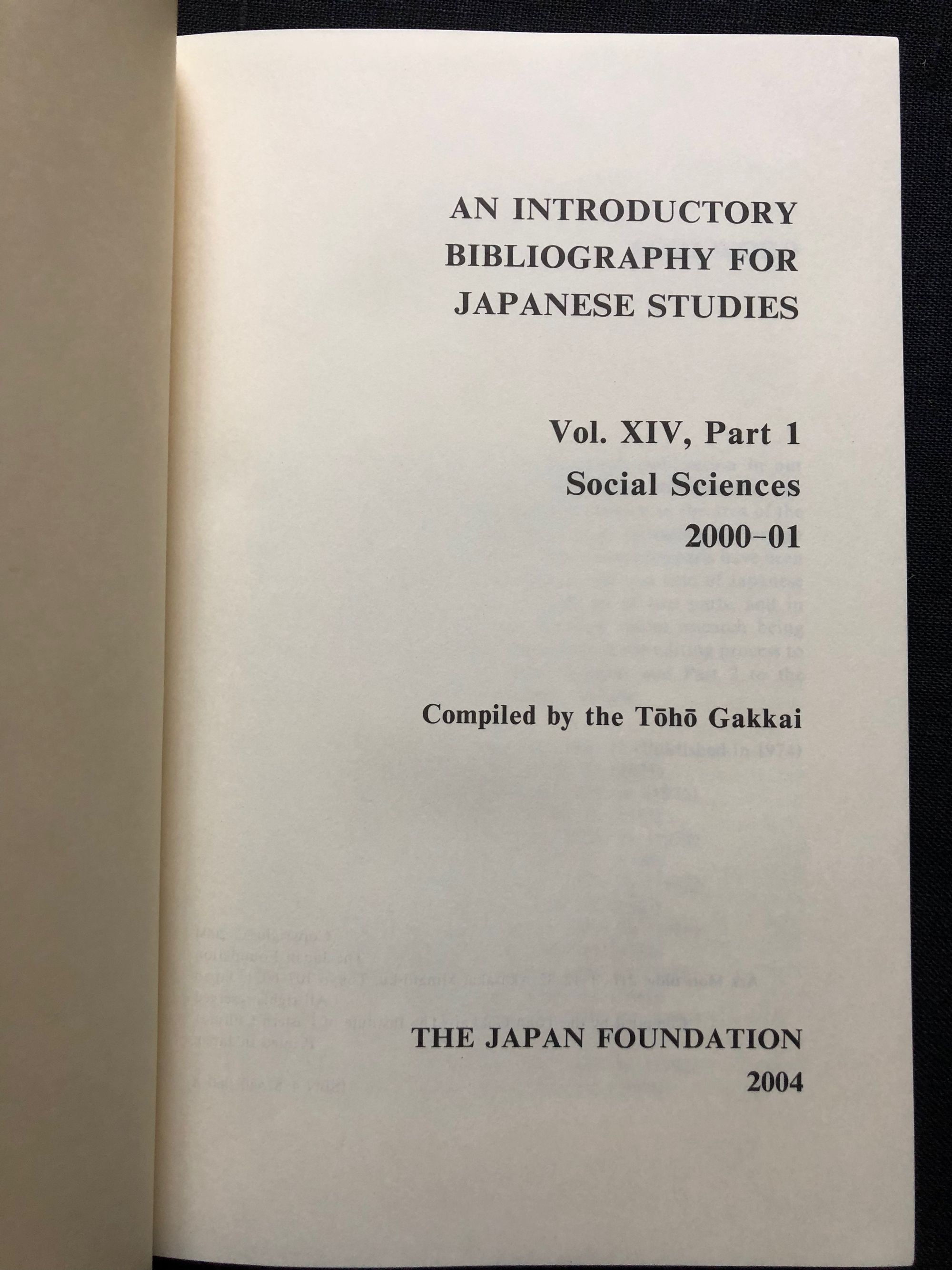 variousAn Introductory Bibliography for Japanese Studies. Vol XIV, Part 1. Social Sciences 2000-01Published by The Japan Foundation, Tokyo, 2004.First Edition