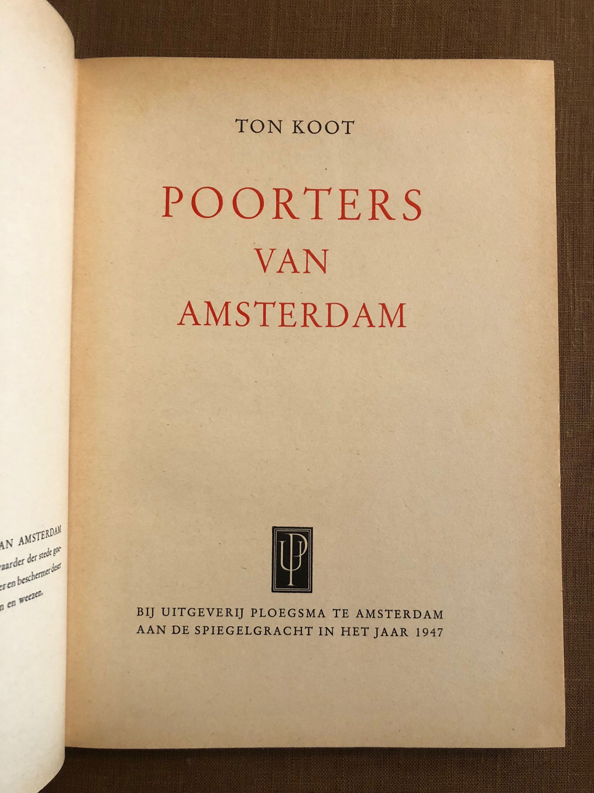 Koot, TonPoorters Van AmsterdamPublished by Uitgeverij Ploegsma, Amsterdam, 1947.