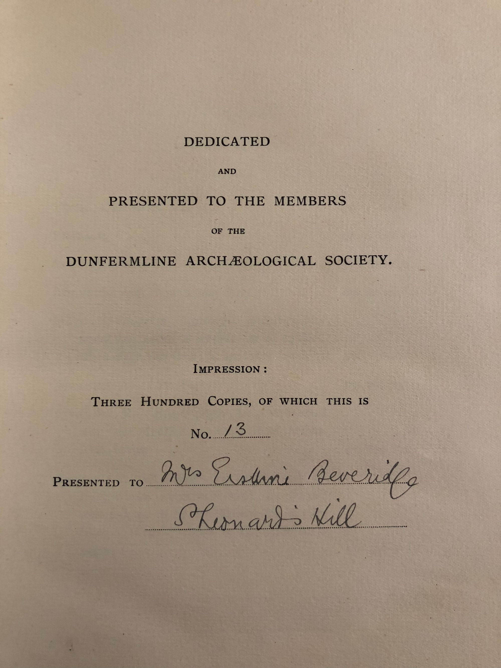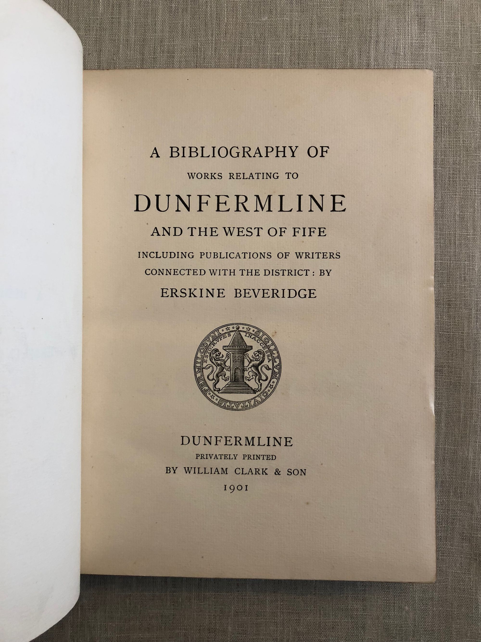 Hard cover, quarto, pp xxiv 320. Presentation copy to Mrs Erskine Beveridge. Number 13 of a limited edition of 300. Three-quarters leather bound. Important reference work for town histories of Fife. Condition: Very Good. Rubbing to outer joints and corners of boards. Foxing to endpapers.