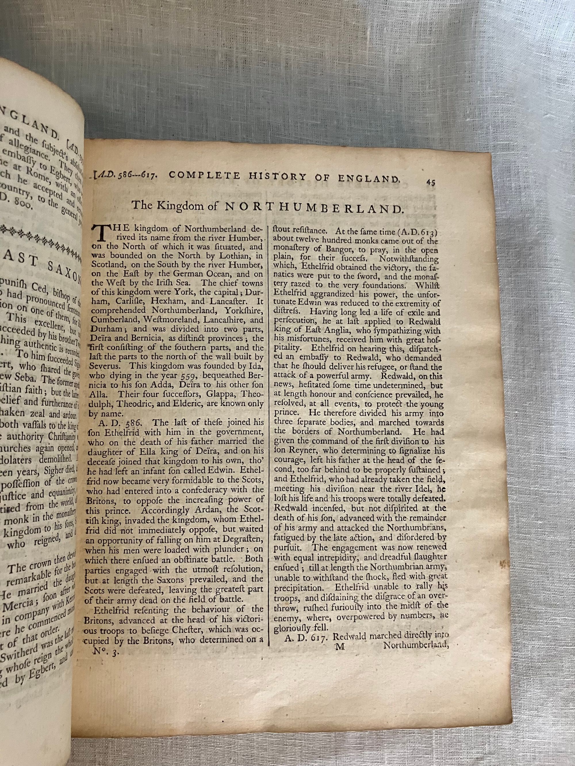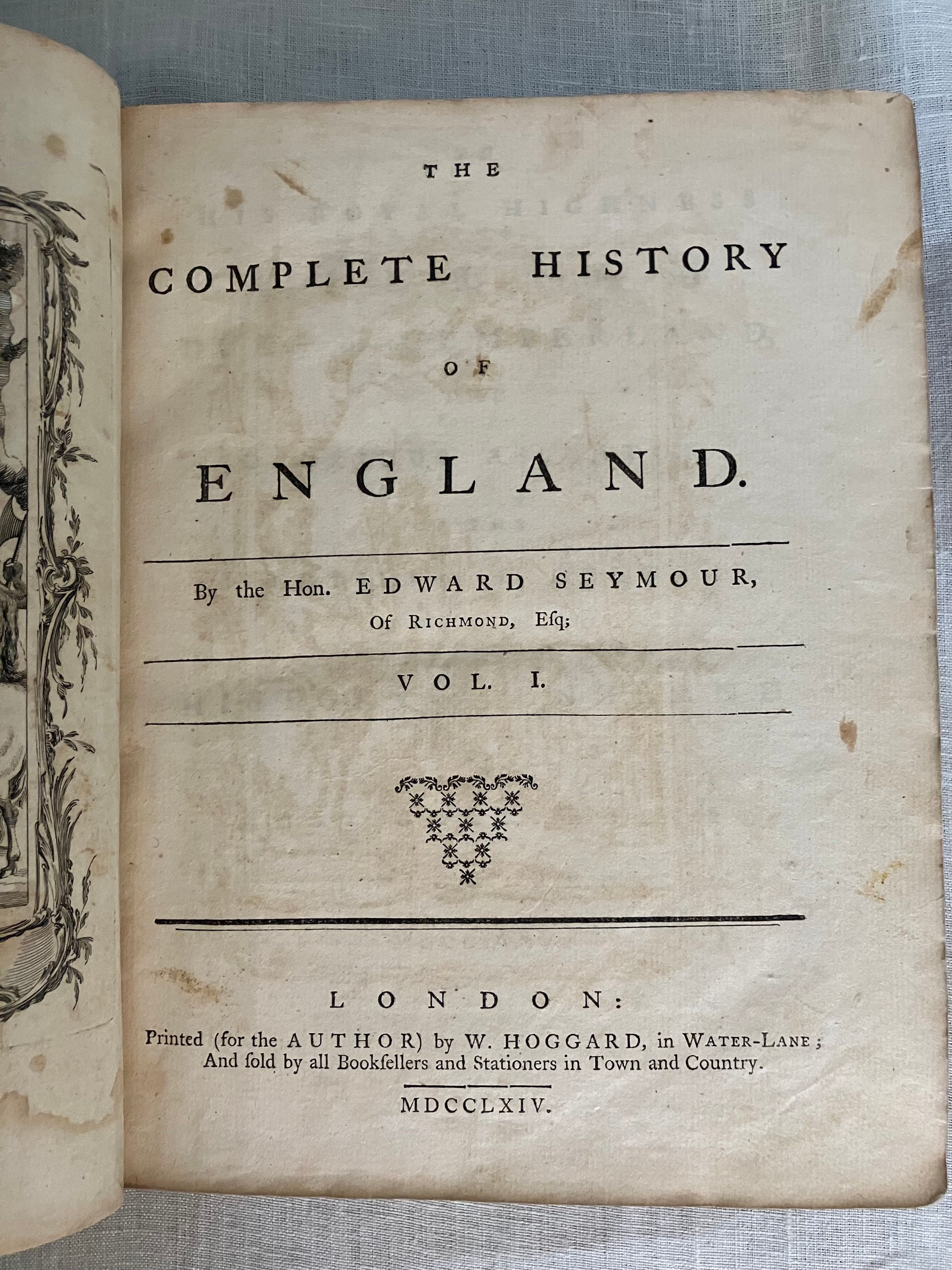Hard cover, in full calf, large 4to. 810pp. Includes 34 original engraved plates and one map; (handwritten note to ffep. suggests a map of France may be lacking.) Some plates signed J. Lodge or Reynolds. Boards with rolled gilt edges. The spine, which has been rebacked, has five raised bands, with a red onlaid label to the second compartment with title in gilt, and an onlaid black label with volume number in gilt on third.compartment. Condition: Good overall, with some light paint splatter and light scruffing to boards, rubbed and bumped corners especially on front. Wear to head endcap. Both hinges have been reinforced with tape. Interior: water stains to endpapers, where some notes in old ink appear to be scrubbed out intentionally. A few repairs with paper tape on preliminaries. Interior text block is age-toned and occasionally with old black ink markings, blots and annotation.** The book includes historical details from Briton's pre-history up to, and including, the reign of Queen Elizabeth I., c. 1603. The HON. EDWARD SEYMOUR has been misidentified by some of the twenty-six institutions holding this scarce work as the 4th Bart of Pomeroy. However, that gentleman's dates (1634-1708) do not fit the publication date of this item. (It would have been a good story though, as even Samuel Pepys is said to have described him in print as so arrogant as to make an unpleasant impression on most of those who met him.) I believe our Edward Seymour (1717-1792) to in fact be the 9th Duke of Somerset, as of 1750 when two lines of the Seymours were reunited. Both gentlemen were, however, distantly related to the famous 1st Lord Somerset, Lord Protector of the Realm in the time of his nephew, King Edward VI, in the Tudor period.**Mapmaker JOHN LODGE , (working circa 1754-1796,) was a highly-regarded London map-maker and engraver, once apprenticed to Thomas Jeffries. His work was featured in various magazines and periodicals of the time, including The Gentleman's Magazine. In fact, the Gentleman's Magazine and Historical Chronicle for the Year 1797, Vol. LXVII features an early draft of a plate of coins which appears without attribution on page 645; a more finished version appears in the book for sale on page 137. A bit of snarky correspondence occurs in the magazine's Letters to the Editor declaring the coins to bear "no resemblance whatsoever to any in the English Series." We will leave the evaluation of that charge to our more numismatically-astute readers! Heavy volume, extra cost to ship abroad. OCLC No. 711960699.