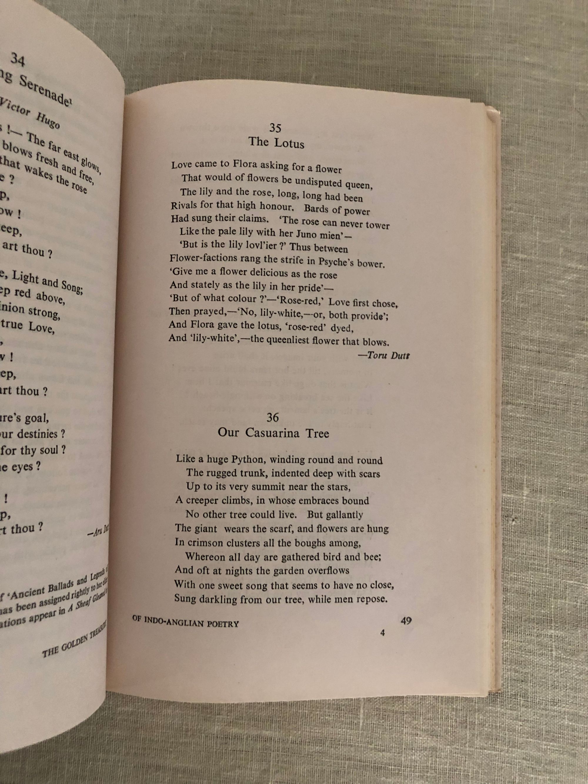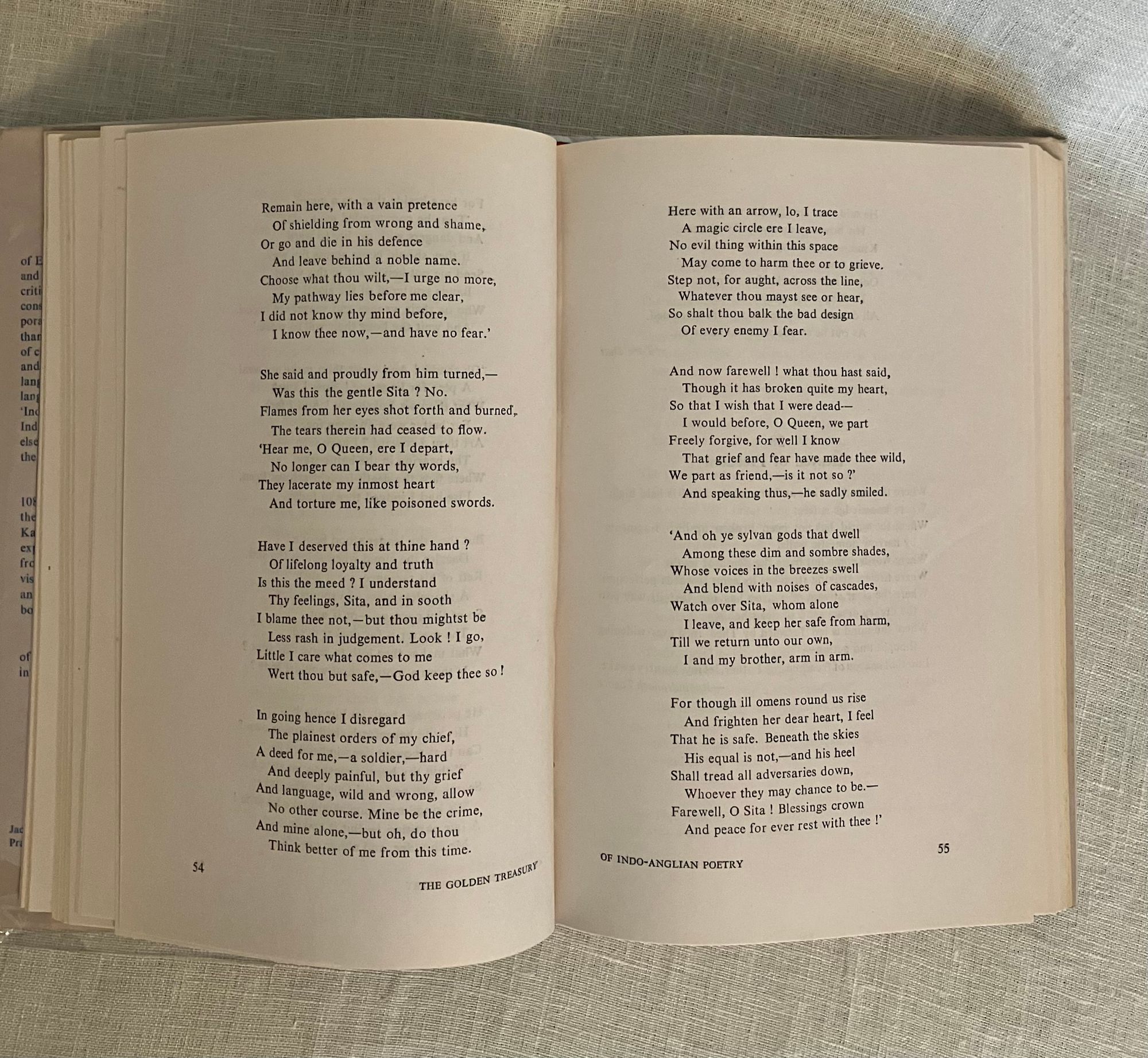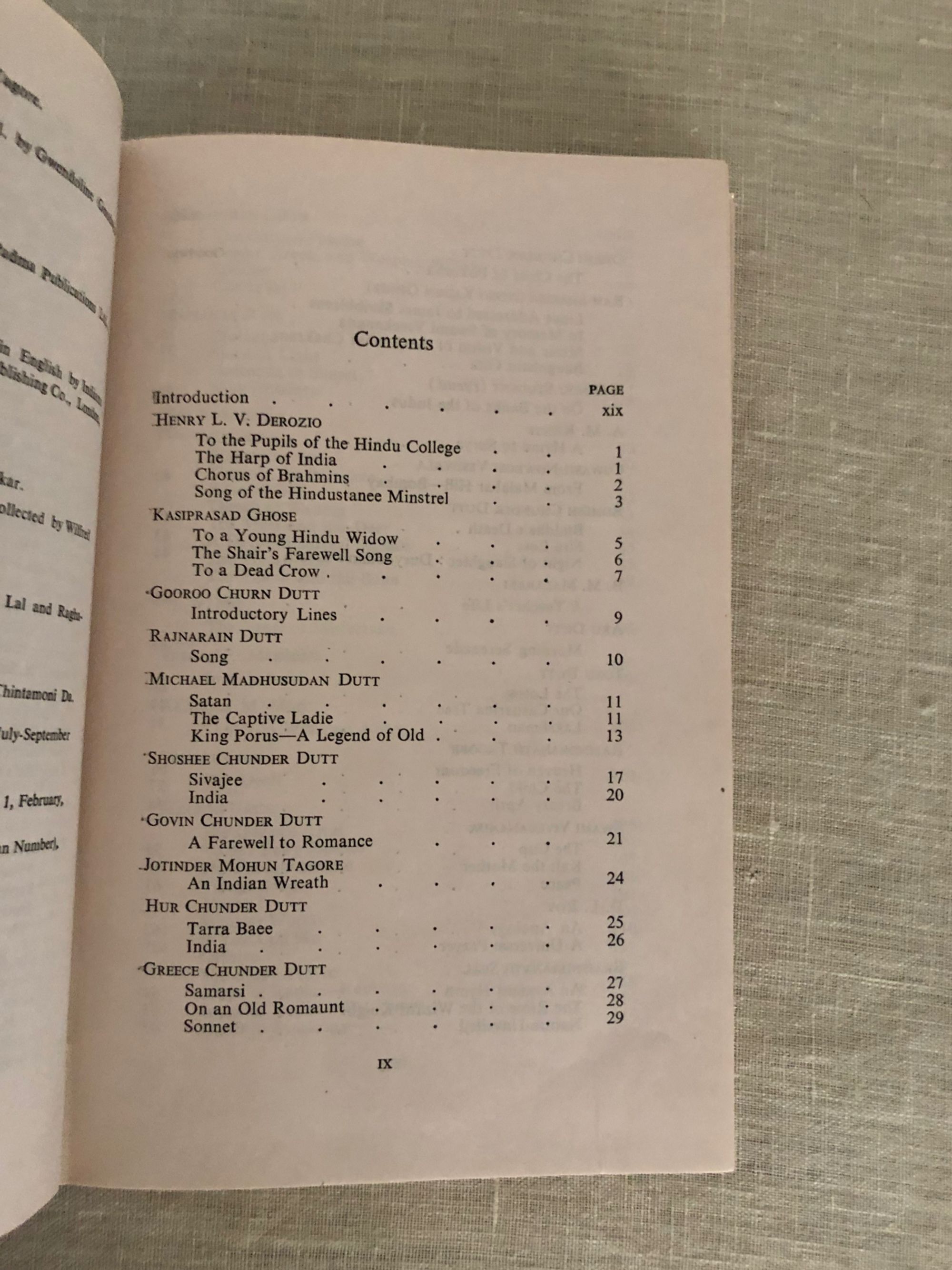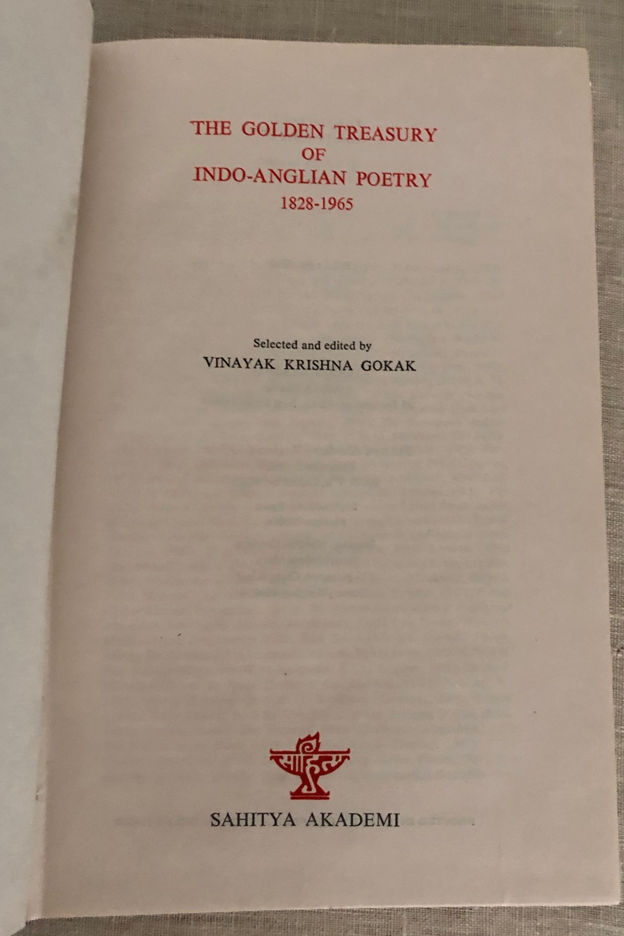 Second Printing, dated 1978. Hard cover, 8vo., in black cloth with titles in gold to the spine, 323pp., in the original dust jacket. An anthology of verse written in English by 108 Indian poets, spanning the years of the mid-nineteenth century to the 1970's. This volume was important in establishing the study of Indo-Anglian writers. Editor Vinayak Krishna (V.K.) Gokak (1909-1992) was a highly celebrated Oxford-educated scholar and writer from India, winning the Jnanpith Award in 1990 for works in the Kannada language, for his epic Bharatha Sindhu Rashmi. Condition: Very Good Plus, with some soiling to the half title page. In a Very Good Minus dust jacket, which has some rubbing. Now protected in mylar.