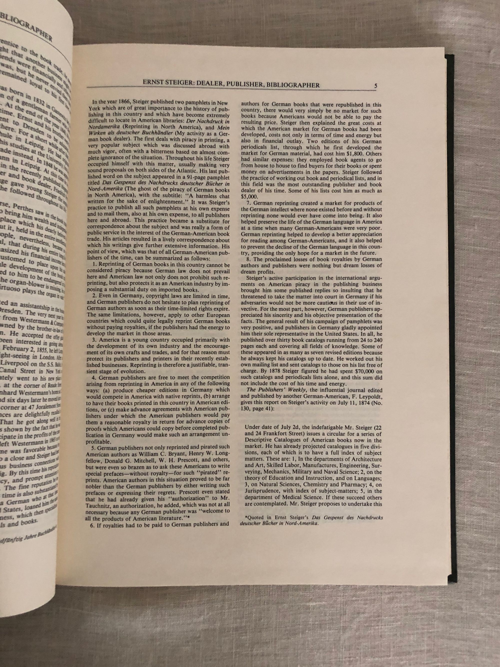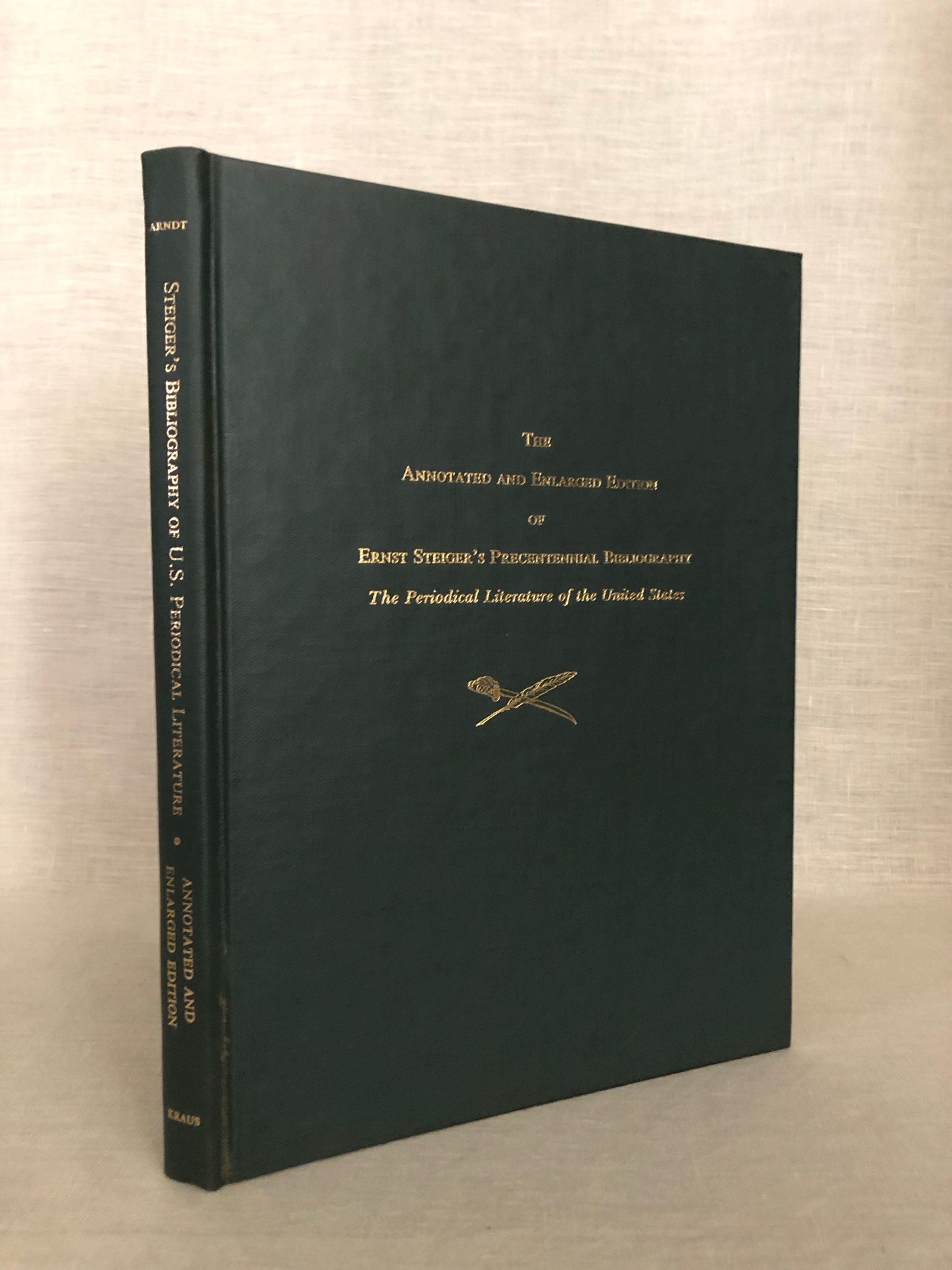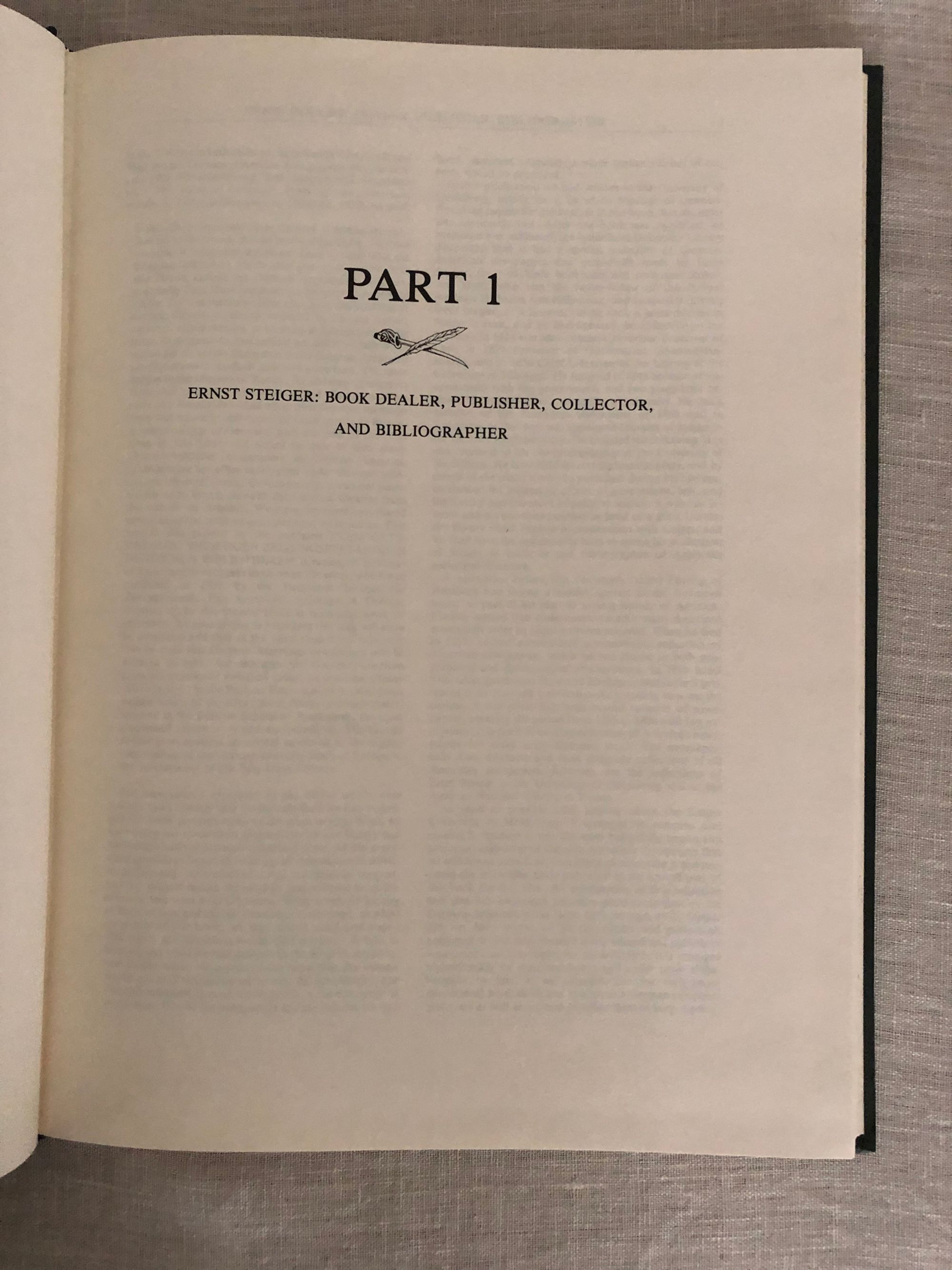 Hard cover, quarto, 228pp. Ernst Steiger (1832 - 1917) was an American bookseller, publisher and bibliographer. Born in Saxony, he emigrated to New York, where he imported German language publications, and later published German works as well as language textbooks. Condition: Near Fine.