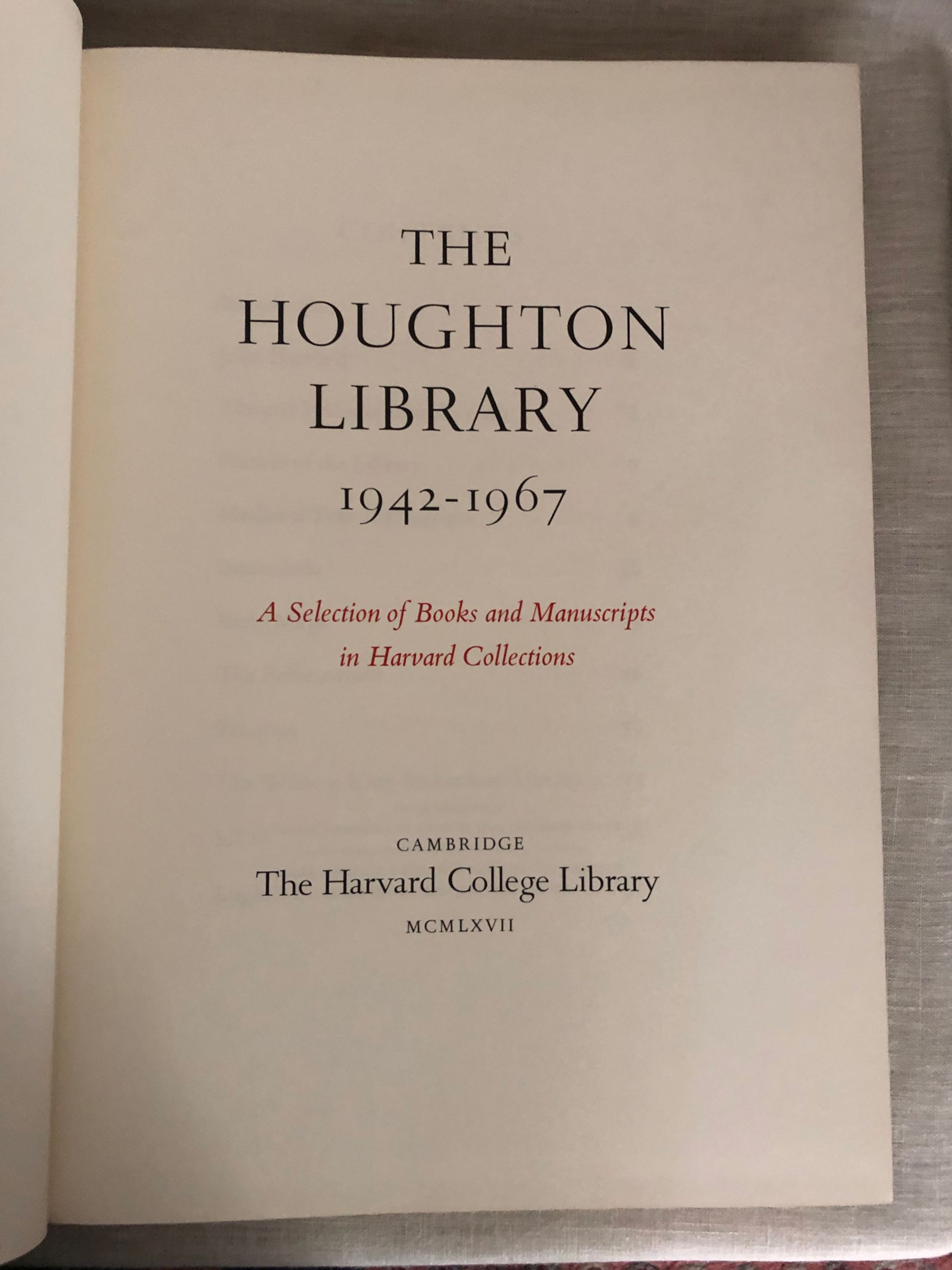 variousThe Houghton Library 1942 - 1967. A Selection of Books and Manuscripts in Harvard CollectionsPublished by The Harvard College Library, Cambridge, Mass., 1967.First Edition