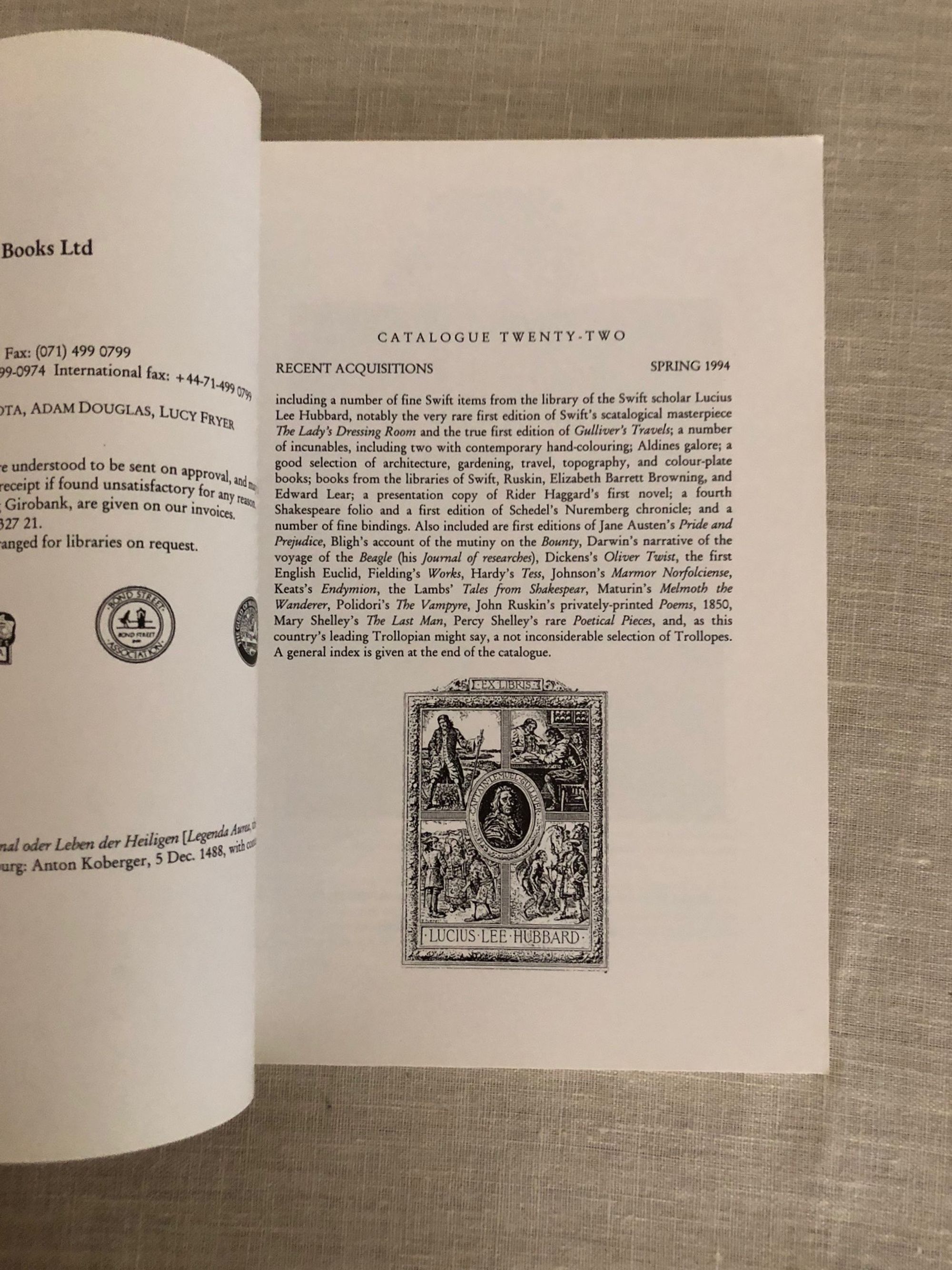 variousSimon Finch Rare Books. Catalgogue Twenty-Two. Recent AcquisitionsPublished by Simon Finch Rare Books, London, 1994.First Edition