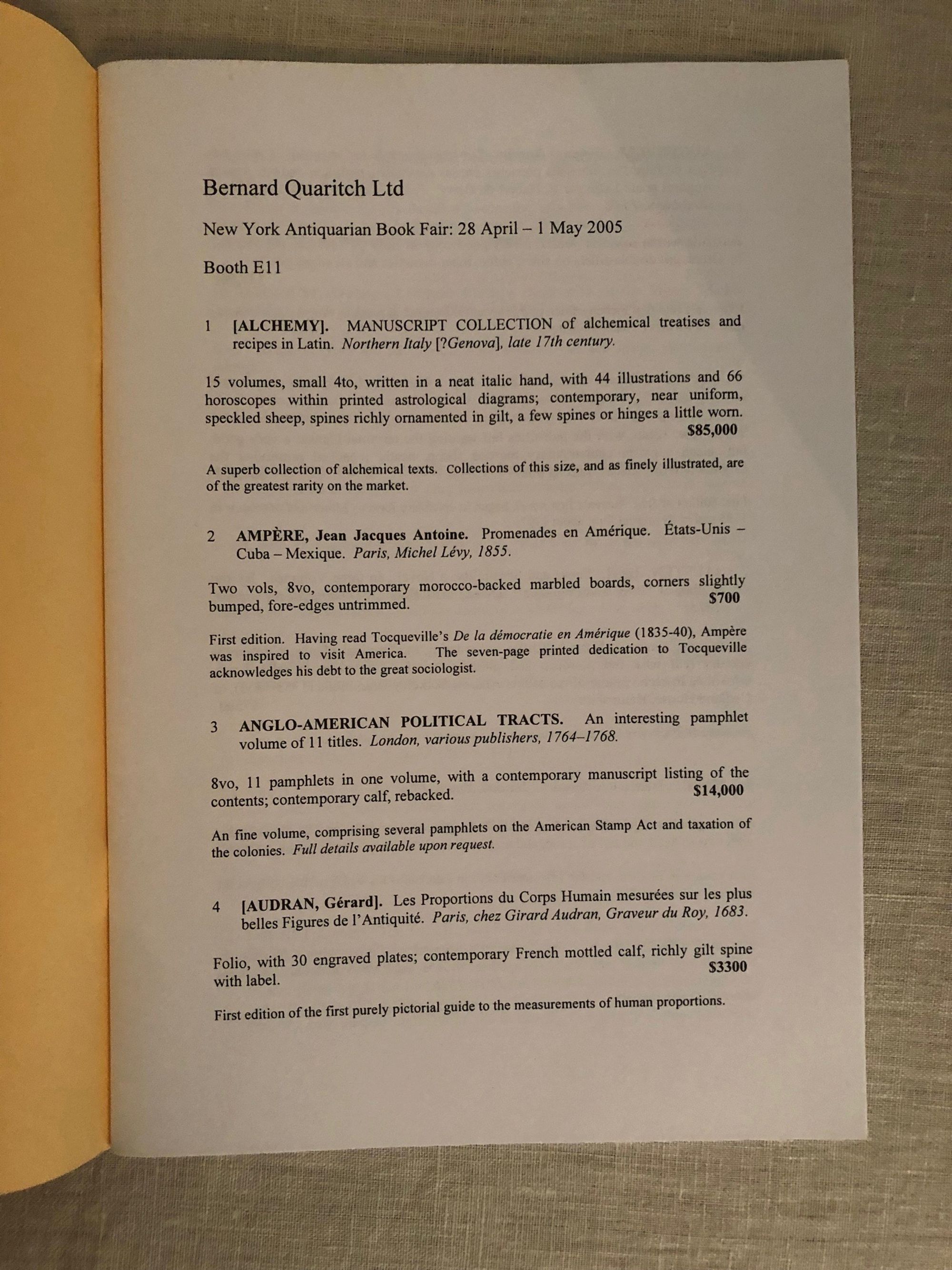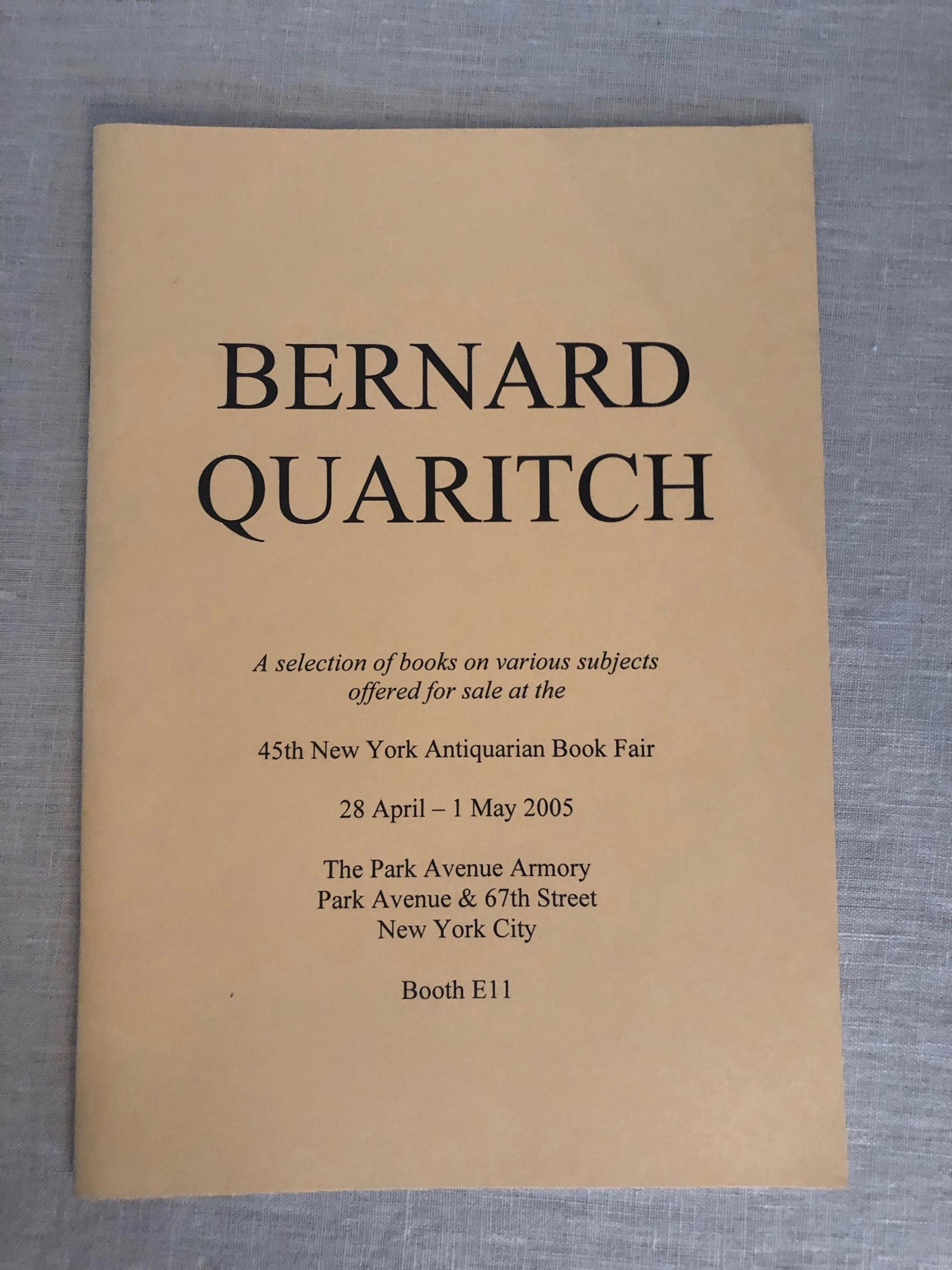 variousBernhard Quaritch: A Selection of Books on Various Subjects Offered for Sale at the 45th New York Antiquarian Book Fair. April - May 2005.Published by Barnard Quaritch, London, 2005.First Edition