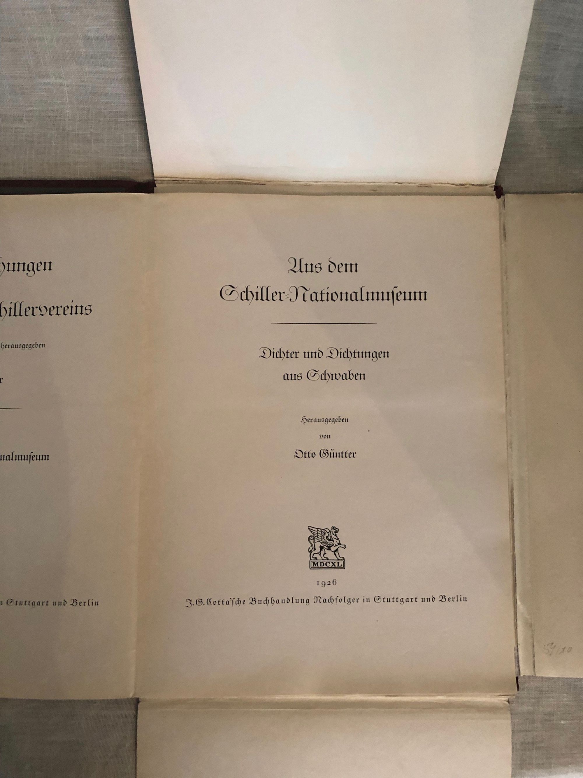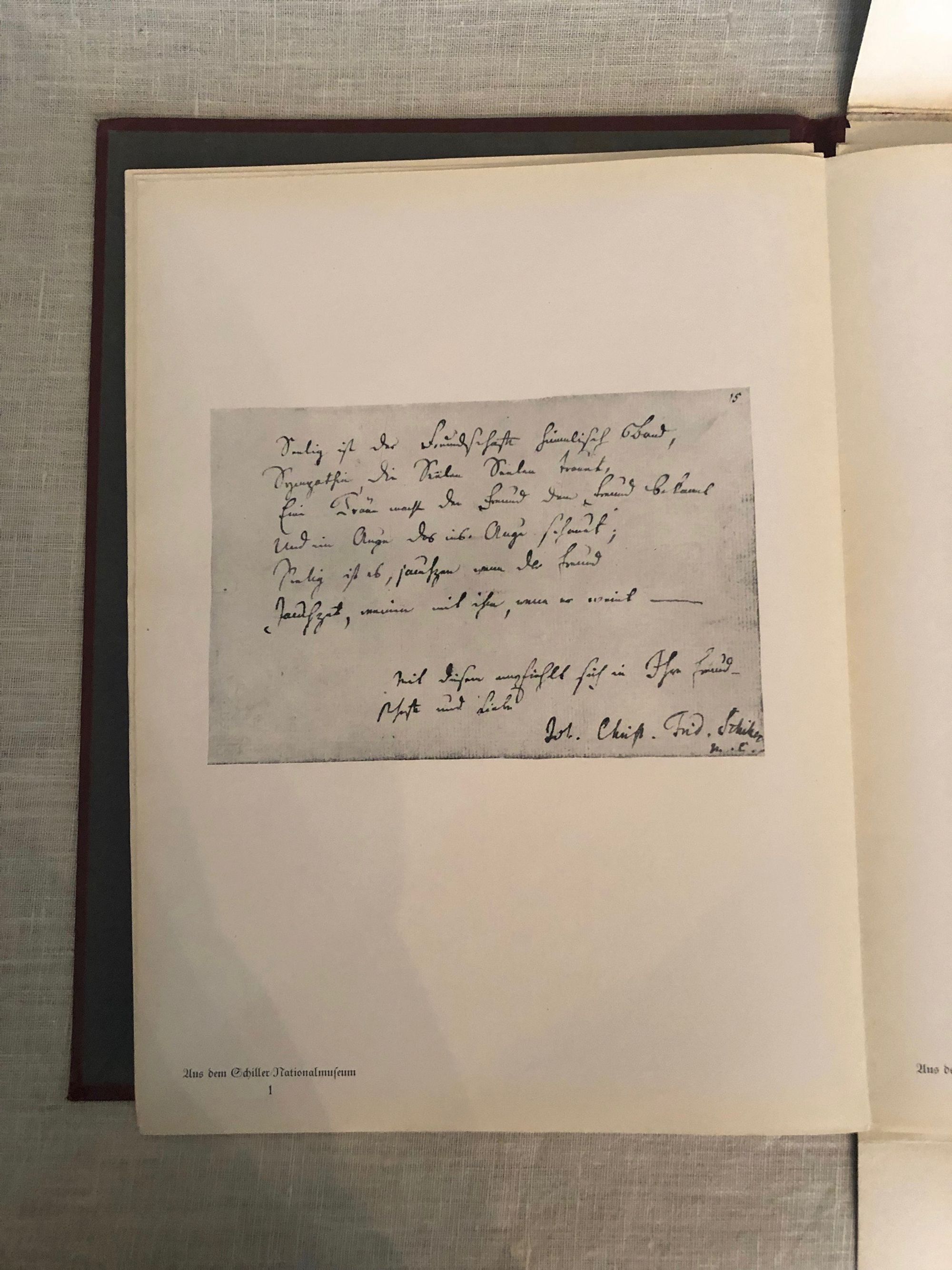 Hard cover, quarto, 24pp. Loose leaves in red cloth-bound chemise with gold lettering. Portraits of German writers and facsmiles of their manuscripts. Condition: Near Fine in Very Good chemise which shows cracks at hinges and one small mark to front.