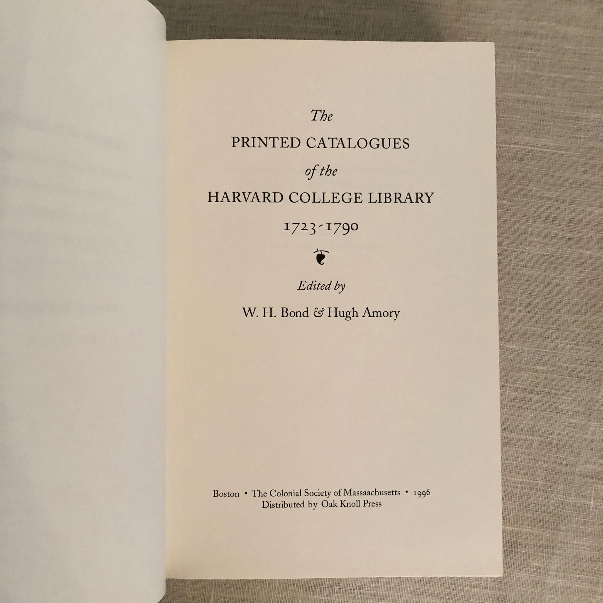 variousThe Printed Catalogues of the Harvard College Library. 1723 - 1790Published by The Colonial Society of Massachusetts, Boston, 1996.First Edition