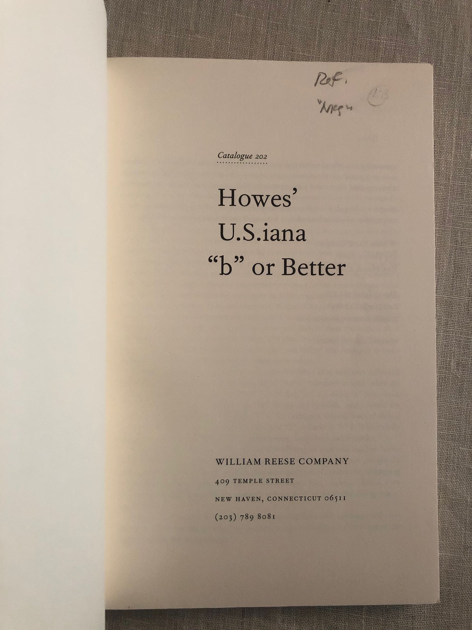 variousCatalog 202: Howes' U.S.Iana 'B' or BetterPublished by Wm Reese Co., New Haven, Conn., 1111.First Edition