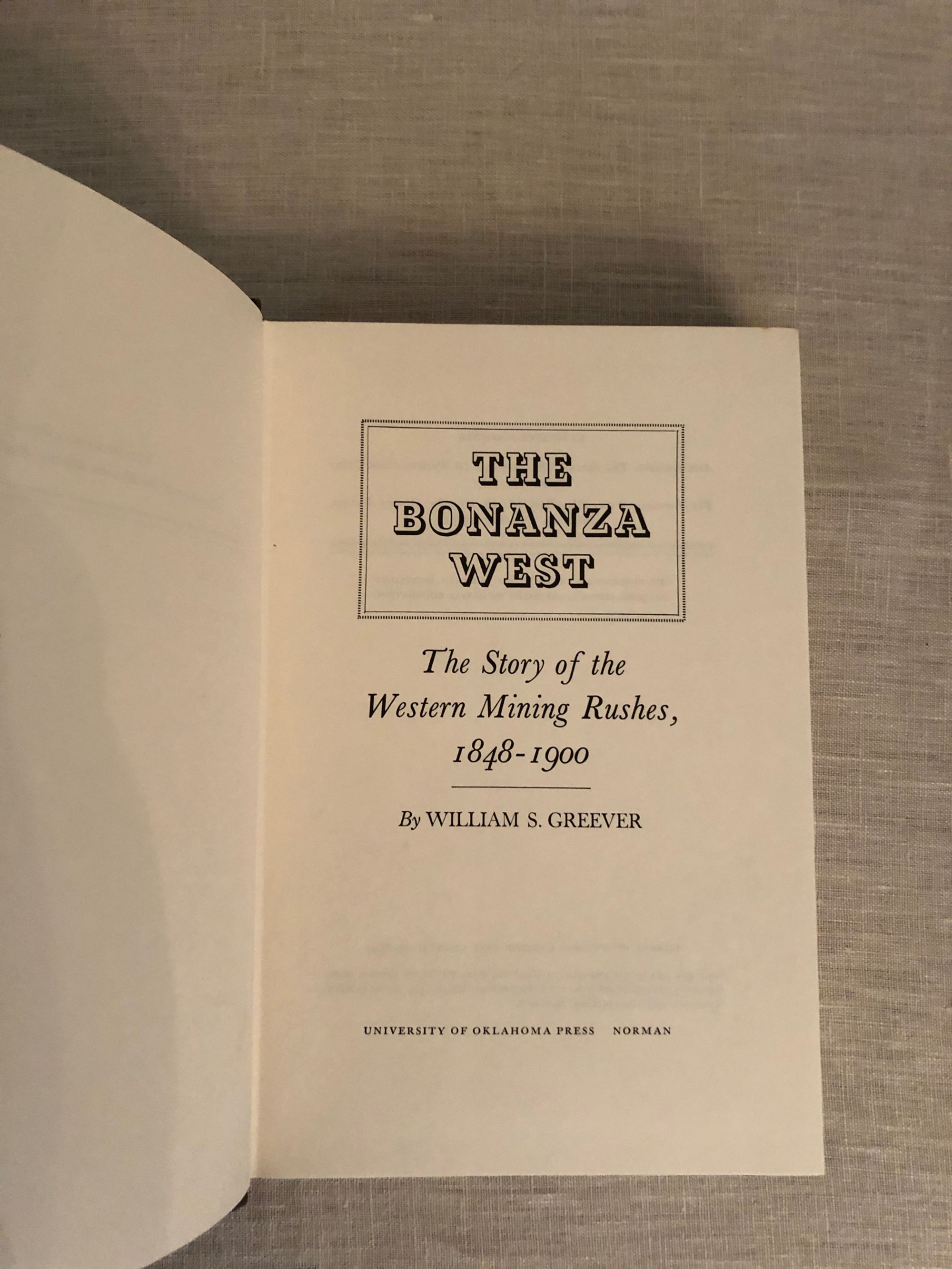 Hardcover, 8vo, in brown cloth with a black label with gilt title to the spine, and having a pictorial dust jacket ,now in mylar, 430 pp. The award-winning author was Professor, and Chairman, of the History Department at the University of Idaho. The book describes the history and impact of the various gold rushes throughout the Western United States in the nineteenth century, including particulars of those in California, Nevada, Montana, Idaho, the Klondike and Yukon. He explores the significance this activity on the social, economic, political and cultural life of the West. Condition: Very Good with the pages bright and clean on the interior, no writing, no bumps to the boards. There is some mild foxing to the top edge only of the text block. The dust jacket is about Good: there is some rubbing to the front, and an inch-long closed tear on the front surface of the d/j. The d/j is price clipped.