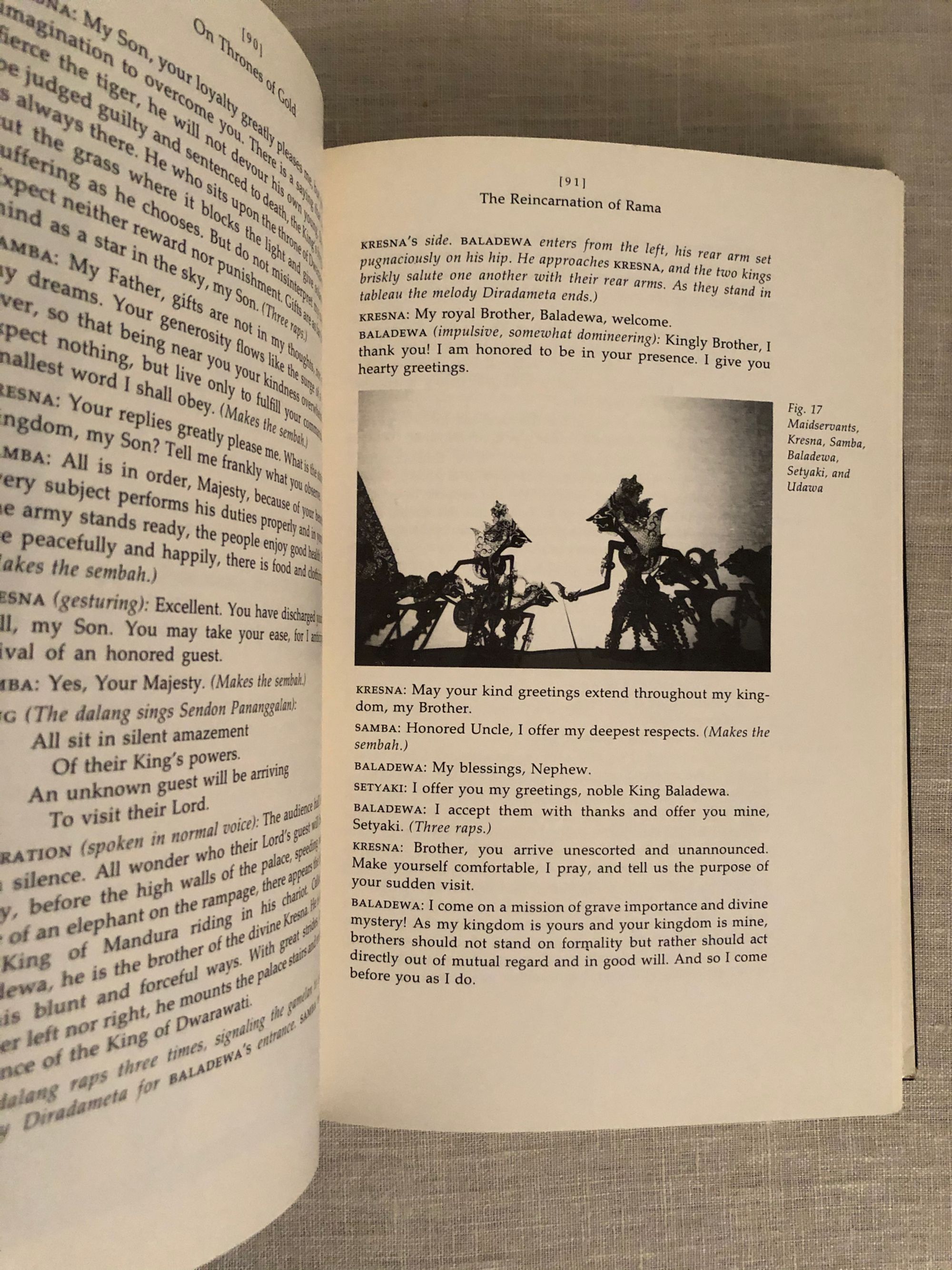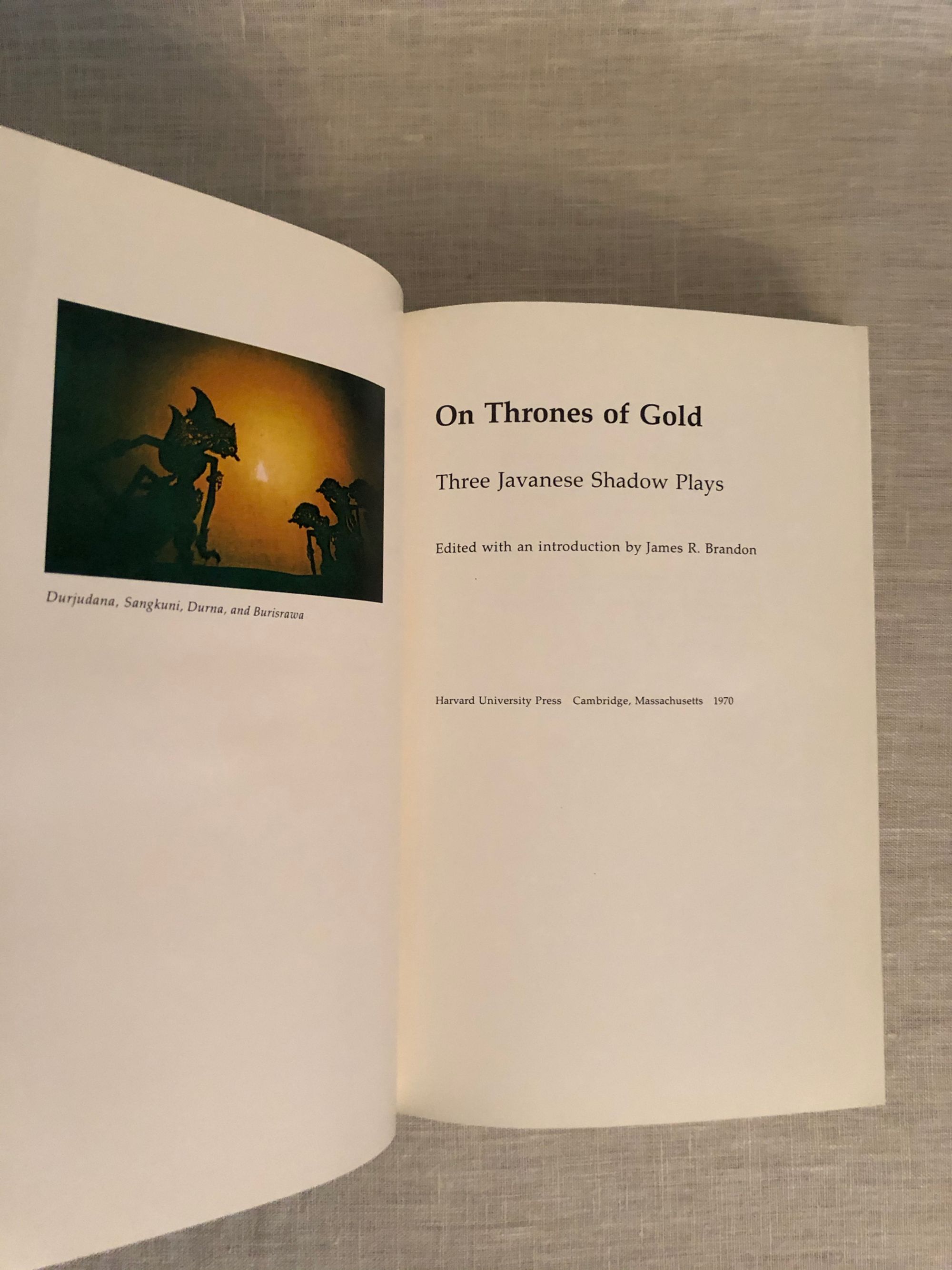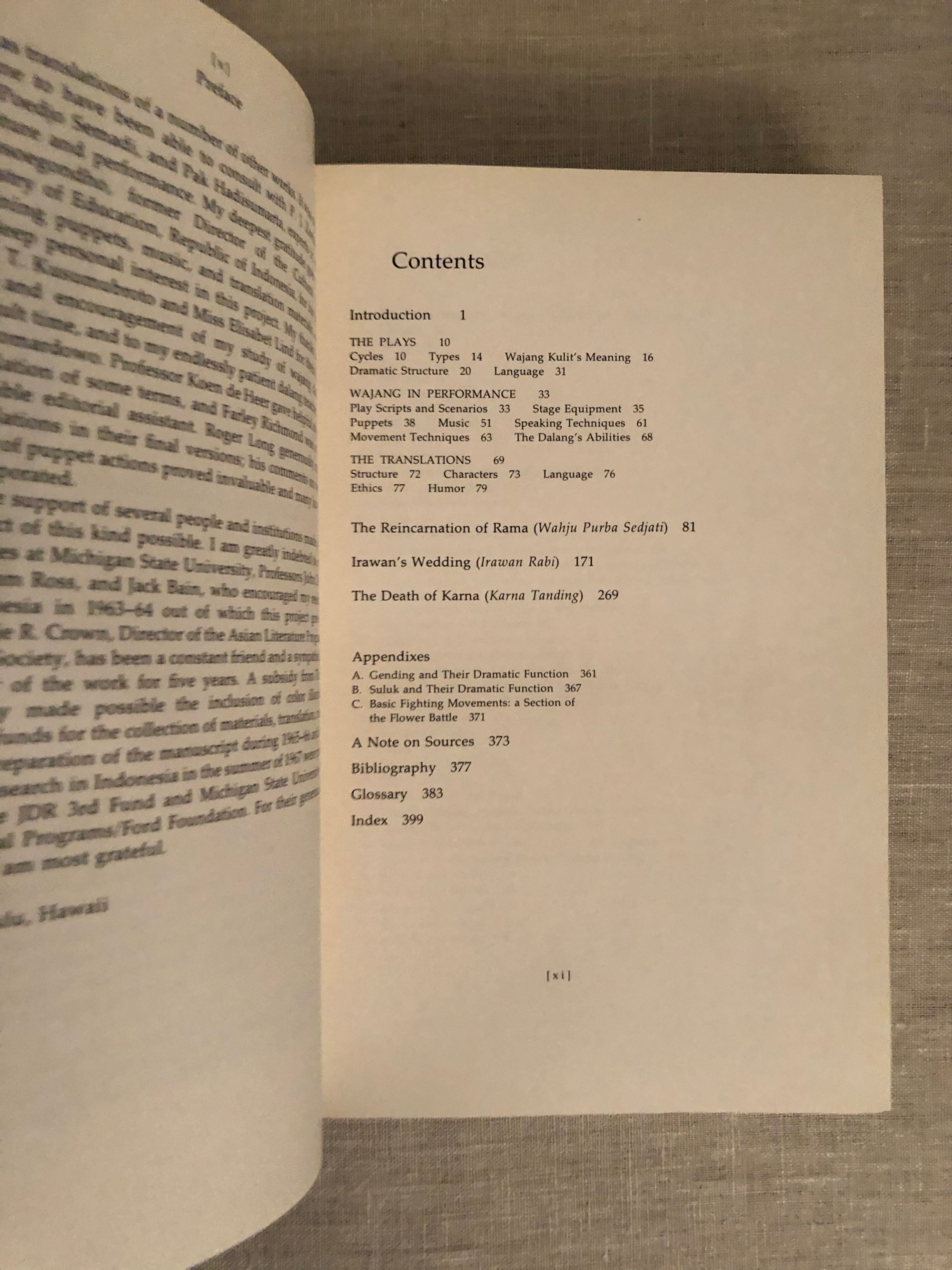Hardcover, in black cloth with design in blind to front board, title in gilt to spine, with dust jacket, now in mylar, 407 pp. The first general study (in English) of wajang kulit, or Indonesian shadow theater, as a theater art. Includes some color and black and white photography. Scripts in English for three productions: "The Incarnation of Rama," "Irawan's Wedding," and "The Death of Karna." Condition: Very Good with a Good dust jacket. The top of the text block is mildly foxed, however the interior of the book is remarkably bright and clean, appearing as new. The dust jacket is a bit scuffed, showing edgewear, and with small closed tears to corner and spine.