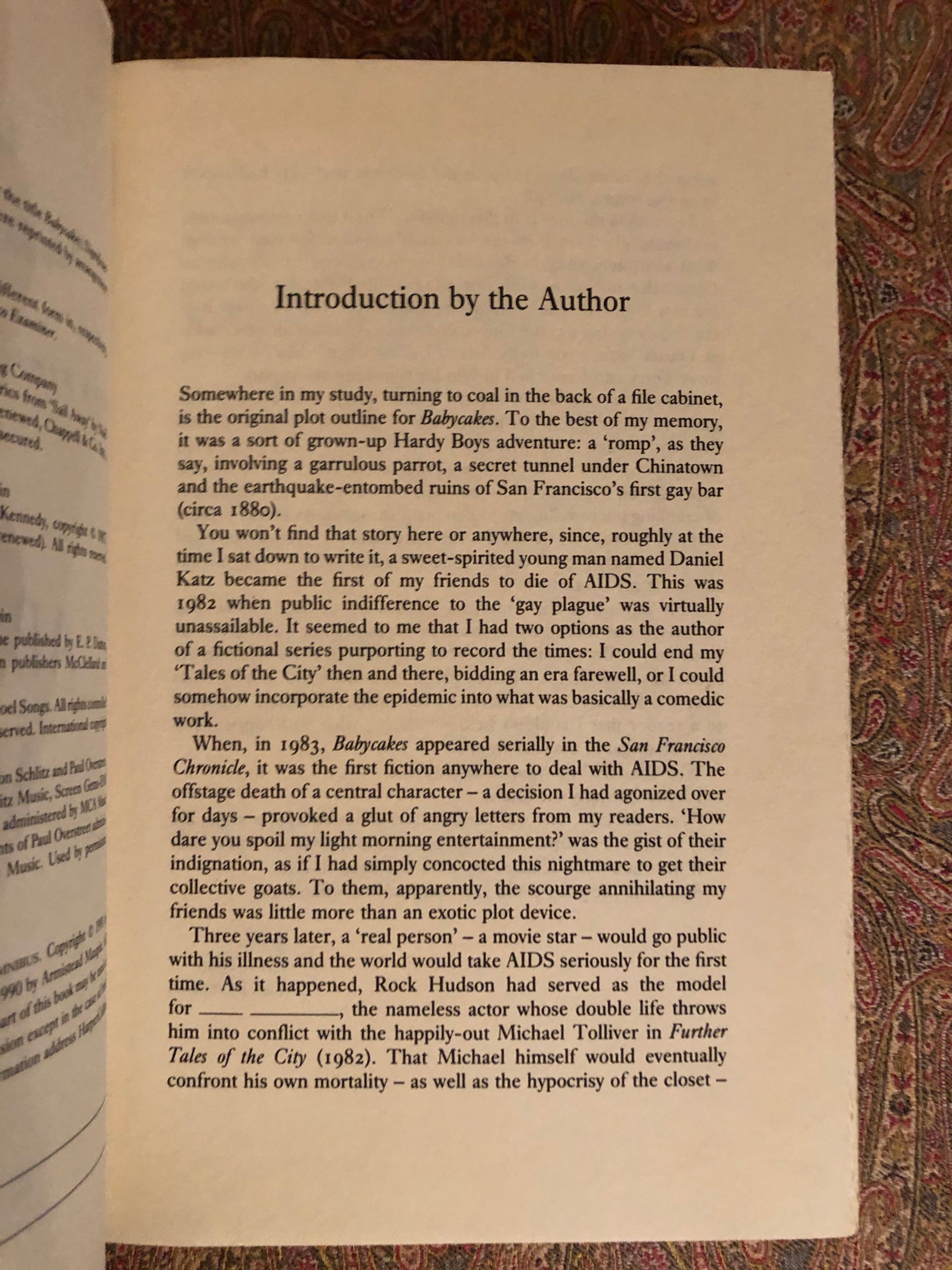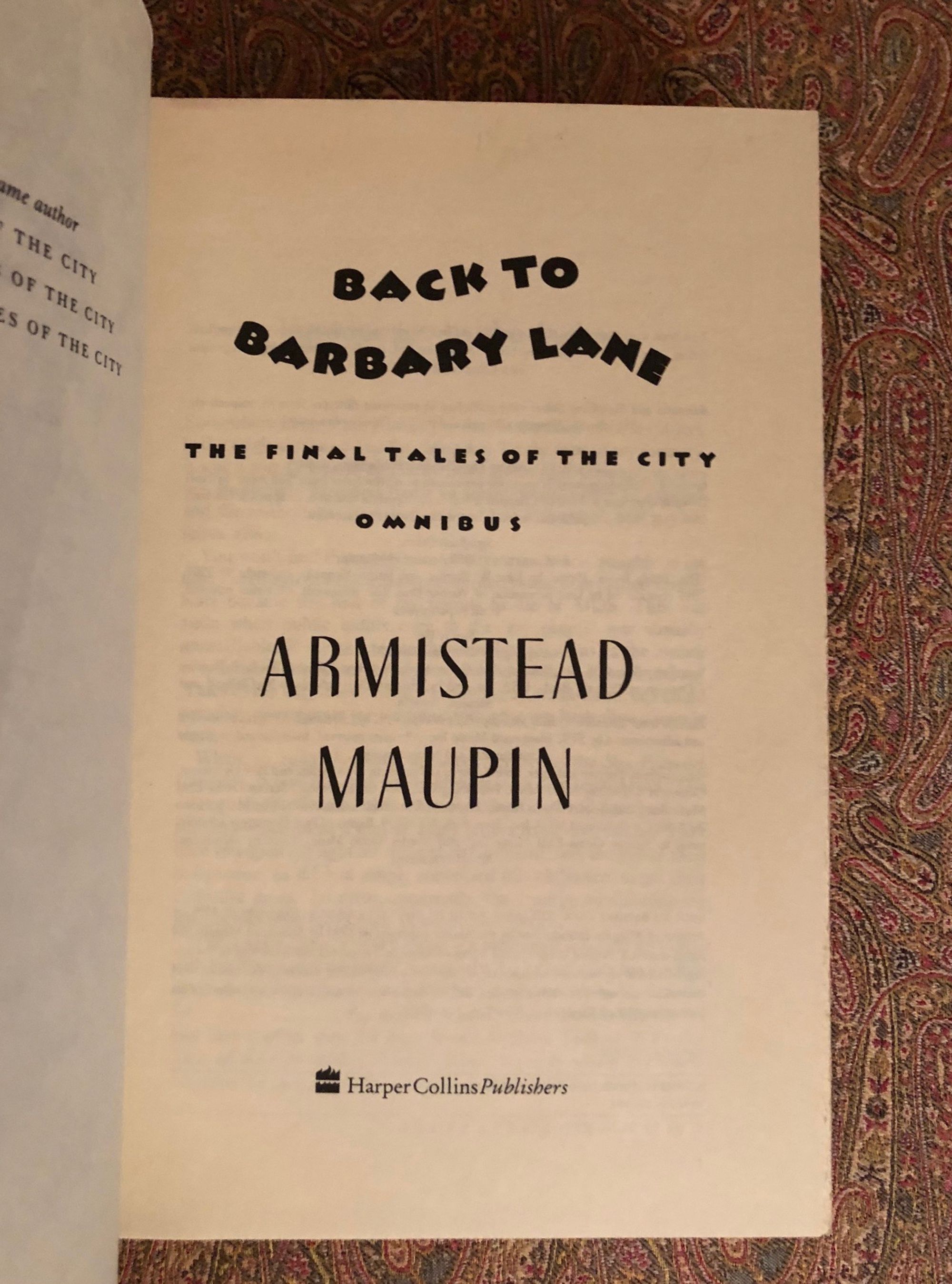 Hard cover in blue publisher's cloth with author's facsimile signature in silver to front board and titles in same to spine, in a d/j. 713pp. First edition Thus, first printing. Omnibus edition of the second trilogy of the Tales of the City series, set in San Francisco, by the author and gay activist Armistead Jones Maupin (1944 - ). Condition: Remainder mark to bottom of text block. Dust jacket shows some shelfwear and light marks to the back. Includes the "hilarious and heartbreaking" short stories first published in the San Francisco Chronicle, "Baby Cakes," "Significant Others," and " Sure of You," among other works describing the burgeoning AIDS crisis in that city beginning in the 1980's.