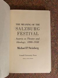 Hard Cover, 8vo, 253pp. Condition: Fine in Near Fine dust jacket. ** Survey of the importance of the Salzburg Festival of music and drama, and its place in society. Chapters on "The Ideology of the Baroque, 1860-1938", "Festival Planning and Cultural Planning", "Nationalist Cosmopolitanism", "German Culture and Austrian Kulturpolitik", "Allegory and Authority in the Work of Hugo von Hofmannsthal", "The Catholic Culture of the Austrian Jews, 1890-1938", "Festival Repertory and Its Contents, 1920-1943", and "Conclusion: Transformations of the Baroque". With appendix: "Festival Repertory, 1920-1944". OCLC 19975325.