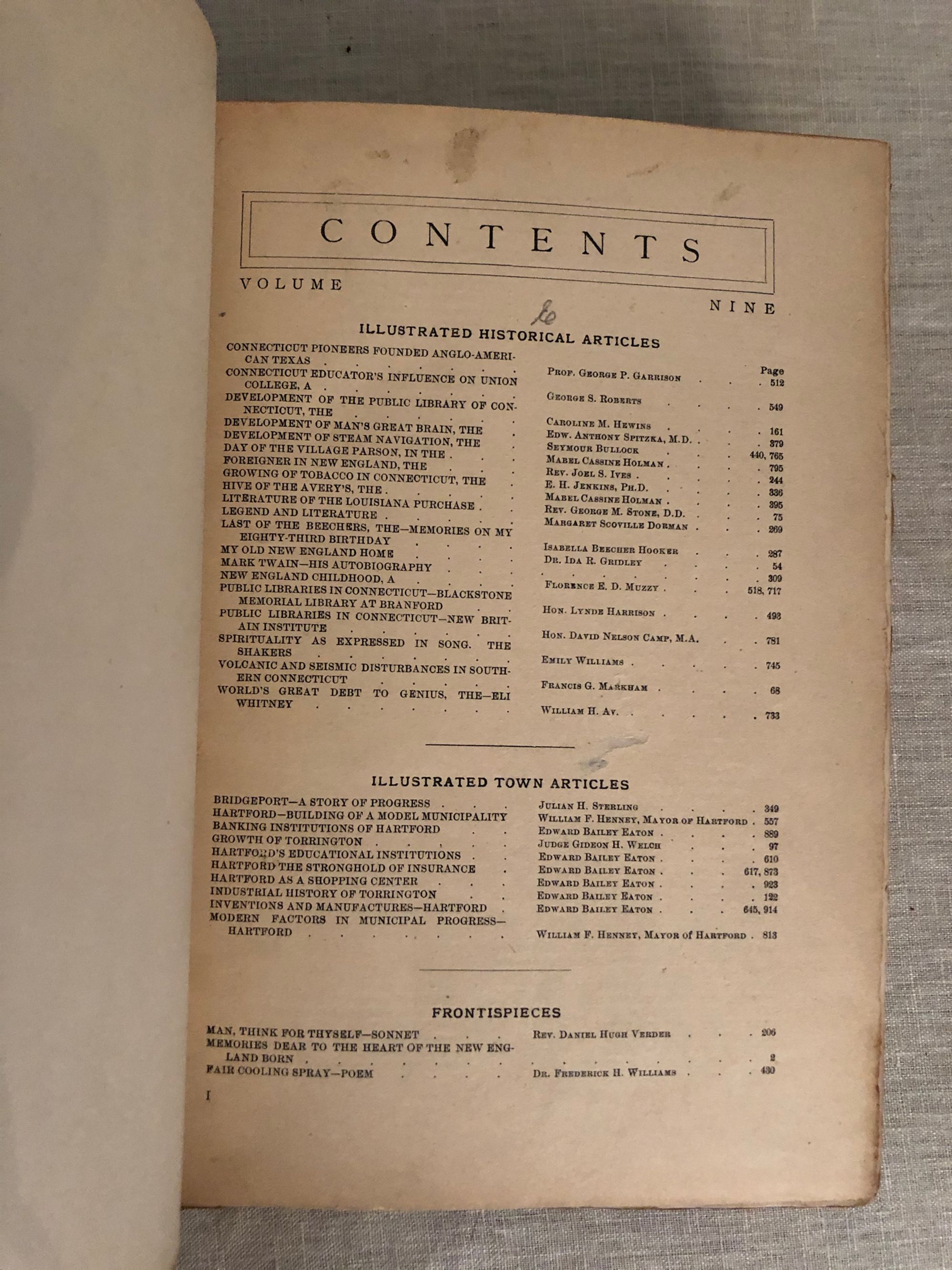 932pp. Handsomely bound volume of The Connecticut Magazine, with various articles on Connecticut history and towns, with stories & poetry too. Three-quarter leather bound. Condition: Very Good. Light rubbing to covers. Scarce.