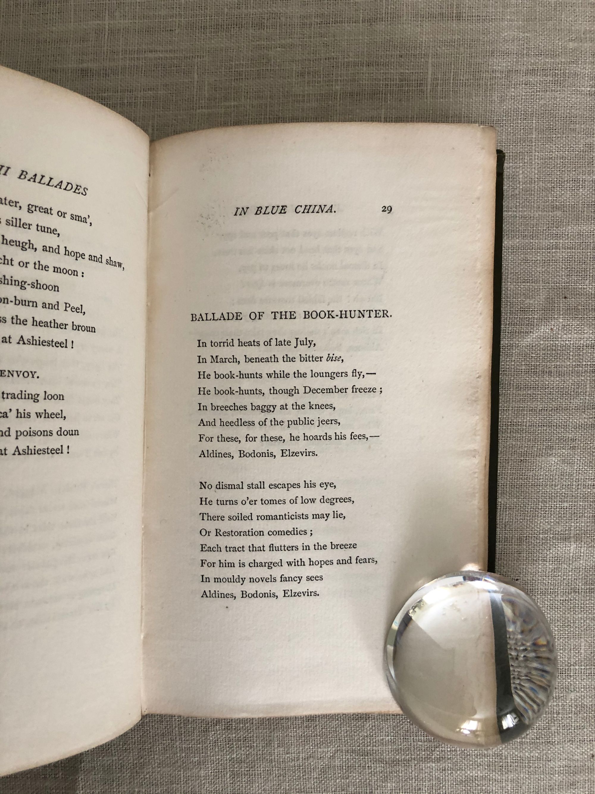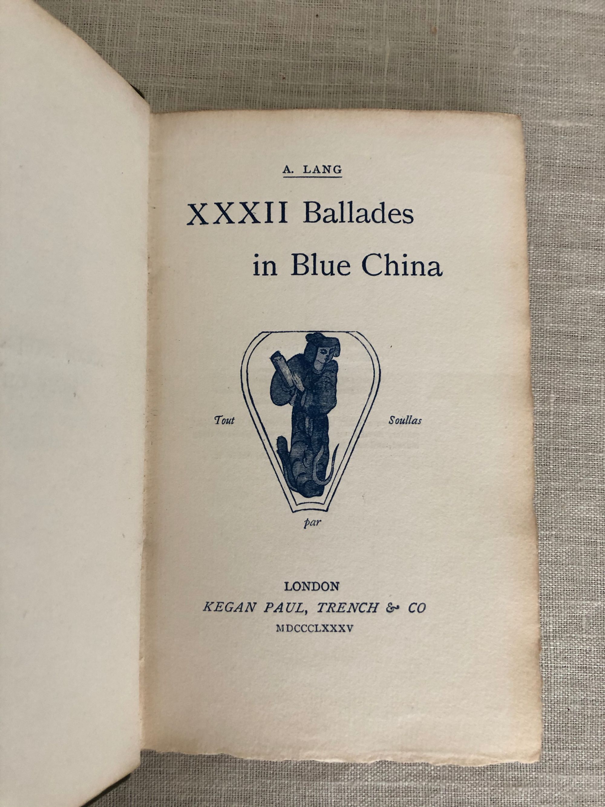 Reprint. Hard cover, 16mo.( 4 x 6 ½ inches) in green cloth gilt, 112 pp., First Edition Thus. (A re-issue of the 1880 edition, with amendments.) Printed at the Chiswick Press. The front board with title blocked in gilt, and pictorial "Arbor Scienti Arbor Vitae" logo to lower right edge. Boards beveled, top edge gilt, with other text block edges untrimmed. The title page in blue ink, featuring an attractive chinoiserie decoration. CONDITION: Very Good.Minus. Showing some edge wear to boards, and both end of spine. There is bubbling to both boards. Some darkening of endpapers, however, remainder of contents are crisp and clean.**This collection of poetry by the prolific Scots writer Andrew Lang (1844-1912) was first published in 1880. Lang was a contemporary and friend of Robert Louis Stevenson. He was educated in Edinburgh and St. Andrews before matriculating at Bailliol College, Oxford. He was later a fellow at Merton College, Oxford. Although he published works on such diverse subjects as Scottish history and anthropology, he is best remembered, however, as the collector of fairytales and folklore, brought out as Andrew Lang's "Fairy Books of Many Colours," the twelve books of which secured his place in the pantheon of juvenile literature.