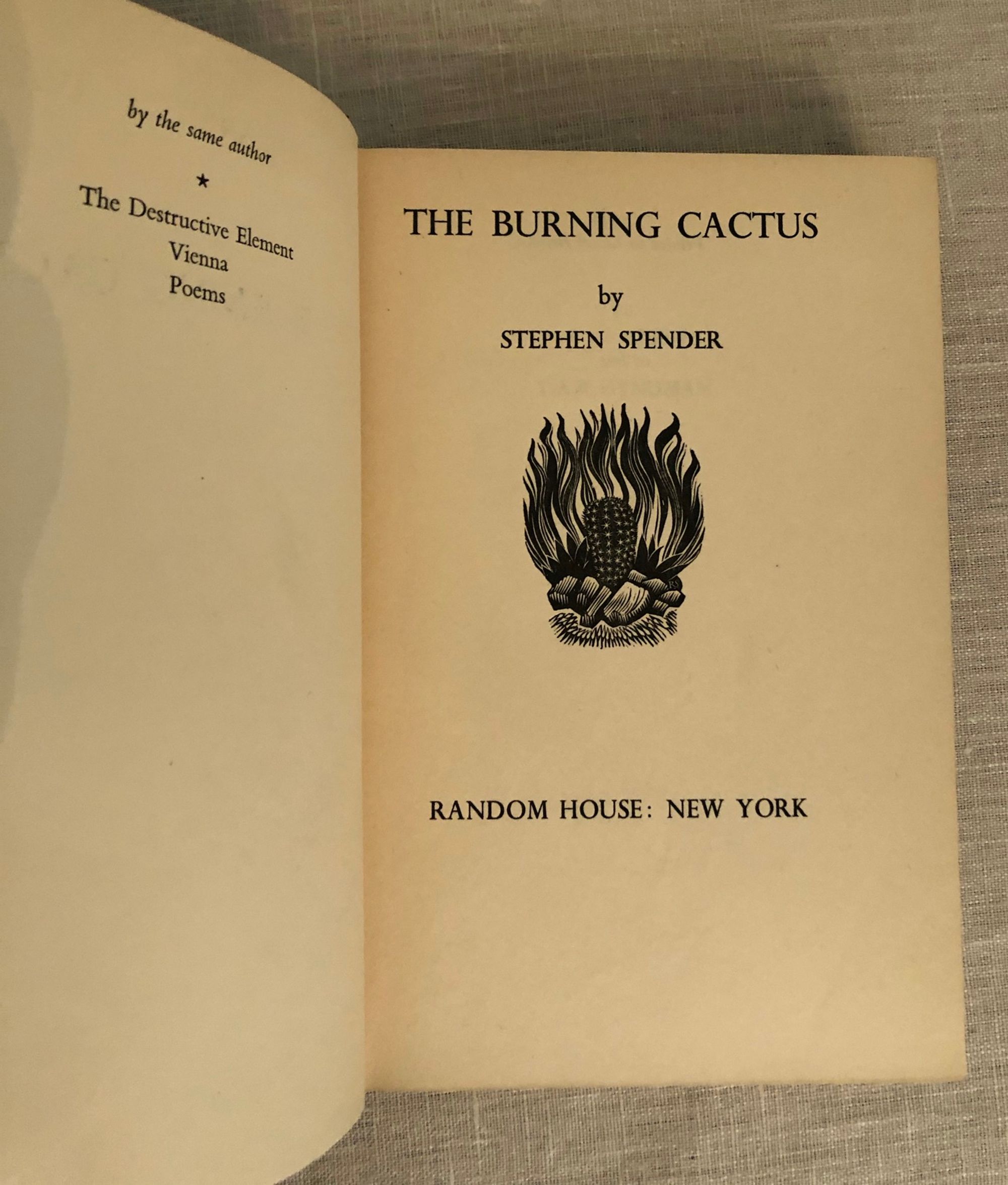Spender, StephenThe Burning CactusPublished by Random House, New York, 1936.Assumed First Edition