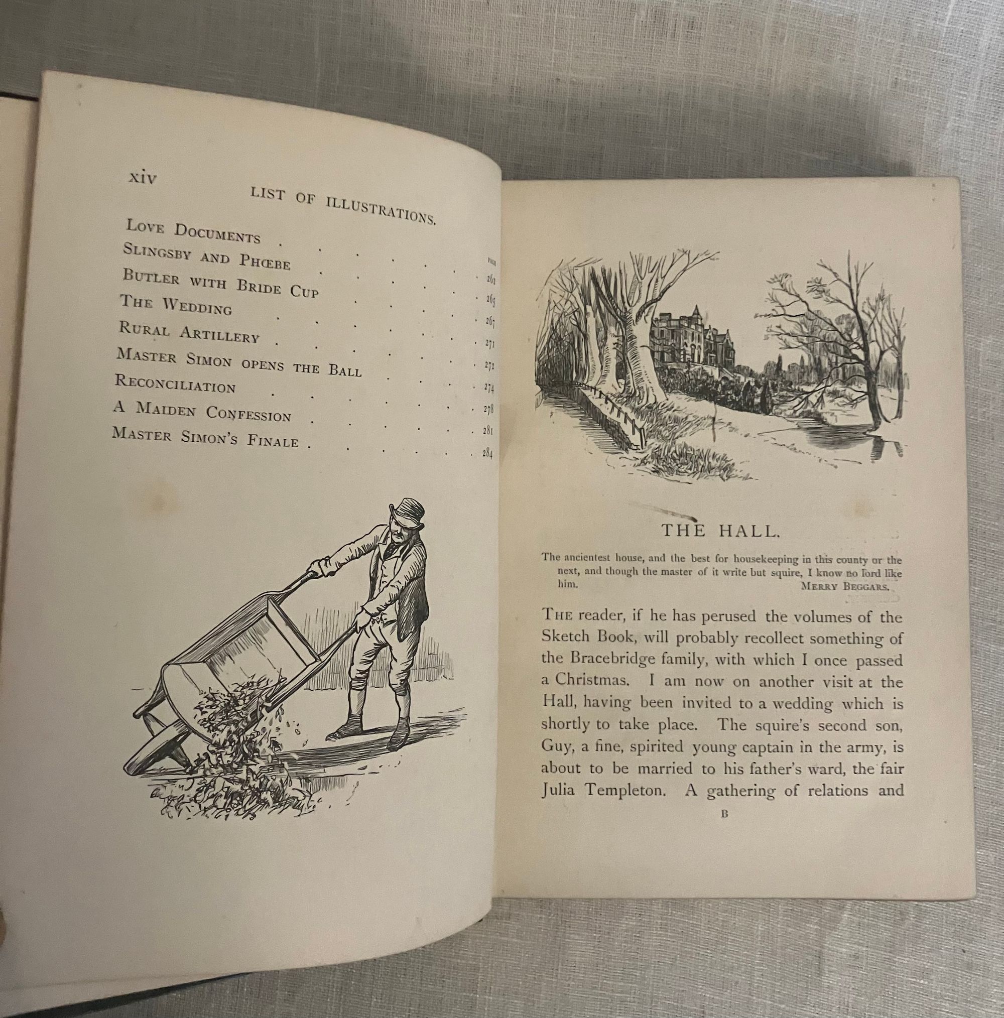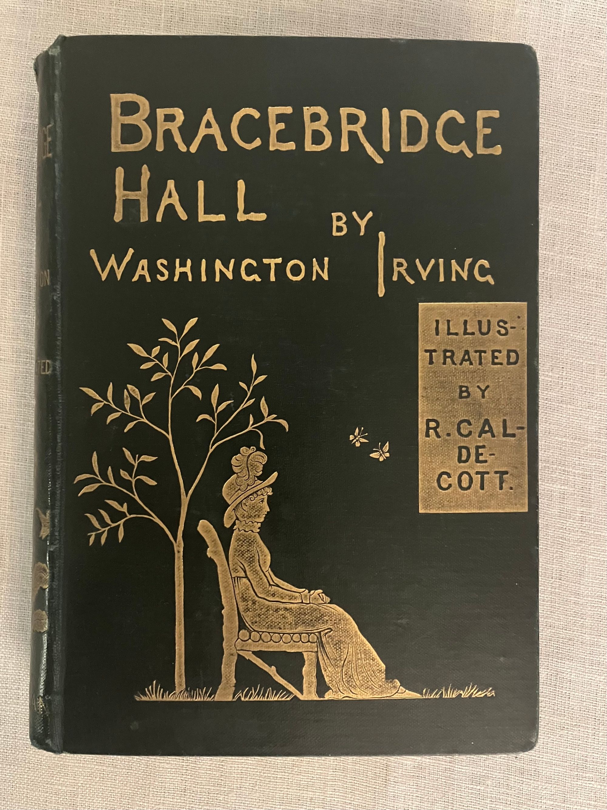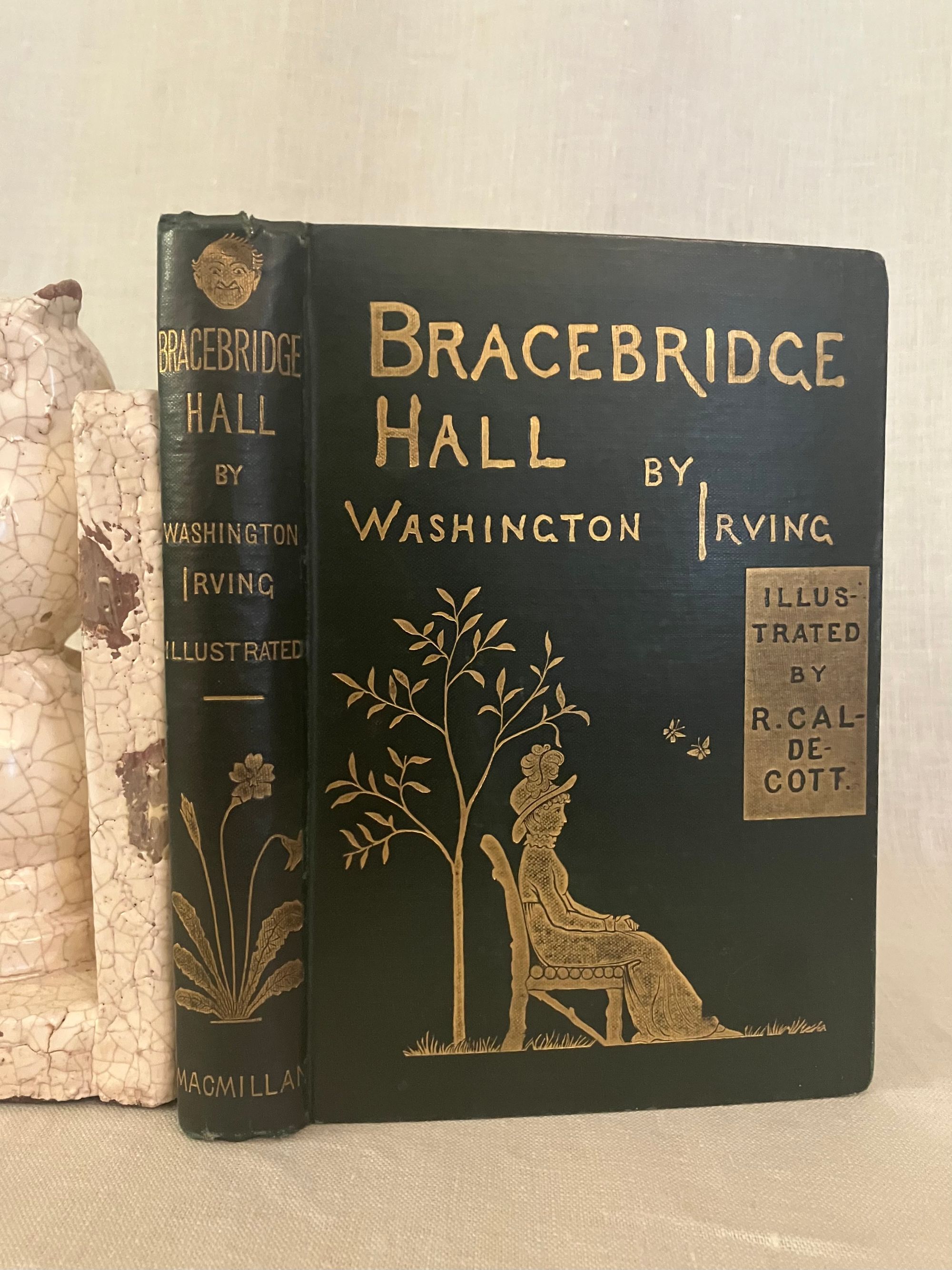 First Edition Thus. Hard cover, Crown 8vo., in dark green publisher's cloth with gilt decoration and titles to front board and spine, 284 pp. plus 4 pp. reviews and publisher's ads. No dust jacket. Frontispiece with tissue guard. Printed by R & R. Clark, Edinburgh. CONDITION: Very Good. Hinges are partly cracked. Corners are gently rubbed, and there is a small closed tear in cloth at head of spine. Interior is clean, lightly age-toned with no obvious foxing. A pictorial bookplate of a former owner is upon the front endpaper. Small bookbinder's label on rear endpaper: "Bound by Burn and Co., London." **American AUTHOR (1783-1859) Washington Irving's "Bracebridge Hall" was a series of comic sketches written while the author was visiting Birmingham, England and originally published as "The Sketchbook of Geoffrey Crayon" in 1822.* ILLUSTRATOR Randolf Caldecott (1846-1886) is acknowledged in the Preface as the "same able pencil" to have illustrated MacMillan's re-publication of Irving's "Old Christmas" the year prior. Gift inscription in old ink dated 1879. Small bookbinder's label on rear pastedown: "Bound by Burn and Co., London."
