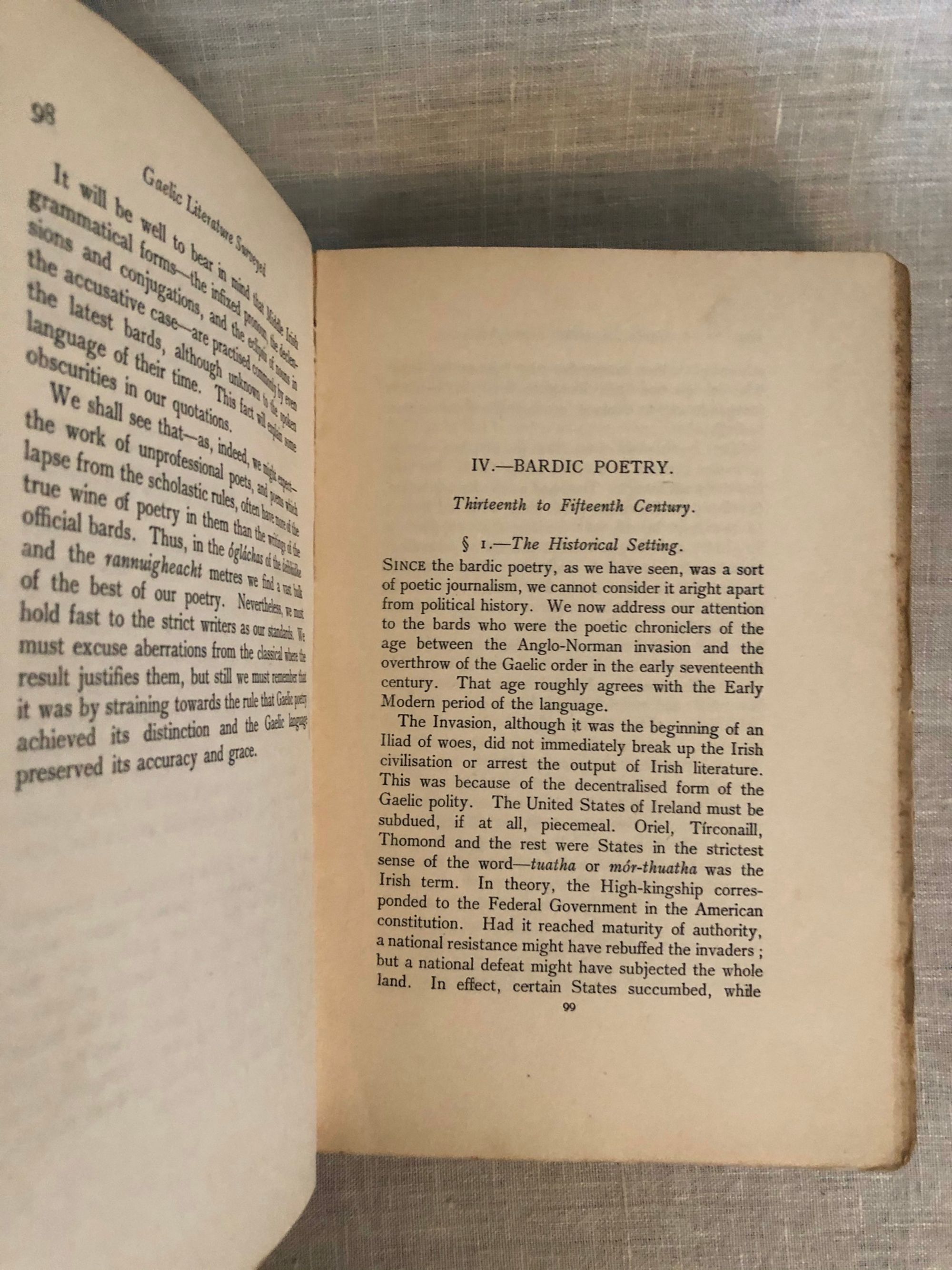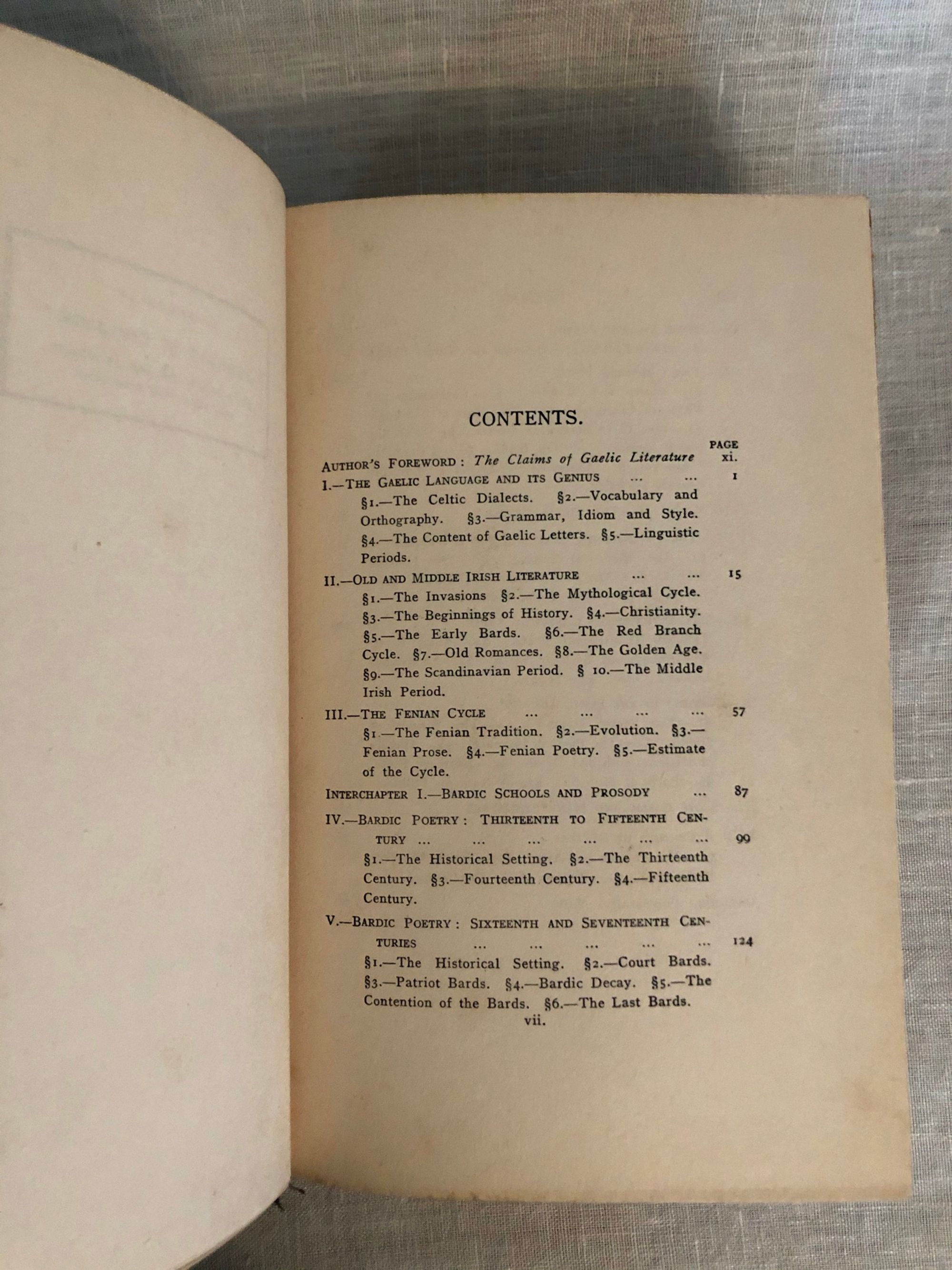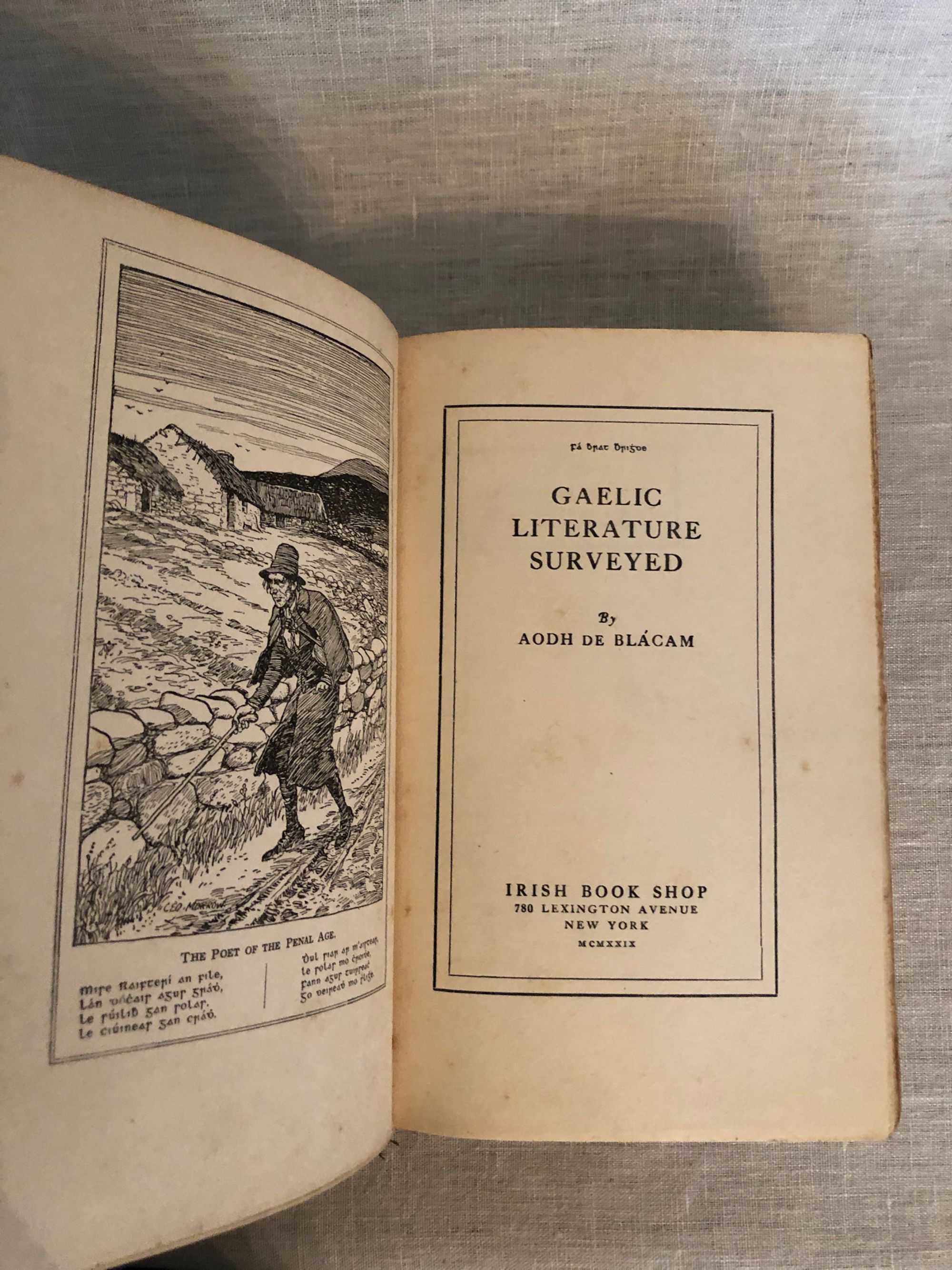 Hard Cover. 8vo. 390pp. Condition: About Very Good, with some wear to the edges of the covers, and some marks to the boards. ** Survey of Irish literature, starting with a description of the origins of the language and including chapters: "Old and Middle Irish Literature", "The Fenian Cycle", "Bardic Poetry", "Other Syllabic Poetry", "Early Modern Prose", "The Seventeenth Century", "Writers of the Penal Age", "Scots Gaelic and Manx Literature", and "A Century of Revival". Harold Saunders Blackham (1891 - 1951) was born in London to an English mother and an Ulster Ptorestant father. He became interested in the Irish language and the Irish nationalist movement, and took the Irish name Aodh Sandrach de Blácam. He became involved in the Gaelic League, which worked to promote the Irish language in Ireland and worldwide.