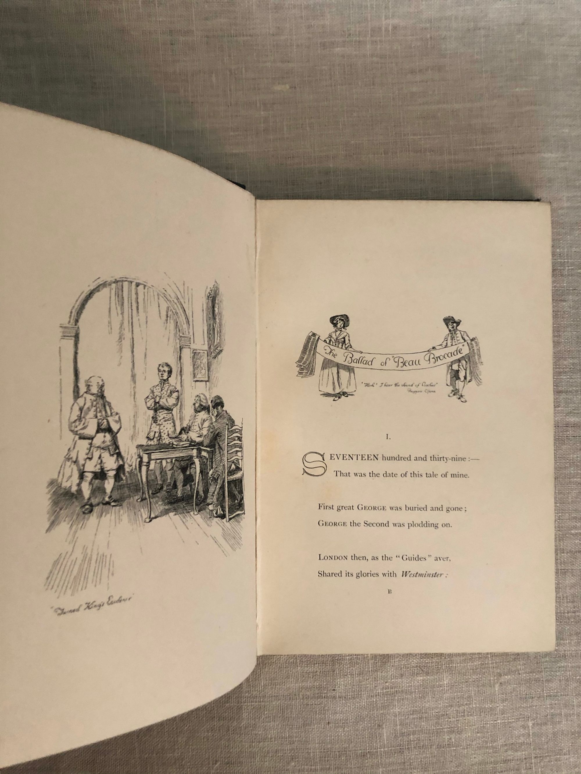 First edition. Hard cover, Crown 8vo., in publisher's original "electric blue" cloth with gilt pictorial decoration, 89 pp., lacking dust jacket. All edges gilt. Printed at the Chiswick Press, London. **CONDITION: Very Good Plus. Gilt design remaining bright, spine slightly darkened. Very light shelf wear to corners and edges. Inside, light scattered foxing affects margins of frontispiece only. Tissue guard on frontispiece lacking. Most pages are bright. Both hinges slightly cracked but holding firm. Gift inscription in old ink from Christmas 1892 on half-title. Pictorial bookplate to front endpaper. POET HENRY AUSTIN DOBSON (1840-1921) did not begin his poetry career until the 1860's, but made a splash with critics, numbering Trollope and George Eliot among his admirers. His use of French verse forms struck a chord. He would go on to write a number of well-regarded biographies of English artists and writers in the 1880's. **This would have been an early display of the ILLUSTRATOR HUGH THOMSON's (1860-1920) "Cranford School" of lavishly gilt, gift book design, beginning with MacMillan's reissue of Mrs. Gaskell's "Cranford" the year prior. He arrived in London after working at publishers Marcus Ward and Company, Belfast where he trained under the artist John Vinycomb, M.R.I.A. He would go on to illustrate over 200 books, among them works by Dickens, Jane Austen and George Eliot, Thackeray and J.M. Barrie. Literature: Francis Edwin Murray (1900) p.13, No. X.