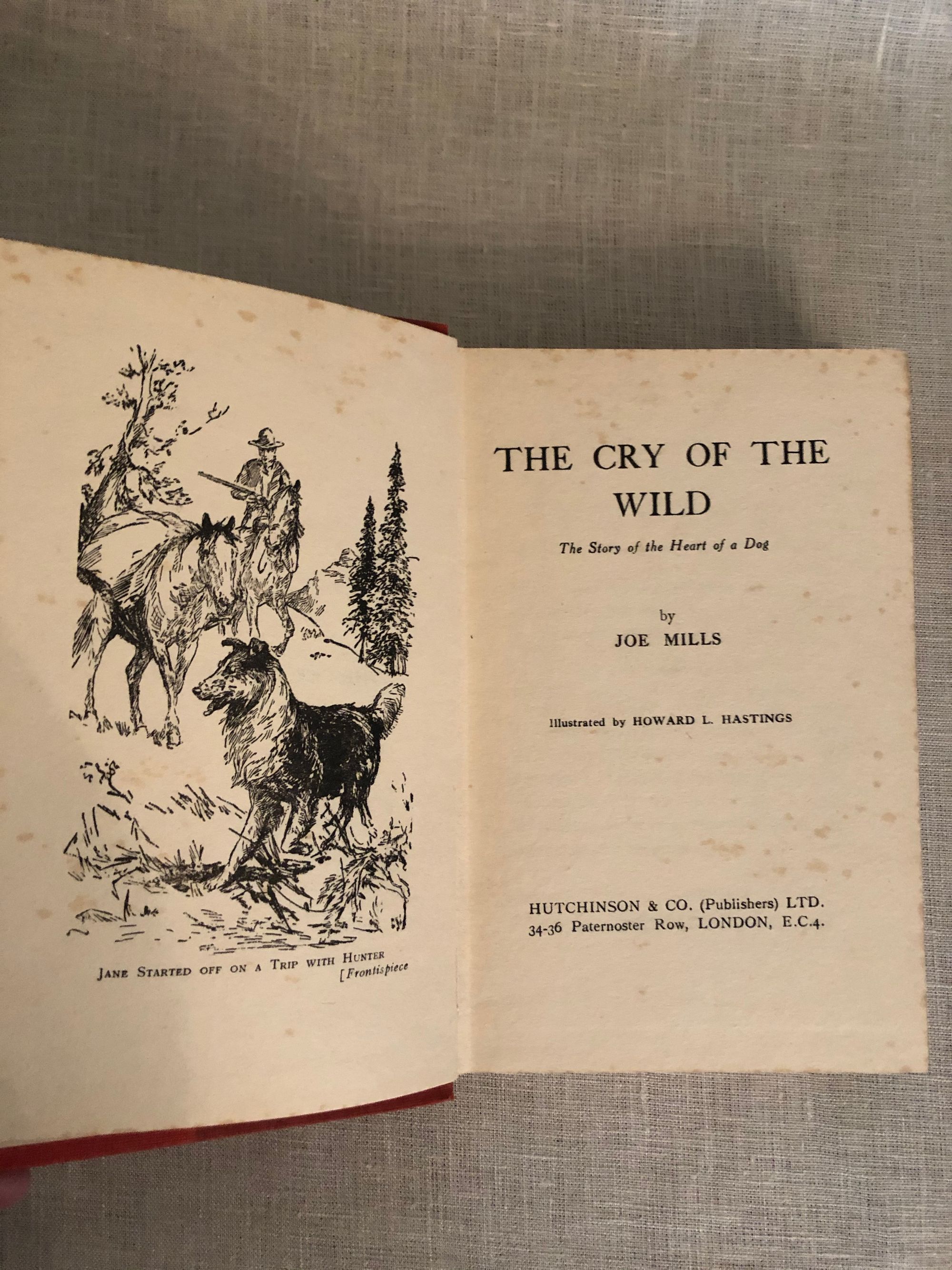 (Published 1928;First English Edition.)Printed at The Gainsborough Press, St. Albans. Hard cover in red cloth, 8 vo., with titles in black, 223 pp. There are 12 black and white illustrations, including the frontispiece. "Jim Hunter searches in the Montana wilderness for the mixed breed female dog which he hand-raised, and for the wily lone wolf that has lured her away to be his mate." An exciting adventure in the American West featuring lots of grizzlies, coyotes and wolves. The American First Edition was in 1926 and had an alternative title including [The Comeback]. Information about author Joe Mills (1880- 1935) comes to us from his obituary published in the Greeley Daily Tribune on 3 Oct. 1935. He was a famous Boulder, Colorado author and naturalist, and the brother of Enos Mills. Together the brothers were "instrumental in the designation of the Estes Park region to become Rocky Mountain National Park." Joe Mills was also a winning football coach, golfer and hotelier. He attended Colorado State College of Agriculture and Mechanic Arts at Fort Collins, CO. He was also the author of A Mountain Boyhood (1926.) Condition: Good. Foxing throughout. Spine sunned, one bumped corner. Owners signatures ffep. Binding is firm.