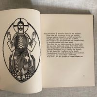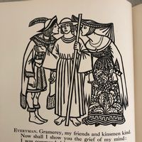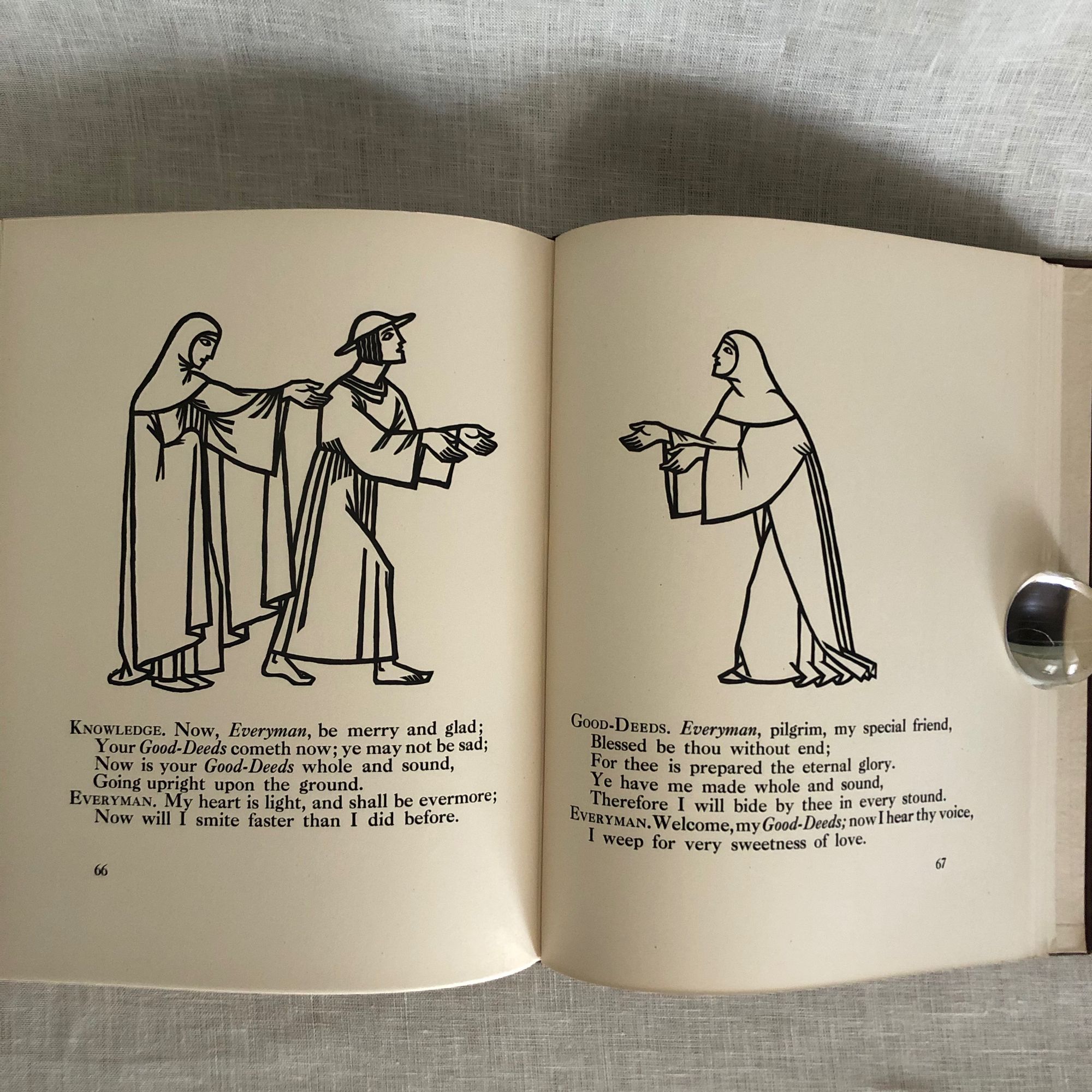 Printed at the Westminster Press, bound at the Temple Press. Hard cover, quarto in brown cloth with gilt titles, 100pp. Condition: Very Good. Striking woodblock prints by Thomas Derrick illustrate the text taken from the Everyman's Library issue of Everyman (no. 381) Rhys has translated the original fifteenth century morality play from the Middle English. He was the founder and editor of J.M. Dent's Everyman's Library Series of nearly one thousand, affordable, titles. Here the art does the talking. Thomas Derrick(1885-1954) was an English artist trained at the Royal Academy of Art employed primarily in book illustration. Condition: Very Good. A couple of gently bumped corners. Otherwise clean and bright.