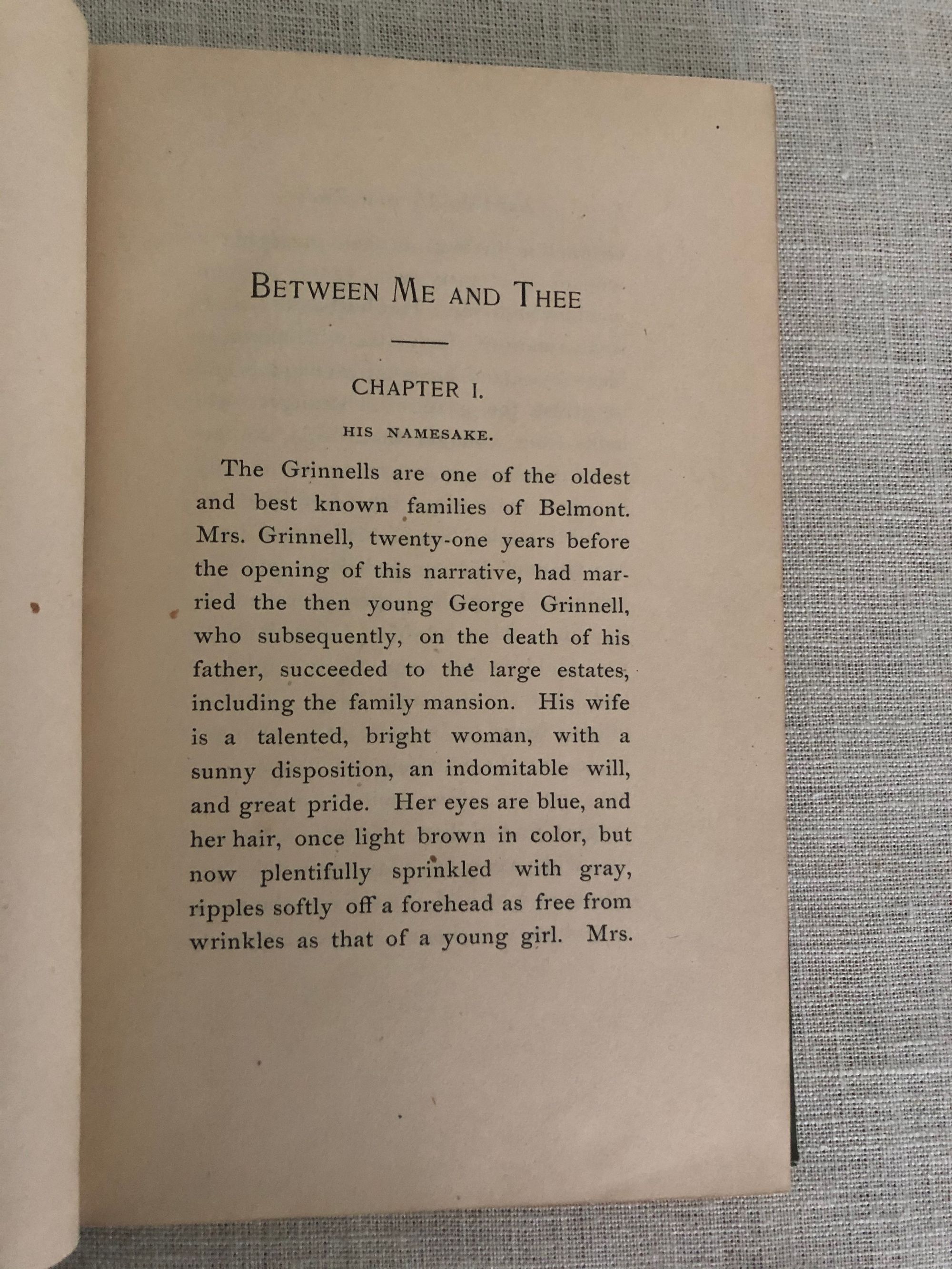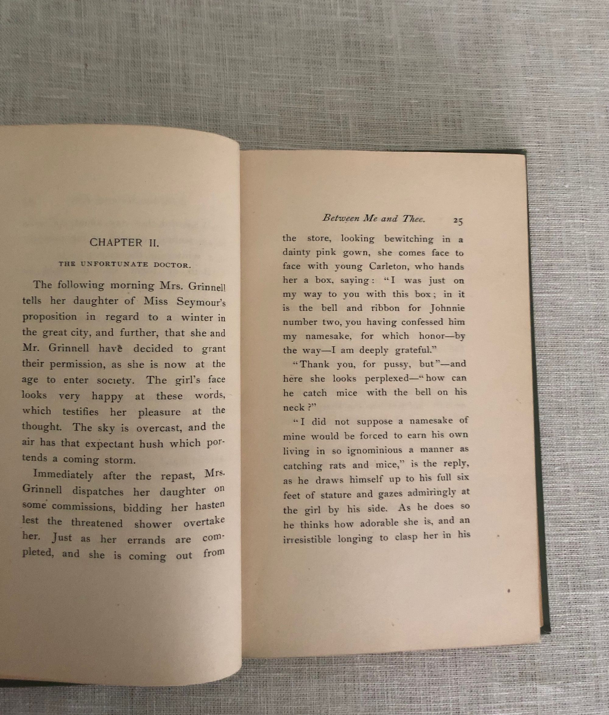 Hard cover, 12mo., in green cloth with pictorial title design in the art nouveau style lettered to front and spine in black, 267 pp. A quaint romance set around Chicago. Condition: Good. Some rubbing to exterior edges, and a dent across front board. Small closed tear to half title. Contents age toned. Otherwise, it appears clean and fresh.