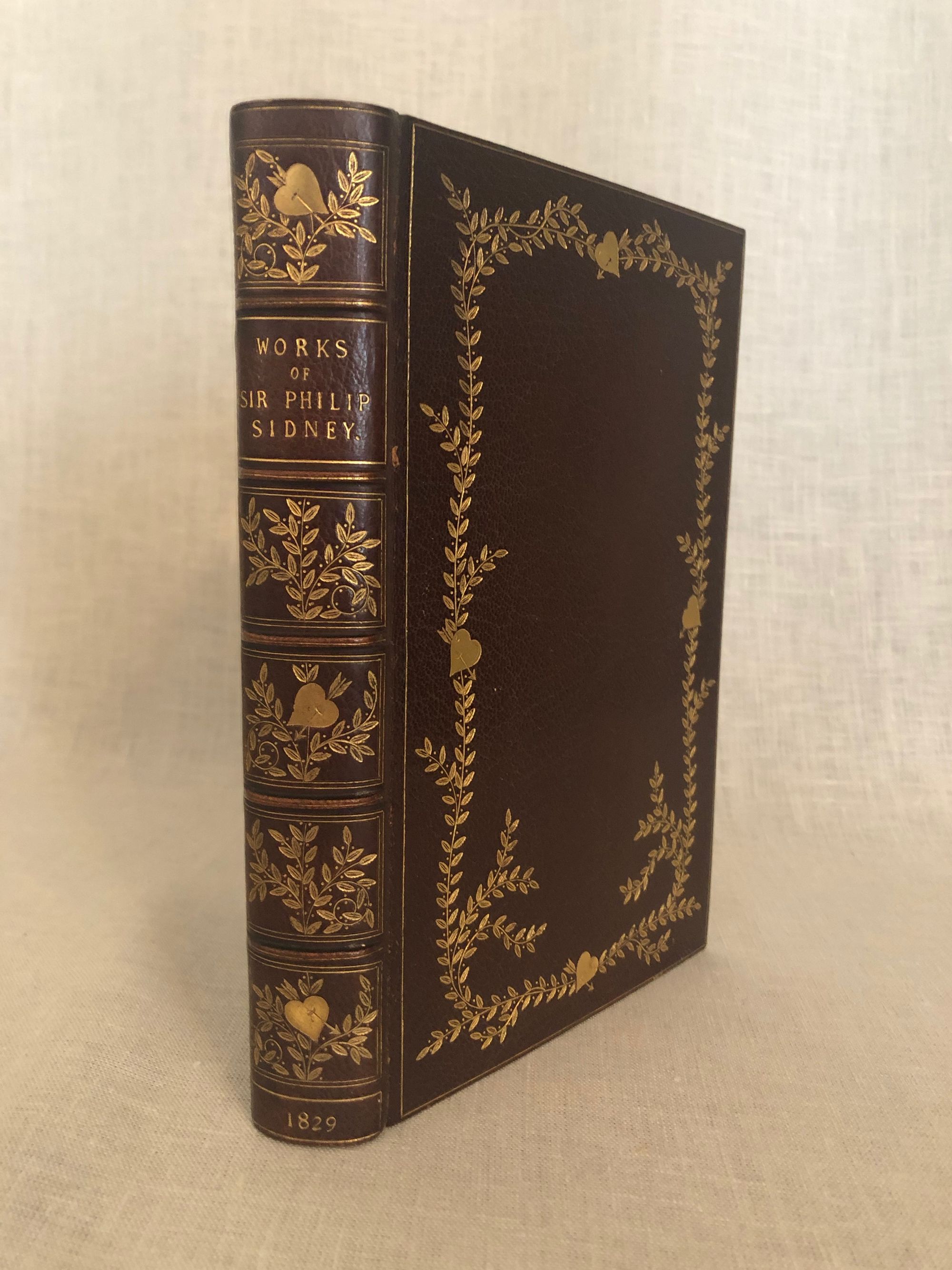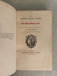 Hard cover, 8vo. (measuring 5 x 7¾ inches) in a fine Arts and Crafts style re-binding, signed "Hatchards, 187 Piccadilly" on front turn-in. Full brown crushed morocco with gilt decoration to both boards, featuring a design of twining foliage, hearts shot through with arrows and gilt rule. The spine has six raised bands with title, date of publication and repeat of heart and foliage design within ruled boxes. Top edge is gilt. The endpapers have a watercolor effect, an attractive engraved and monogrammed bookplate, as well as additional gilt foliage sprays appearing on the turn-ins. CONDITION: Very Good Plus, or better. Minor wear to outer joints, (more so to the front). Very minor foxing appears on a few pages. One minor closed tear to the fore-edge of p.10. Offset from turn-ins to endpapers. Collation: (6), (vii), 329, (5) pp. The author, SIR PHILIP SIDNEY, KNIGHT (1554-1586), is perhaps best known as an Elizabethan poet, whose love sonnets have been compared favorably to those by Shakespeare. He was also a gifted scholar of languages, which helped him immeasurably in his diplomatic postings in his early twenties. Sidney famously advised Queen Elizabeth I against marriage to the Count of Anjou, warning her that a man, and a Catholic at that, would diminish her power as a Protestant monarch. This letter, as well as others, are also included in the contents Overall, this is a very handsome book about a remarkably gifted author, diplomat and soldier who accomplished so much in a brief career. Watson Vol. 1, 1047.