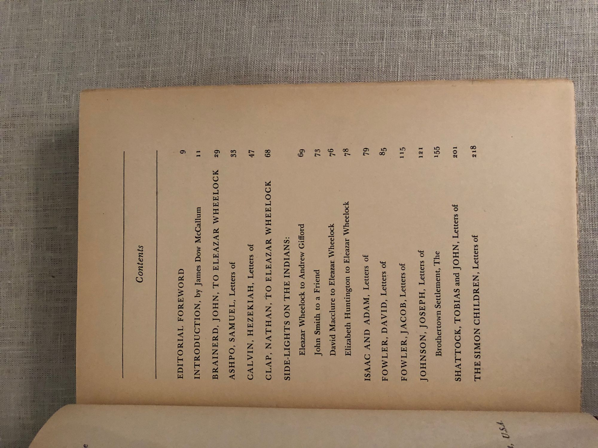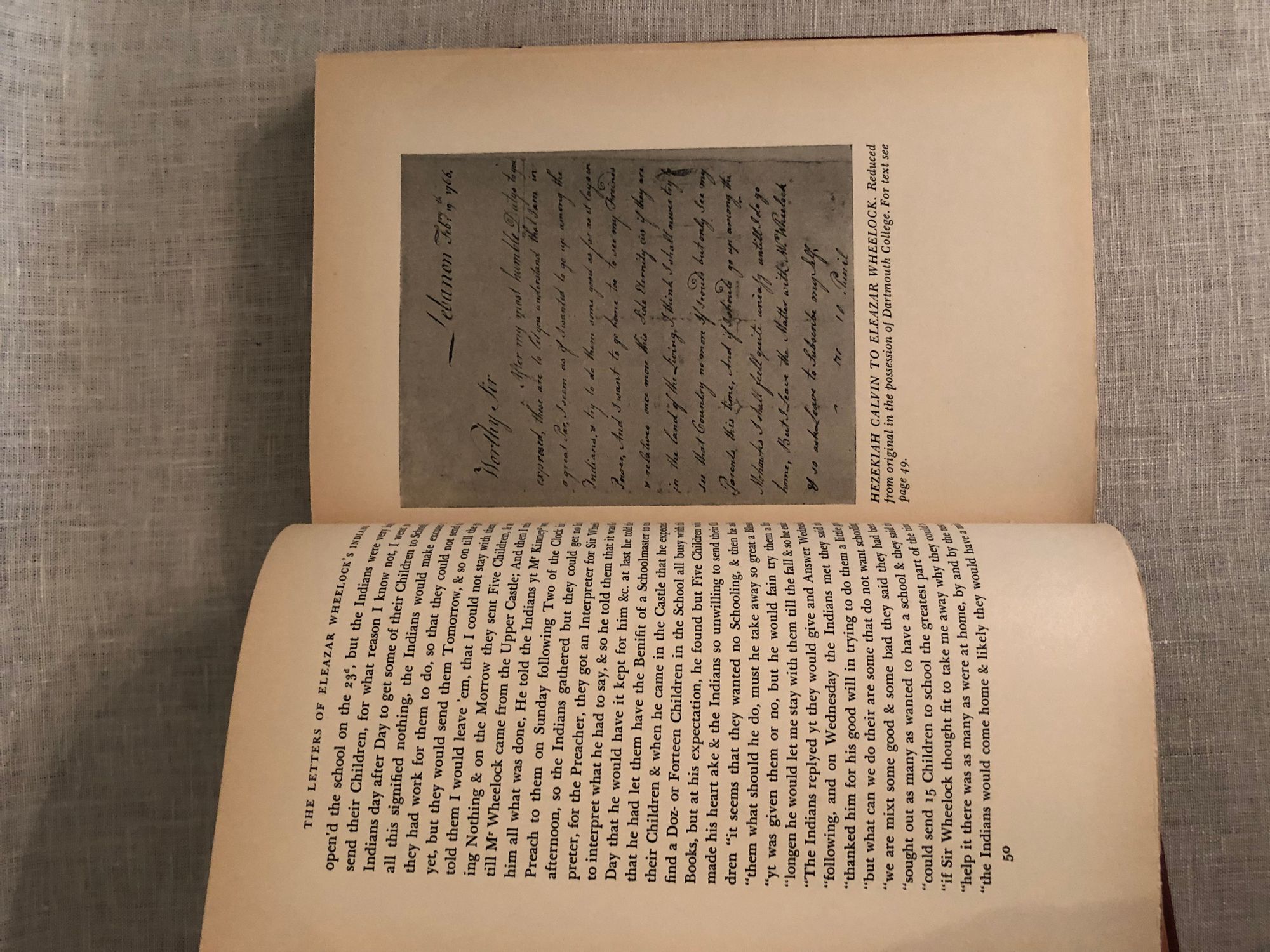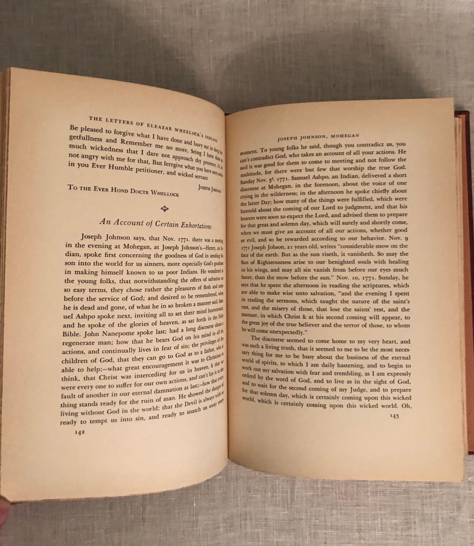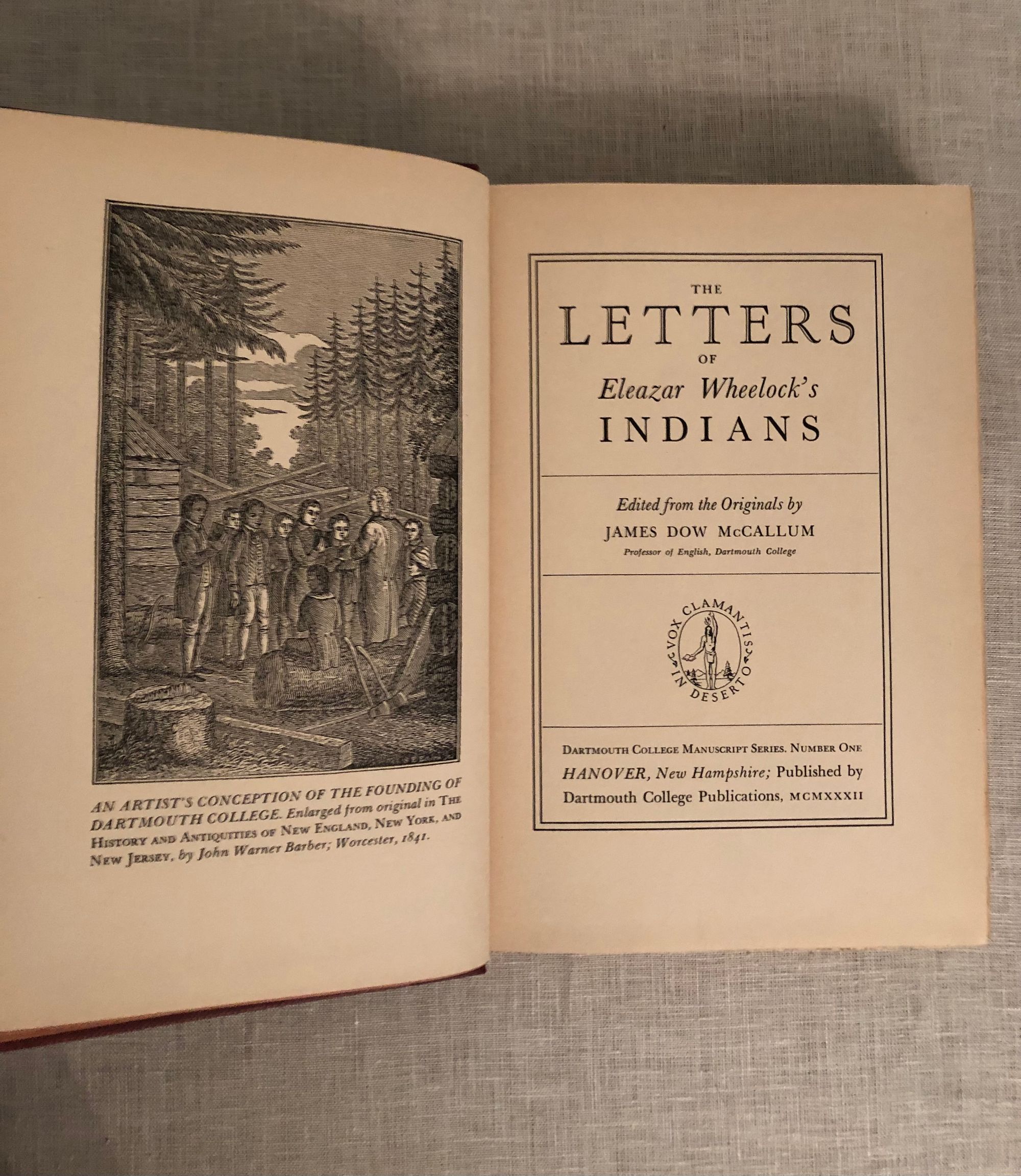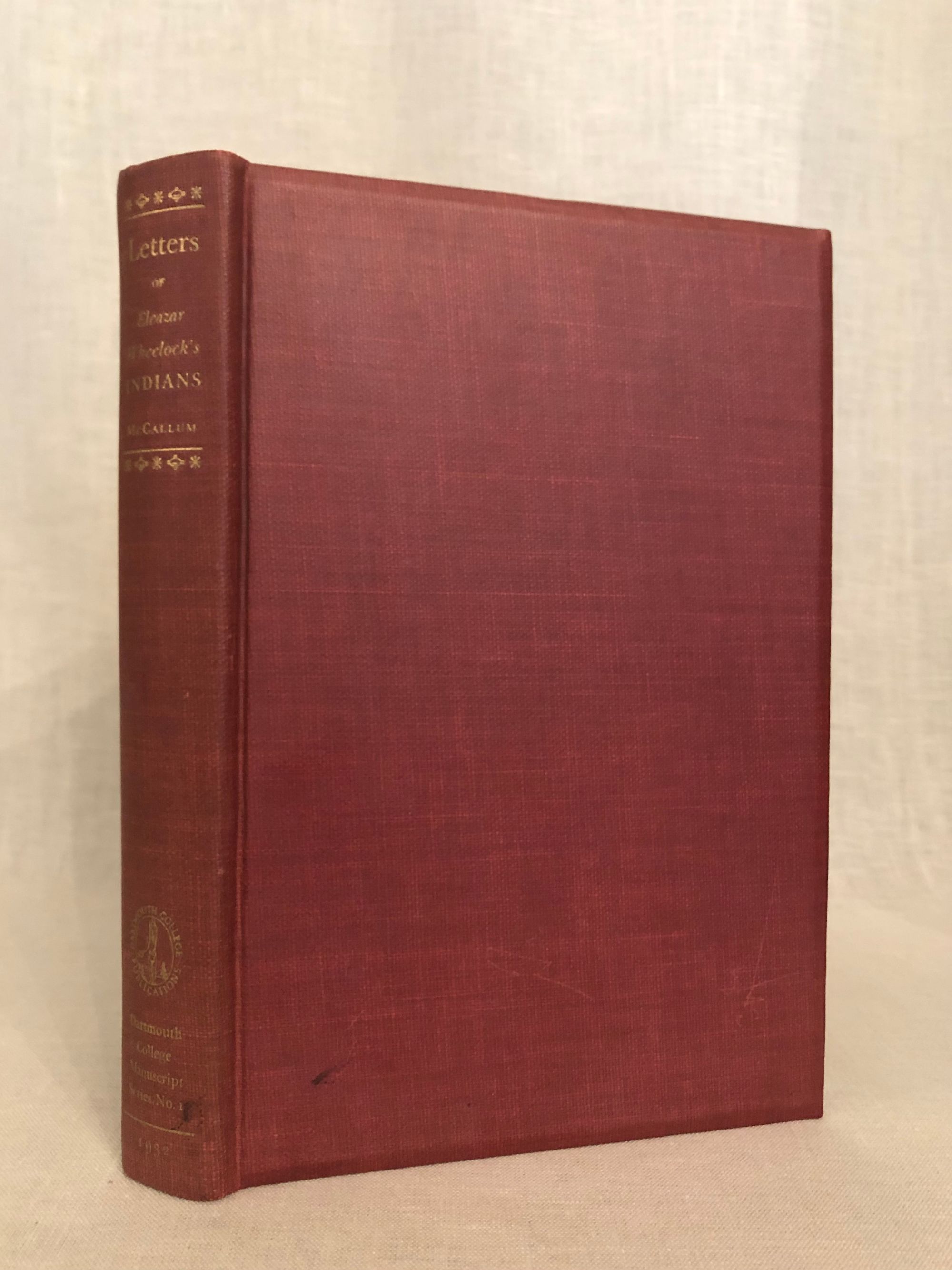 Printed by Stephen Daye Press, Brattleboro Vermont. Hard cover, 8vo., in terracotta cloth over bevelled edged boards, pages untrimmed, 327 pp. Condition: Very Good Plus with only a few marks to boards and moderate age-toning to pages. Otherwise tight. Some pages unopened. Concerns the history of Eleazar Wheelock's (1711-1779) involvement in the founding of Moor's Charity School of Lebanon, Connecticut, and New Hampshire's Dartmouth College. The publication of this variety of original letters enlighten us to contemporaneous attitudes toward those indigenous people by their European benefactors, and show the lengths to which Wheelock went to secure funding for these enterprises, upon being ejected from the tent, as it were, of the Great Awakening, for over-zealous proselytizing.