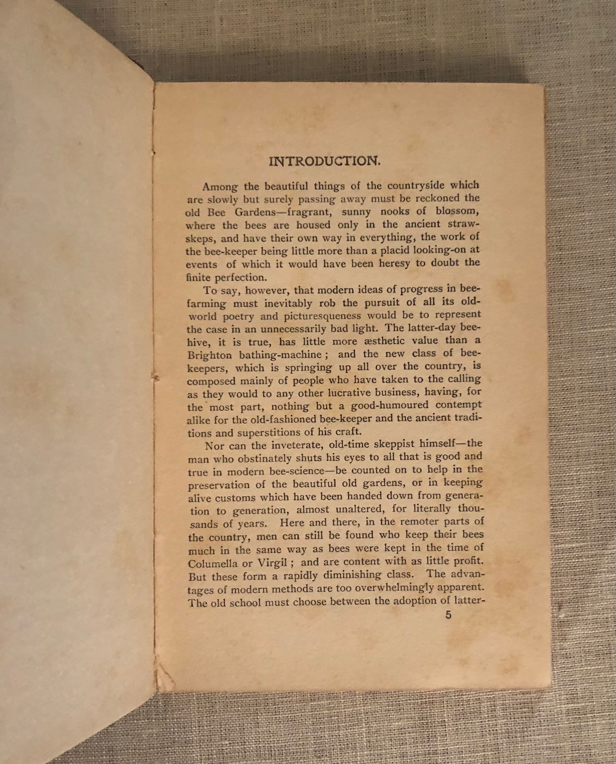 Hard cover, 16mo, (measuring 5 x 7 1/2 inches), in apricot colored cloth, titles in gilt to front board and spine, 64pp. Condition: Very Good Minus. Slight soiling to covers, one dent at bottom edge. Mild foxing throughout. Blindstamped London bookshop stamp to ffep. Signs of reglueing at back hinge. **Considered a classic work on beekeeping by the multi-talented vicar, naturalist and author, Tickner Edwardes (1865-1944) of Burpham, West Sussex, England. He was also a Fellow of the Entomological Society, London. The book contains a series of essays, ripe with lyrical descriptions, on the art of bee-keeping in the persona of "The Bee-Master" of Warrilow, a quaint English village on the Sussex Downs. This was the first of this material in book form, having been adapted from items previously printed in the Pall Mall Gazette. The photographs look like something out of a Merchant Ivory production. Edwardes also wrote a novel, Tansy, which became a silent film. The author's bee house is listed in the History of Beekeeping in English Gardens, The Gardens Trust, 2000. A scarce book.