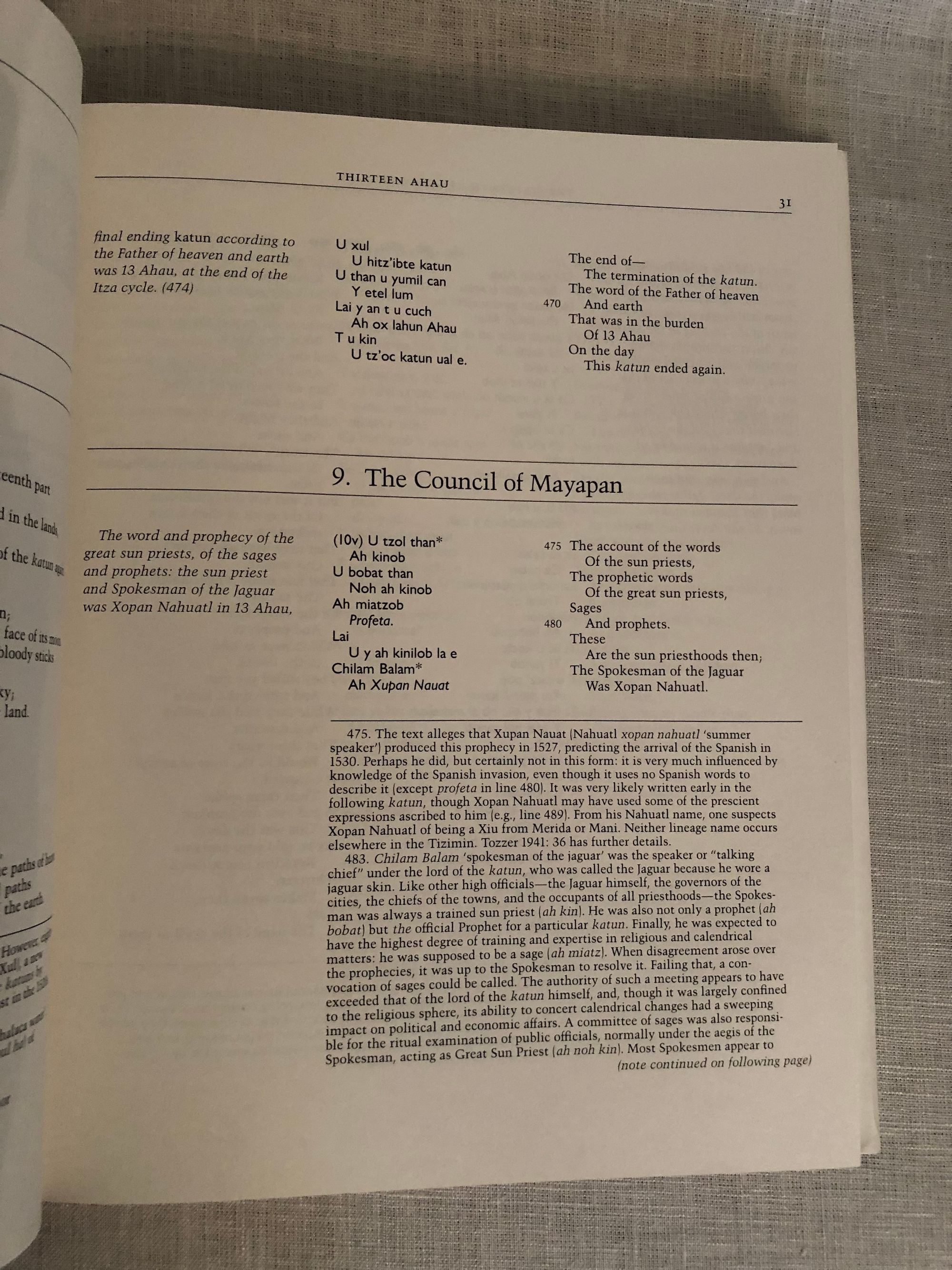 pp xx 220. Folio (11" x 8 ½"). In publisher's red cloth binding with gold lettering to spine, in dust jacket depicting a Mayan temple. Condition: Near Fine in a Near Fine dust jacket. *** The Books of Chilam Balam are nine books written in Yucatec Maya which preserve many of the customs, myths and traditions of the Mayan people. The "Chilam Balam" was a priest or prophet who lived in the last decades of the fifteenth century and foretold the arrival of "strangers from the East". Some of the Books of Chilam Balam are copies of more ancient texts originally written in hieroglyphic manuscripts.