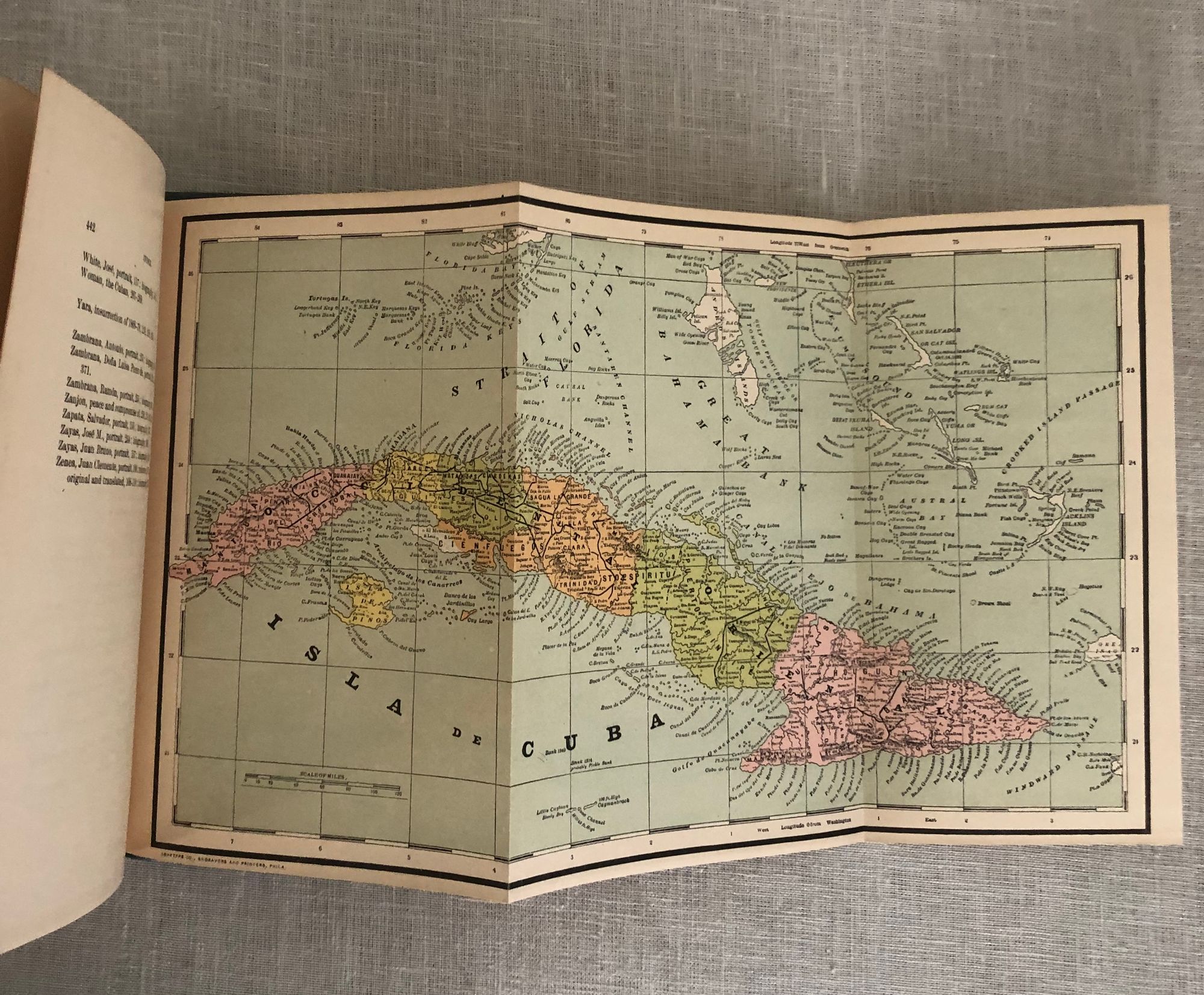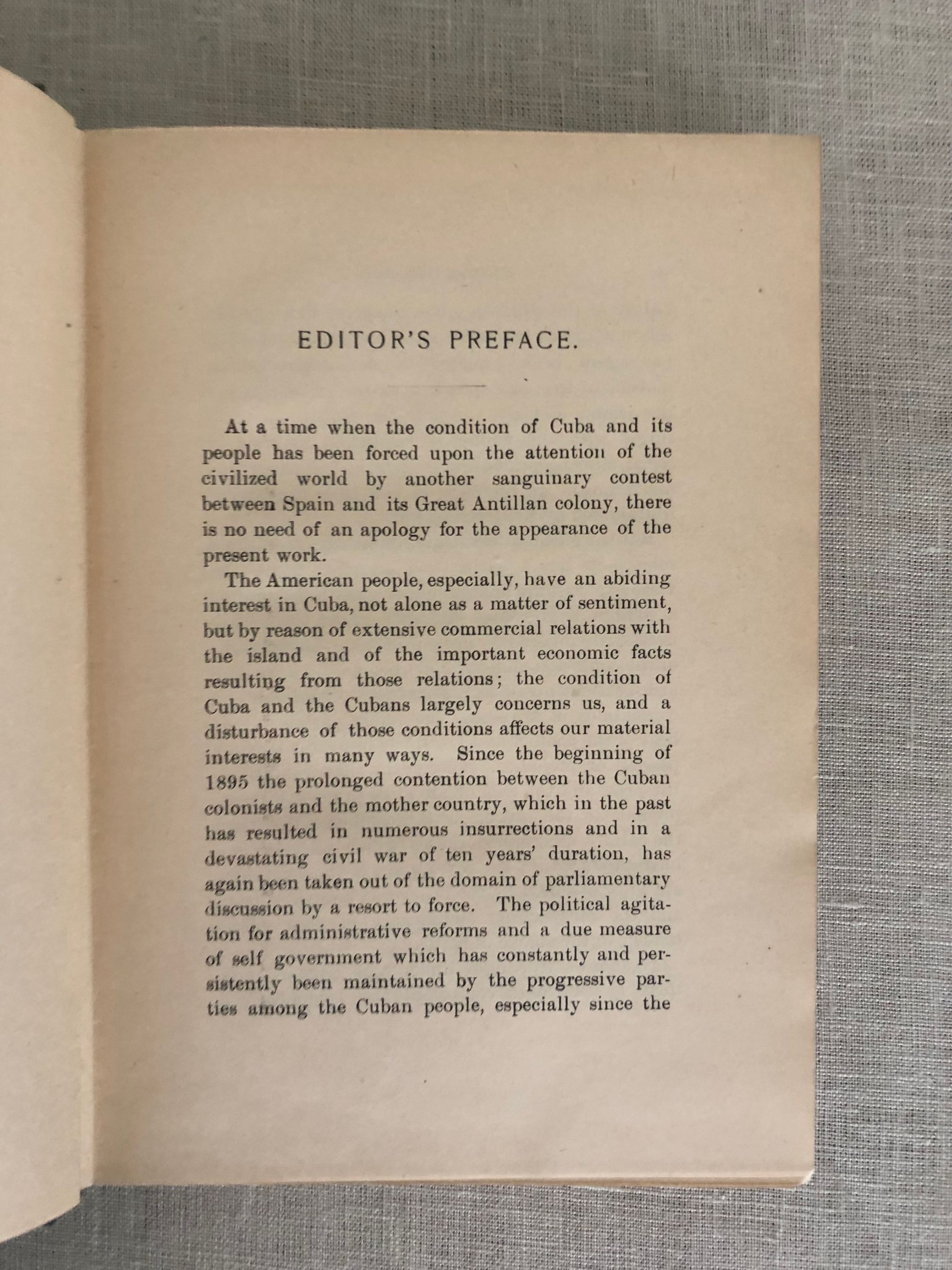 442pp + foldout map. Octavo (7 ½" x 5 ⅜"). In publisher's blue cloth binding with gold lettering. Illustrated with 124 engravings. The first edition in English, revised and edited by Louis Edward Levy. Includes a supplementary Appendix and fold-out map. The work was written on the eve of the Cuban War of Independence from Spain, soon after the Spanish cancelled a trade pact between the Cubans and the United States. Condition: About Good. Covers slightly dust soiled and showing edgewear. The binding shaken in places, and may be missing a leaf after the title page. Otherwise, the text is clean. ***Author Raimundo Cabrera Bosch (1852-1923) was a leading figure in 19th century Cuba, and its struggle to gain its freedom from Spain. At the age of 17 he was jailed on the Isle of Pines for trying to join revolutionary Cubans in the United States. He studied in Spain and became a lawyer, returning to build a successful practice in Havana. During Cuba's War of Independence (1895-98) he published an independent newspaper, "Cuba y America", from New York City. ** Translator Laura Guiteras was the niece of Eusebio Guiteras (1842-1845), a Cuban writer who wrote of his travels to the United States, Canada, Europe and the Middle East. Laura Guiteras includes a short biography of her uncle in this work. *** Scarce.