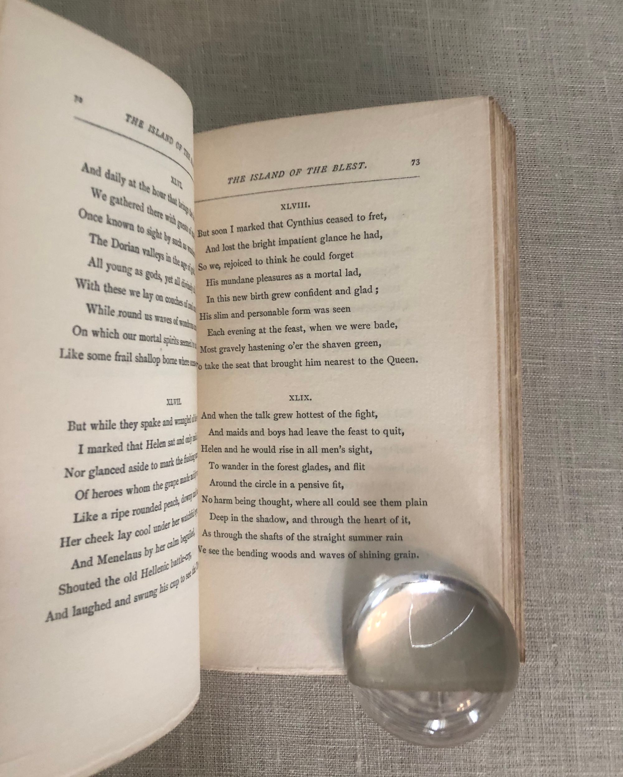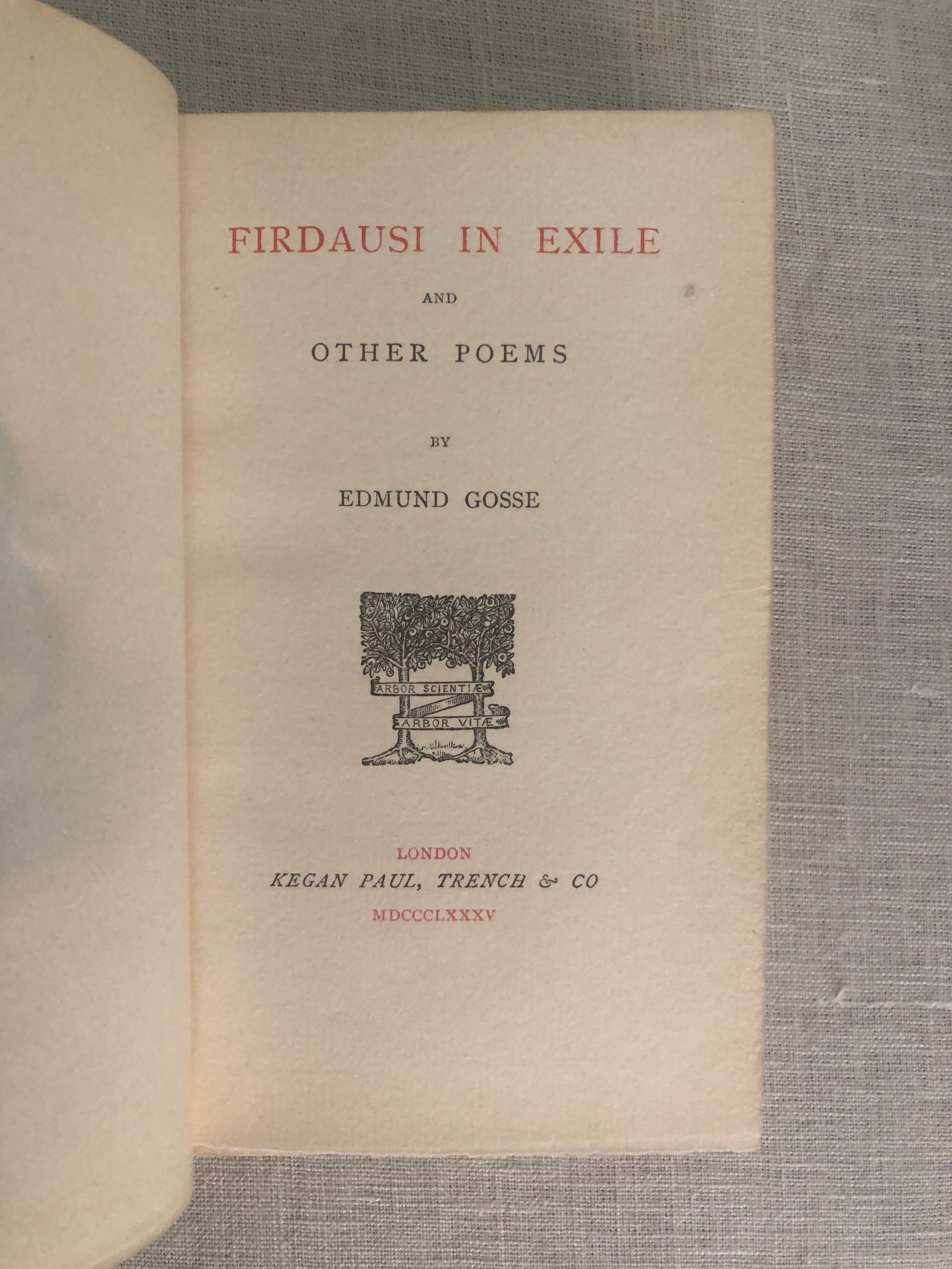 Printed at the Chiswick Press, and finely bound by R. W. Smith whose signature is pallet stamped to the ffep. Hard cover, 16 mo (measuring 3 ¾ x 6 ¼ inches) in a contemporary fine binding done in full tan morocco, ruled in gilt, with five raised bands to the spine, ruled gilt with terminal gilt dots on the bands, the title upon a red leather label, and publication date upon a black leather label at foot of spine, 224 pp. The gold, taupe and white marbled endpapers are highlighted with decorated dentelles, rolled with both an attractive tulip, and shark-tooth, pattern in gilt. The text, upon laid paper, features a title page printed in black and red. Top edge gilt, others untrimmed. CONDITION: Very Good Plus, or better. The book is clean, tight, and bright with minimal age toning to the fore and bottom edges, a touch of foxing only appearing to the tissue-guard and frontispiece engraving. Very slight darkening of spine. A couple of small nicks to edges of binding. In all, though, a lovely item with an understated detail to craftsmanship. British bookbinder, R. W. Smith, would soon thereafter be among the first to be employed at New York's Club Bindery in 1898, which was founded to serve the repair and rebinding needs of the Grolier Club. Several examples of his binding work (including this shark-tooth roll) can be seen online at the Folger library. English Poet Edmund Gosse ( 1849-1928). Watson 1432.