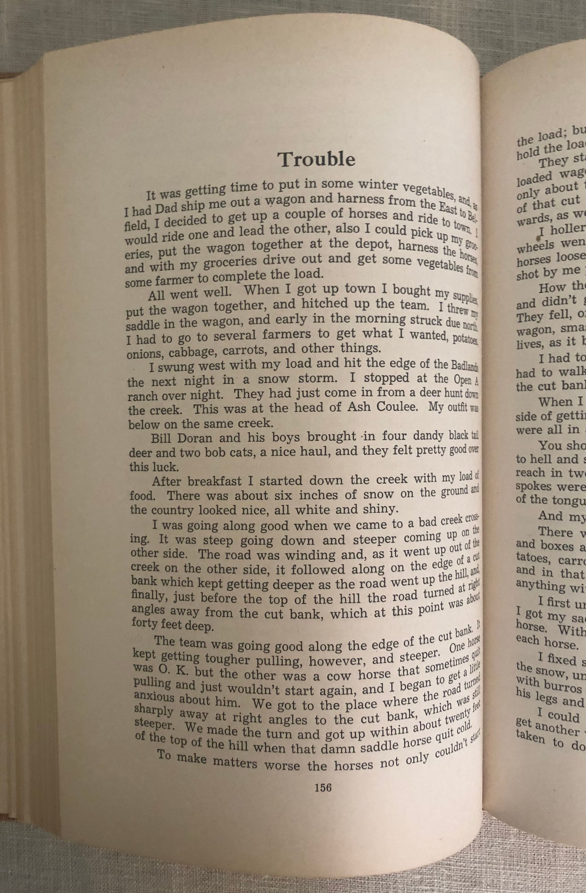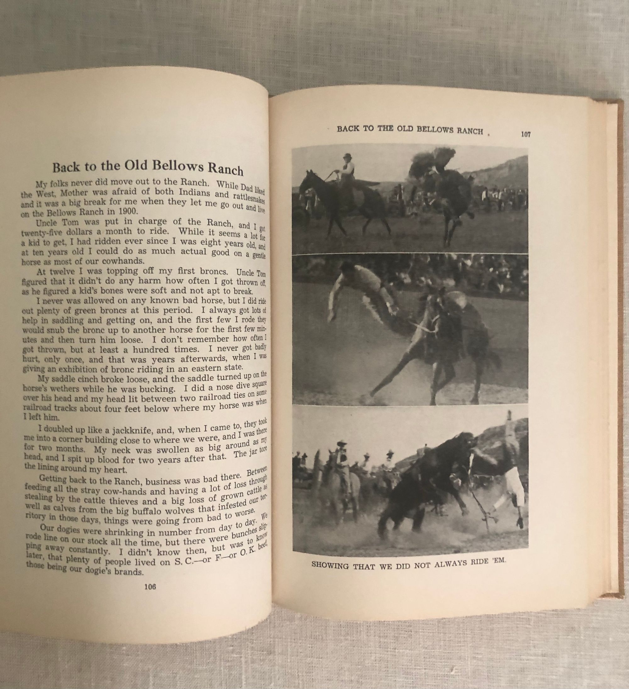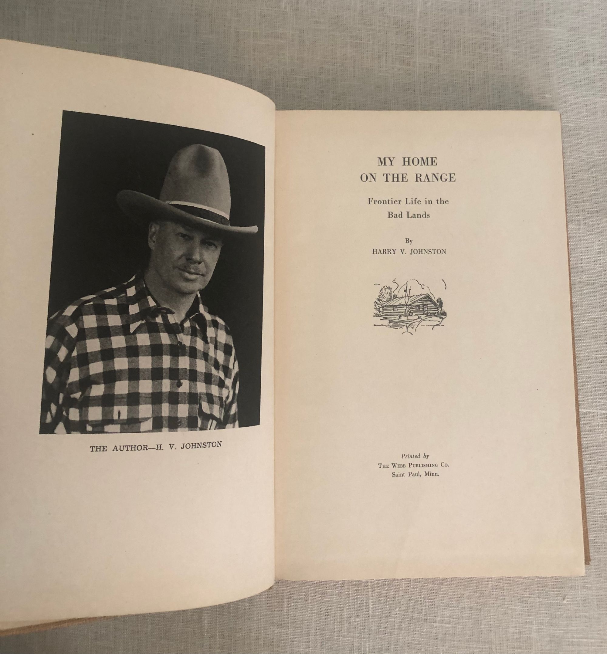 313pp. Octavo (6" x 9"). In publisher's tan cloth board with bison decoration to front. Condition: Near Fine, one corner very lightly bumped. Inscribed by author to front free endpaper: "With the author's very best wishes. Sincerely, H.V. Johnston". *** Illustrated memoir of the life of cowboy and entrepreneur, Harrison "Harry" Victor Johnston (1890-1973), who inherited property adjacent to Teddy Roosevelt's Elk Horn Ranch. As well as ranch work, he went deep sea fishing with Zane Grey, and established the Harry V. Johnston Foundation to promote and preserve Indian culture. *** With many photos, including depictions of: Sioux Indians, "The Nighthawk Driving the Bedwagon", Theodore Roosevelt, etc.