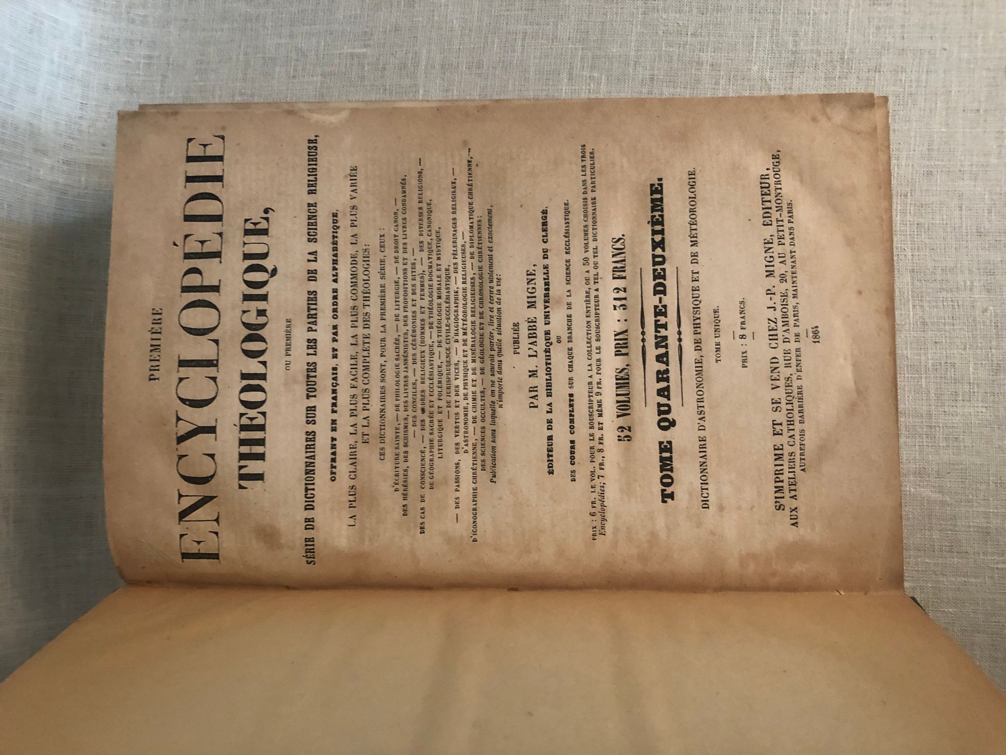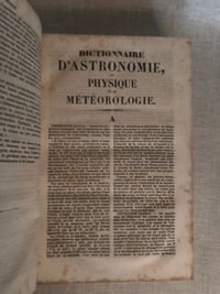 Hard cover, large 8vo., 780pp, numbered 1-1560 with each page having two numbers. Quarto (7" x 10 ⅝"). In green boards with paper label to spine. Condition: Very Good Minus, with some wear to the edges of the covers. *** Louis-François Jéhan (1803-1871) was a French writer of popular science books. This work includes a dictionary of terms used in astronomy, physics and meteorology, as well as some additional notes and observations by the author. The text goes into some detail on the subject matter, including contemporary discoveries. e.g. there are copious notes on electricity and its properties. In French.