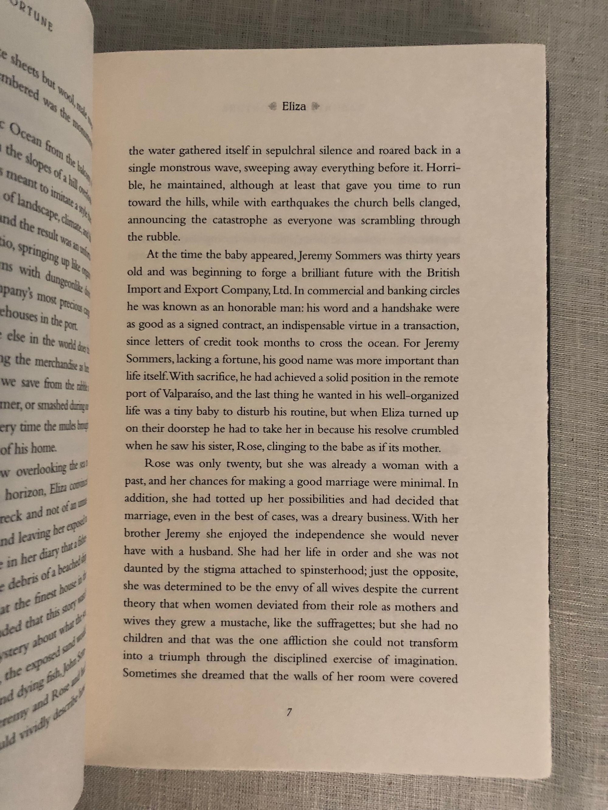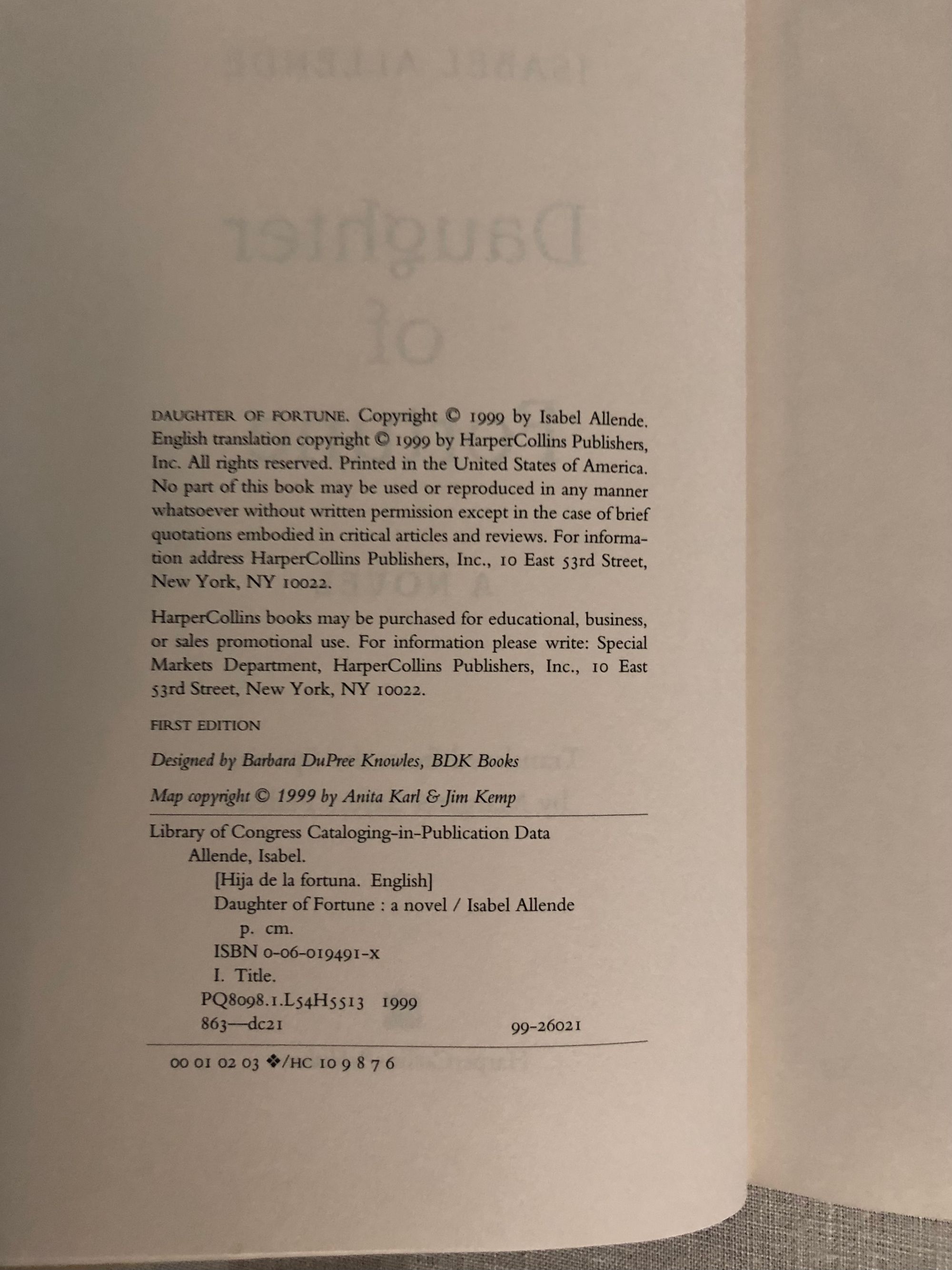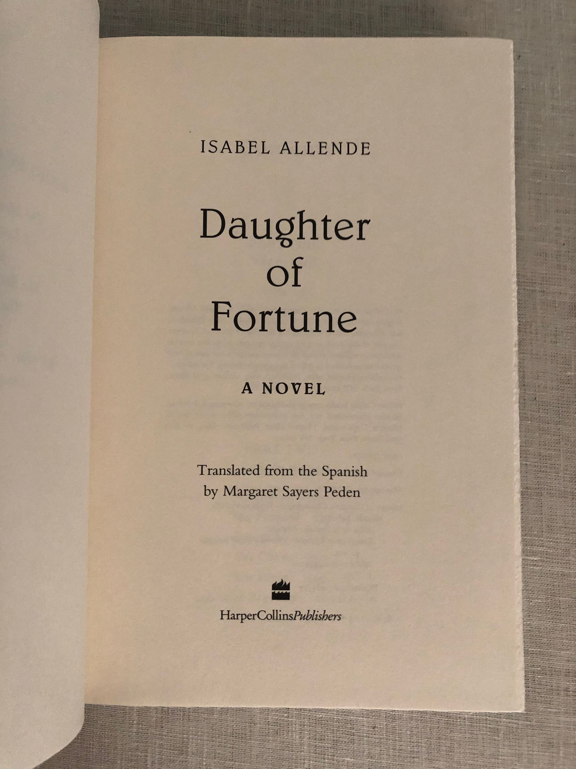 First U.S.Edition, 1999 (later printing). Hardcover, black cloth with gold title to spine, 399 pp. Oprah Bookclub edition d/j. Condition Fine, with Near Fine unclipped d/j, in mylar. Young Eliza Sommers, raised among conservative English relatives in Valparaiso, Chile, sets sail in search of her departed lover, gone to seek his fortune in the California gold rush of the 1840's. From the blurb: the " on a perilous journey north in the hold of a ship to the rough and tumble world of SanFrancisco and northern California, we enter a world who's newly arrived inhabitants are driven mad by gold fever…Her search for the elusive Joaquin gradually turns into another kind of journey that transforms over time, and what begins as a search for love ends up as the conquest of personal freedom."
