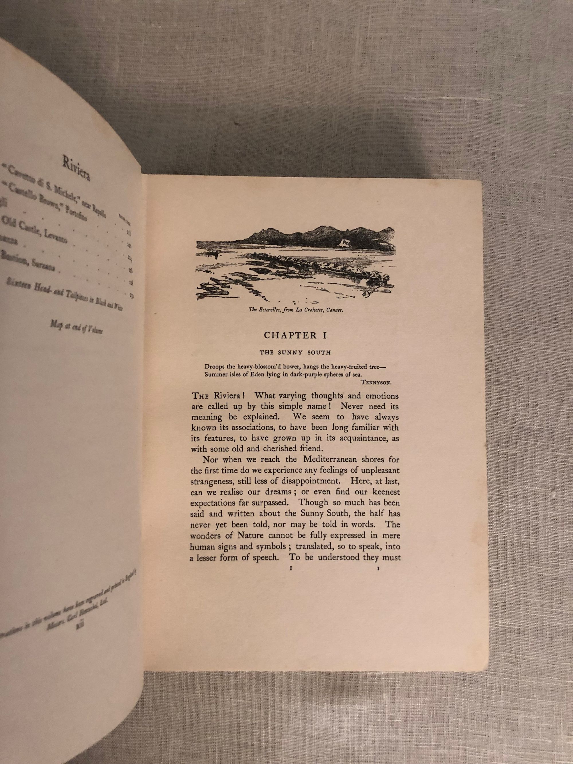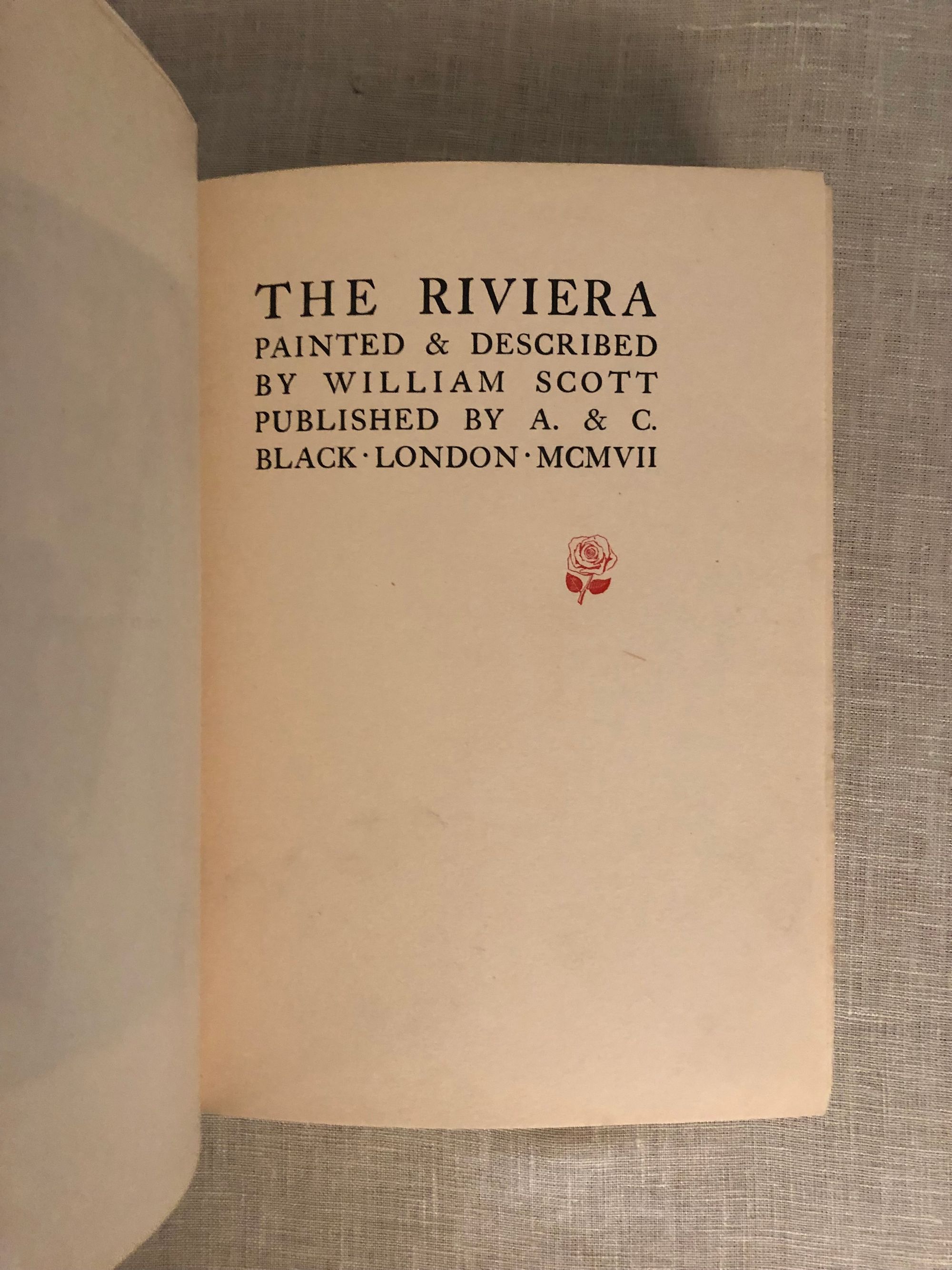First Edition. xii, 236pp, including foldout map and 4pp. publisher's adverts. One of the 20 Shilling Series. 3000 copies. With 75 full page color illustrations printed by Messrs. Carl Hentschel, Ltd., with captioned tissue guards, top edge gilt and still bright. In the publisher's original blue cloth binding, with design of roses in tan, red and green. Titles, fleur-de-lis, shield and top edge in gilt. Gift inscription in old ink on front fly. A particularly nice publishers colophon dated 1907 at rear. Condition: Very Good Plus or even better, with some spotting to fore- and bottom-edge of text block. Boards are otherwise very nice without soiling or marks. Two lightly bumped corners. Interior is very clean with minimal age toning, aside from front and rear fly. **Author William Scott, RIBA (1848-1914) was a London trained architect who changed career to pursue etching and engraving. He spent much of his time living in Italy. The volume is very attractively presented, containing 75 full- page color illustrations , each with a labelled tissue guard, as well as 16 engraved head-and tail-pieces. Inman #67.