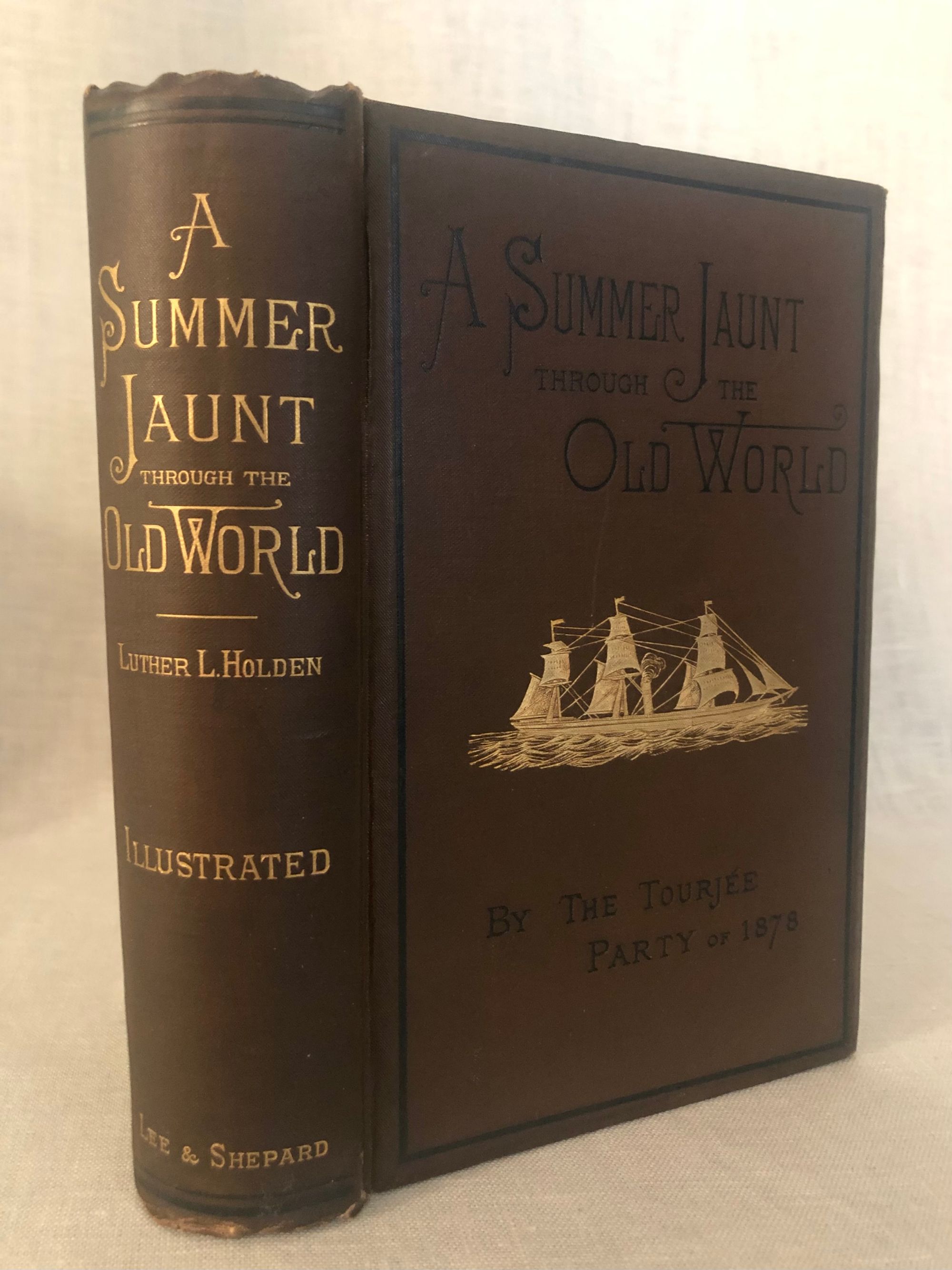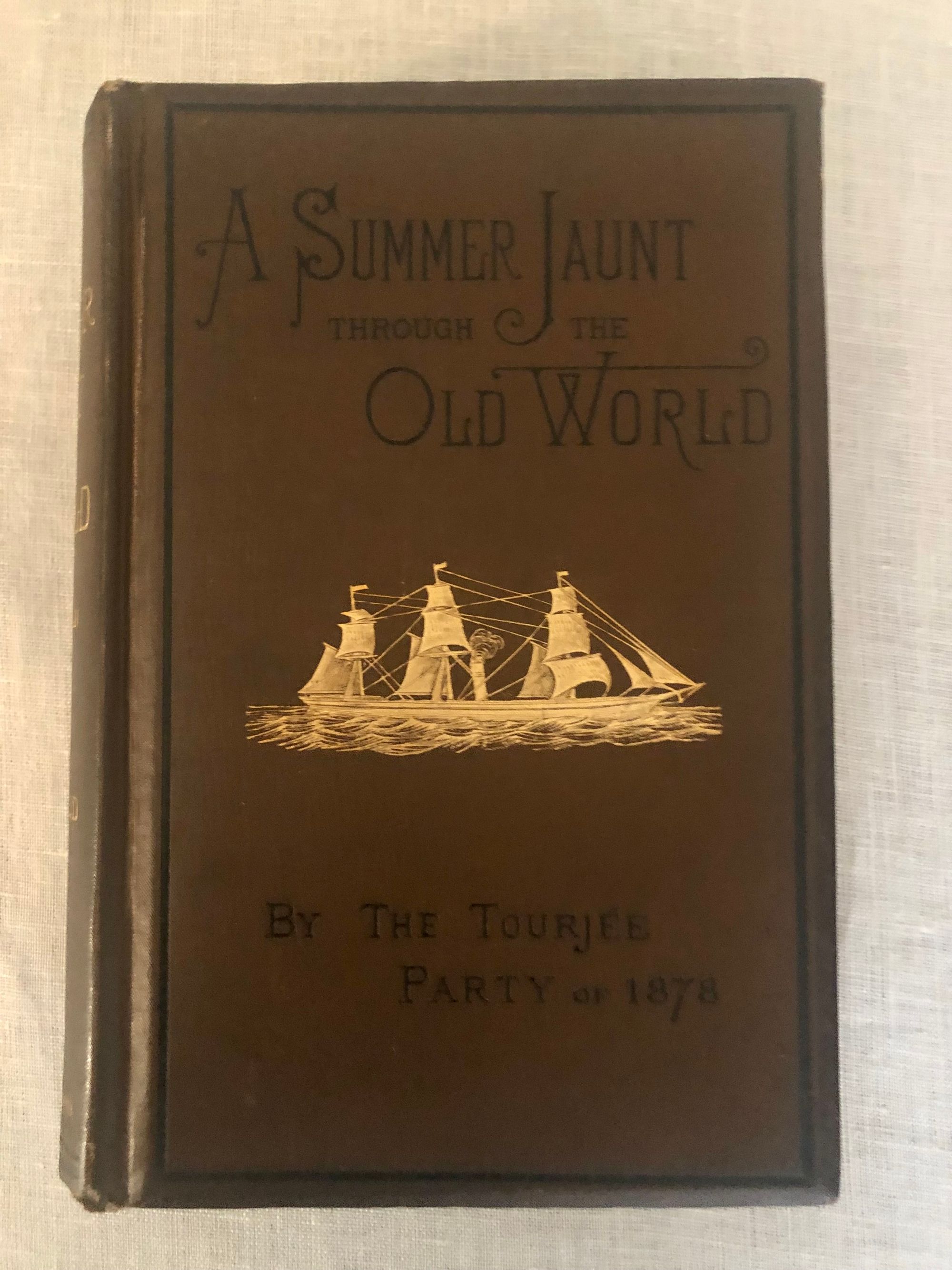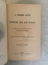 Hard cover, 8vo., 646pp. In publisher's brown cloth binding, board edges beveled, with gold decoration of a sailing ship to front cover, and gold lettering to spine. Illustrated with frontispiece and other 32 full-page engravings. Condition: Very Good, with only minor rubbing to corners, and crimping at head and tail of spine. Front board is clean and bright. Front hinge cracked, but holding firm; pages are mildly age toned. The frontispiece portrait of Eben Tourjée is clean and bright, and although it has a tissue guard, and there is some offset to the title page as can be seen in the photo. ** The engraved illustrations are wonderful: Edinburgh Castle, Joan of Arc's Tower in Rouen, Sainte Chapelle Paris, Lucerne and Mont Pilatus, The Arena of the Colosseum, Heidelberg and the Old Castle, Grindelwald, and Ehrenbreitstein etc.. ** This Musical and Cultural Tour of Europe was led by Dr Eben Tourjée (1834-1891), co-founder of the New England Conservatory of Music in Boston. The group departed from New York aboard the Steamship Devonia. This vessel was, unusually, outfitted with a music room, containing "growing plants and singing birds," in addition to a piano-forte, organ, and "a well-filled library." (p. 5) Contains a mix of local histories, and anecdotes. An Appendix lists the names and hometowns of the travelers: a group of teachers, ministers, and other "brain-workers," recruited by Mr. Tourjée. "The volume is intended as a pleasant souvenir of a delightful round of European travel, in which nearly three hundred Americans -- a larger excursion party than ever before went from our shores--had, at least in part, a common experience." (p. vi) OCLC 3838274.